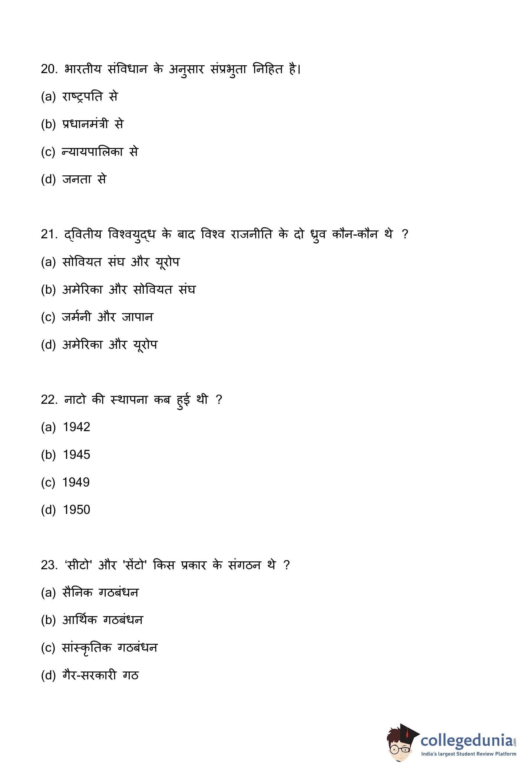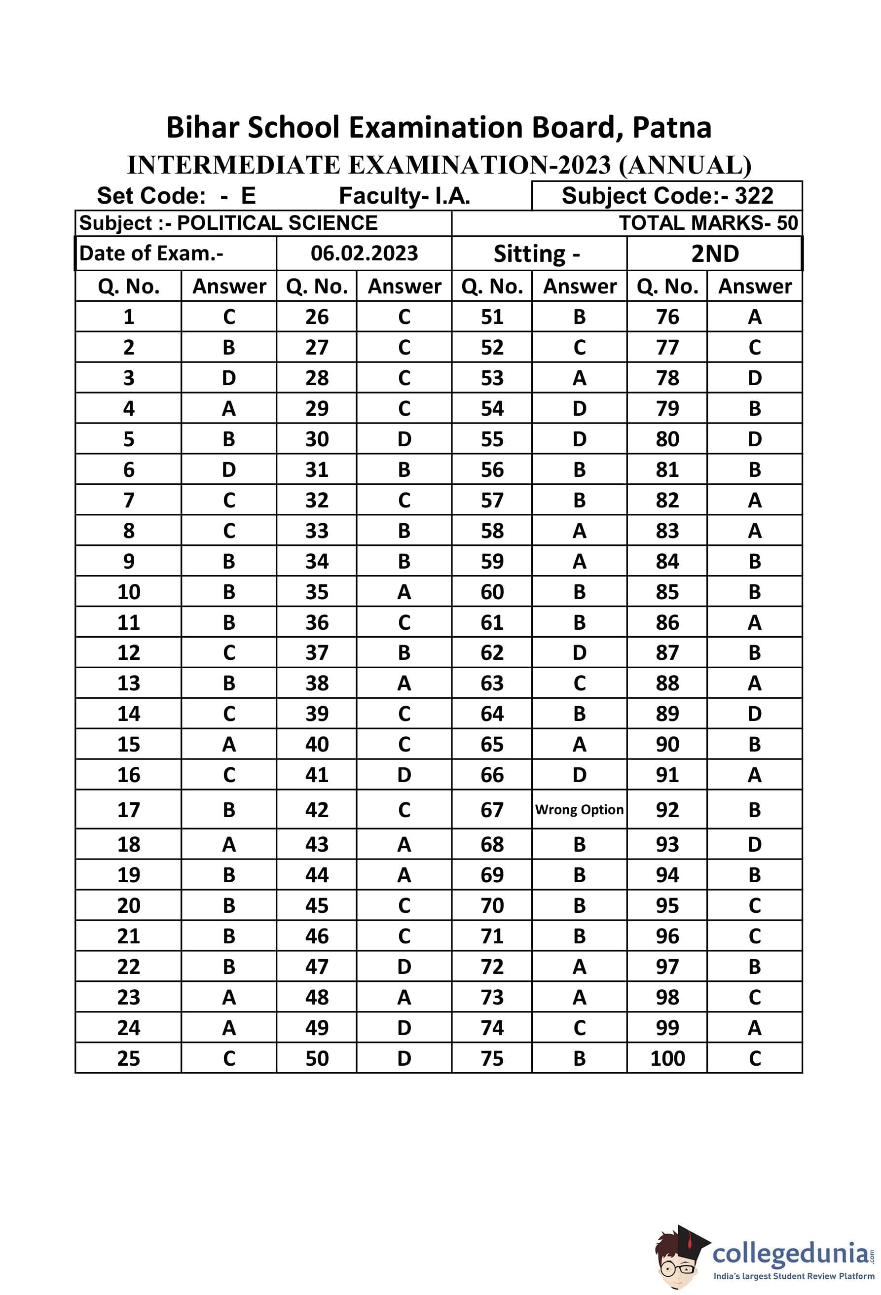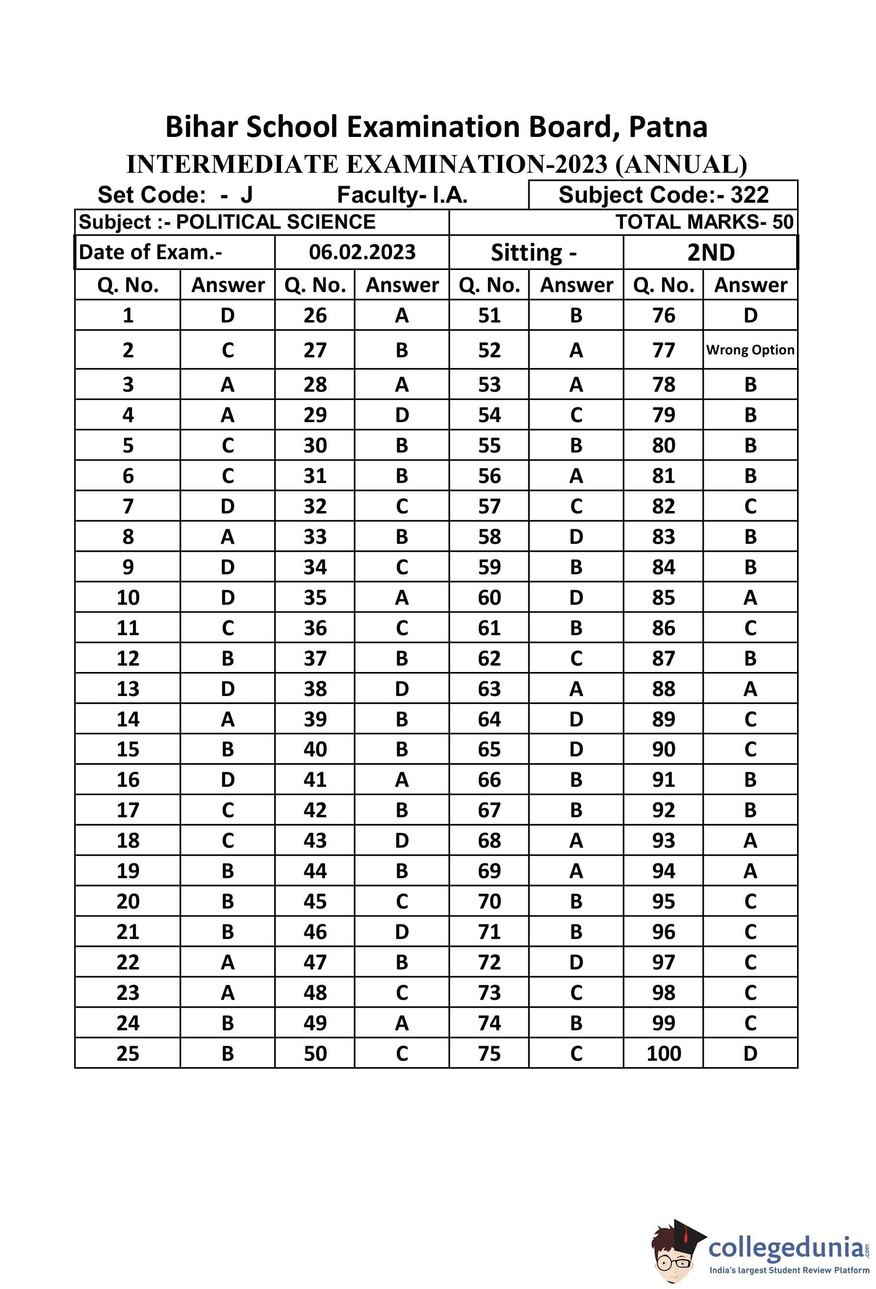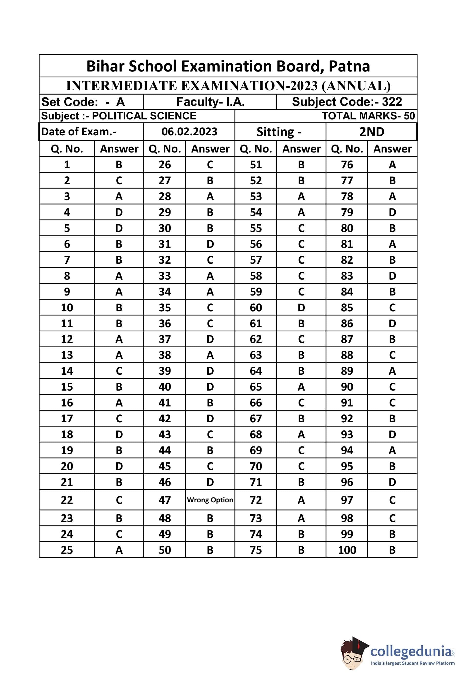 | Bihar Board Class 12 Political Science Question Paper with Answer Key | Check Solutions |
