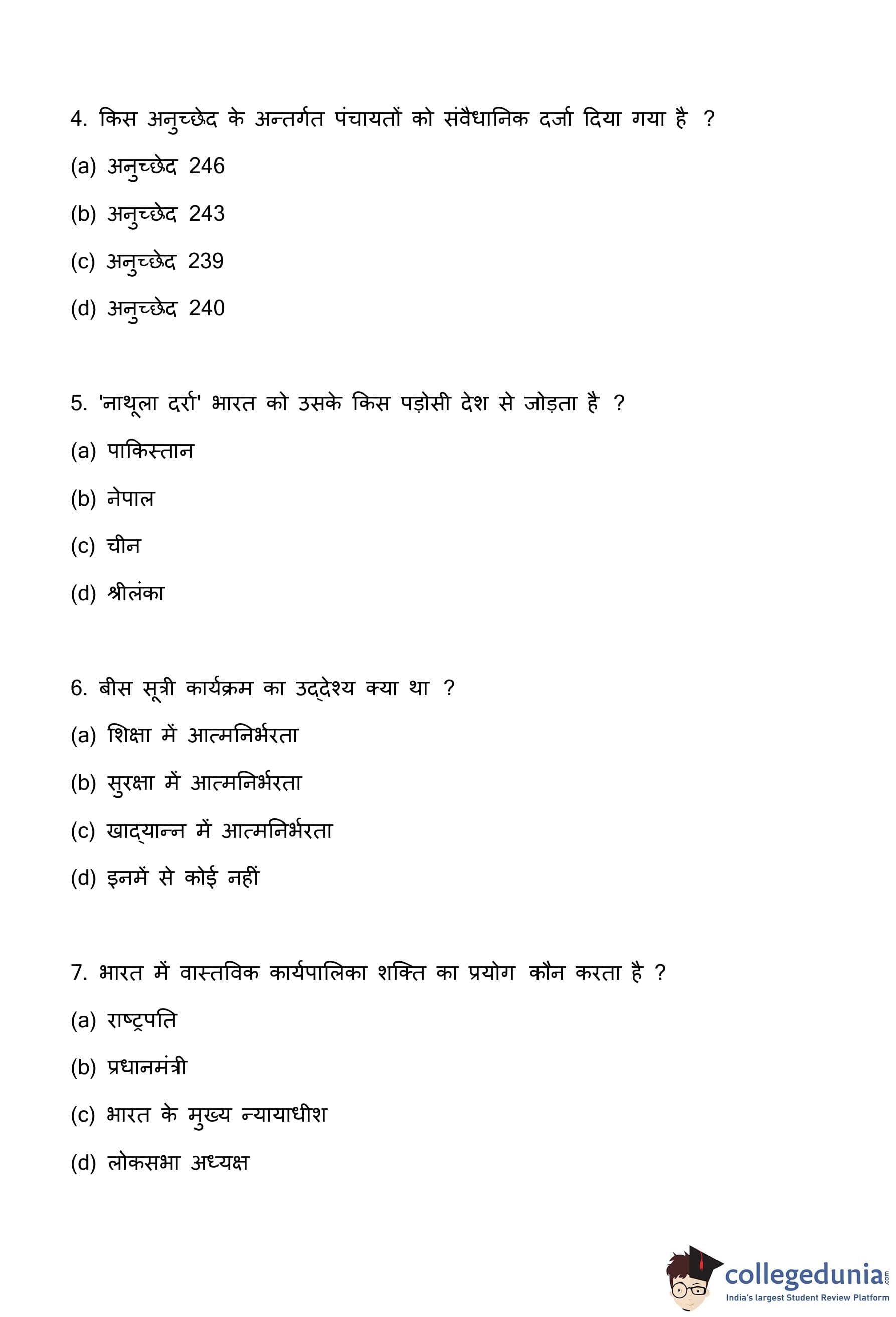 यह प्रश्न भारतीय संविधान में पंचायती राज संस्थाओं को दिए गए संवैधानिक दर्जे से संबंधित अनुच्छेद के बारे में है। पंचायती राज प्रणाली स्थानीय स्वशासन की एक महत्वपूर्ण प्रणाली है।