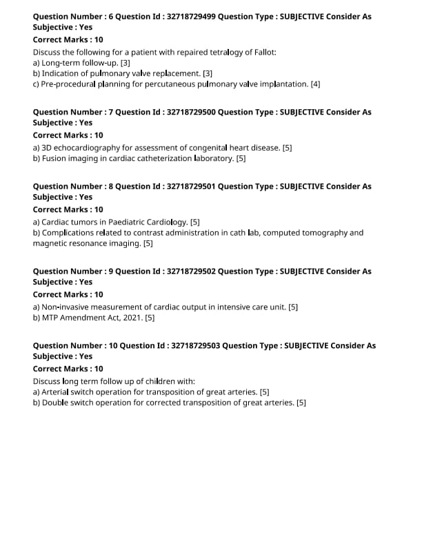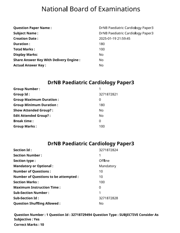 | NEET SS 2024 DrNB Paediatric Cardiology Paper 3 Question Paper | Check Solutions |