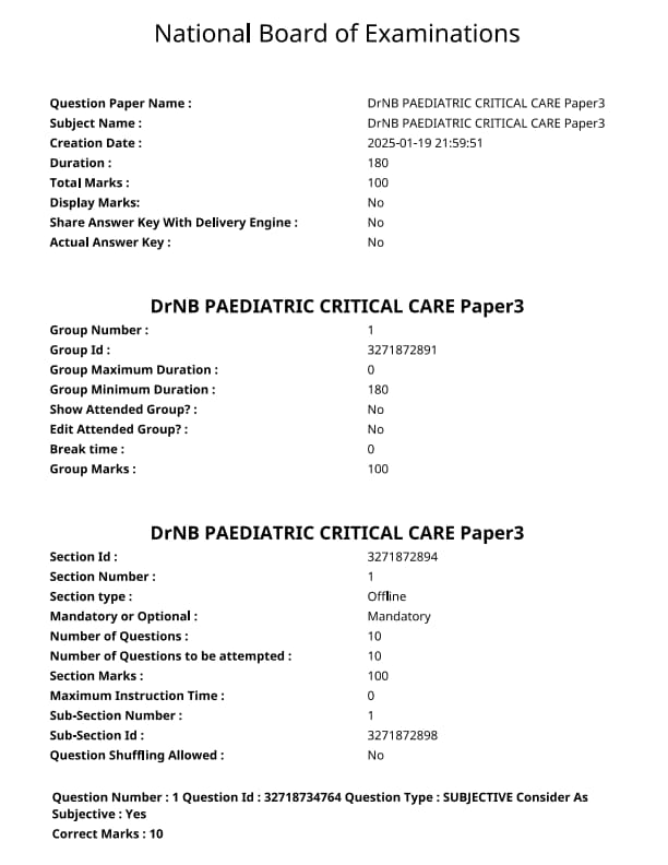 NEET SS 2024 DrNB Paediatric Critical Care Paper 3 Question Paper with Solutions