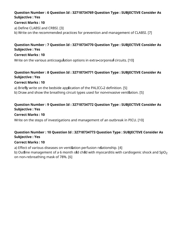 | NEET SS 2024 DrNB Paediatric Critical Care Paper 3 Question Paper | Check Solutions |
