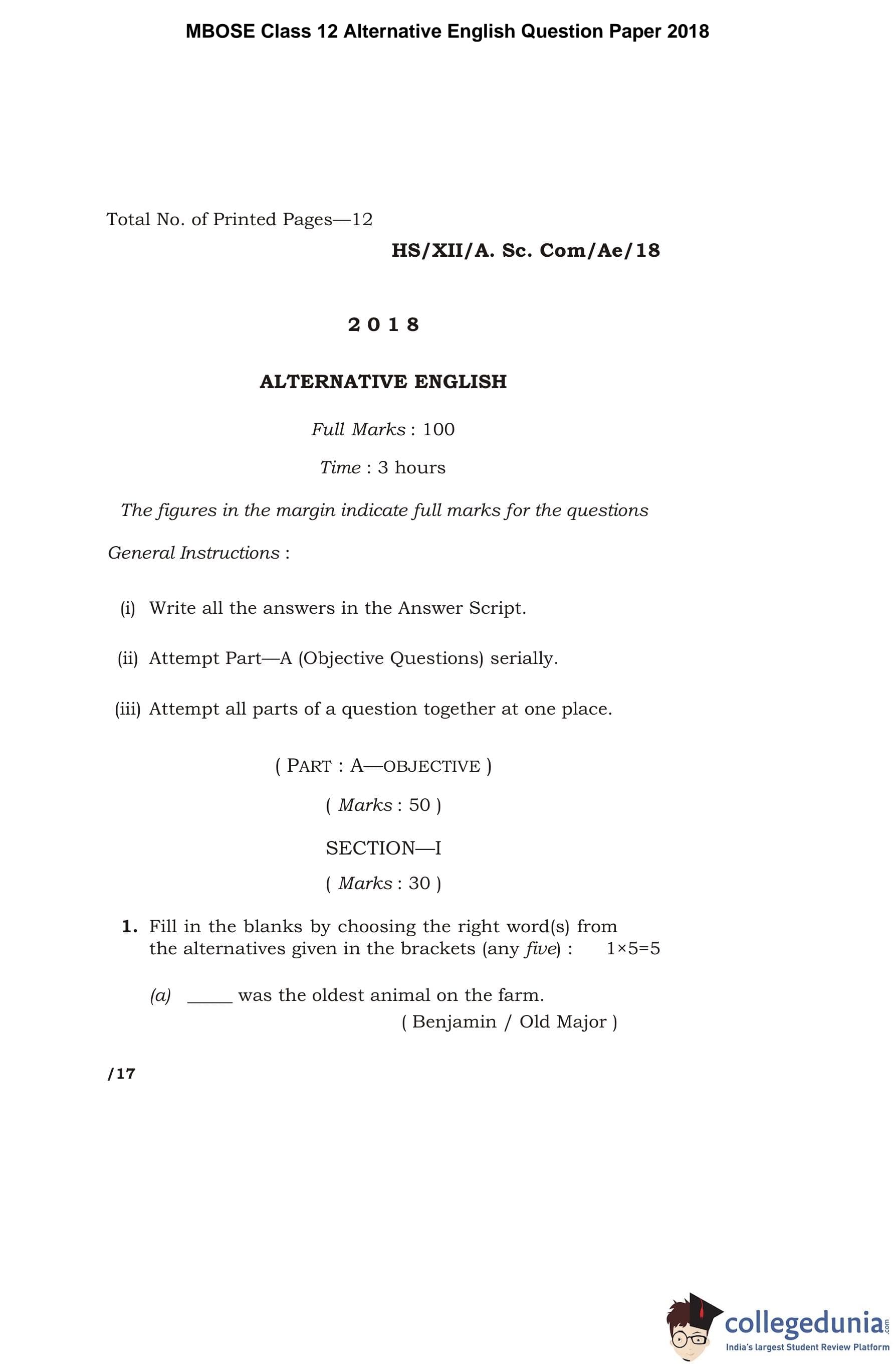 | MBOSE Class 12 Alternative English Question Paper 2018 PDF | MBOSE Class 12 Alternative English Answer Key 2018 PDF |
