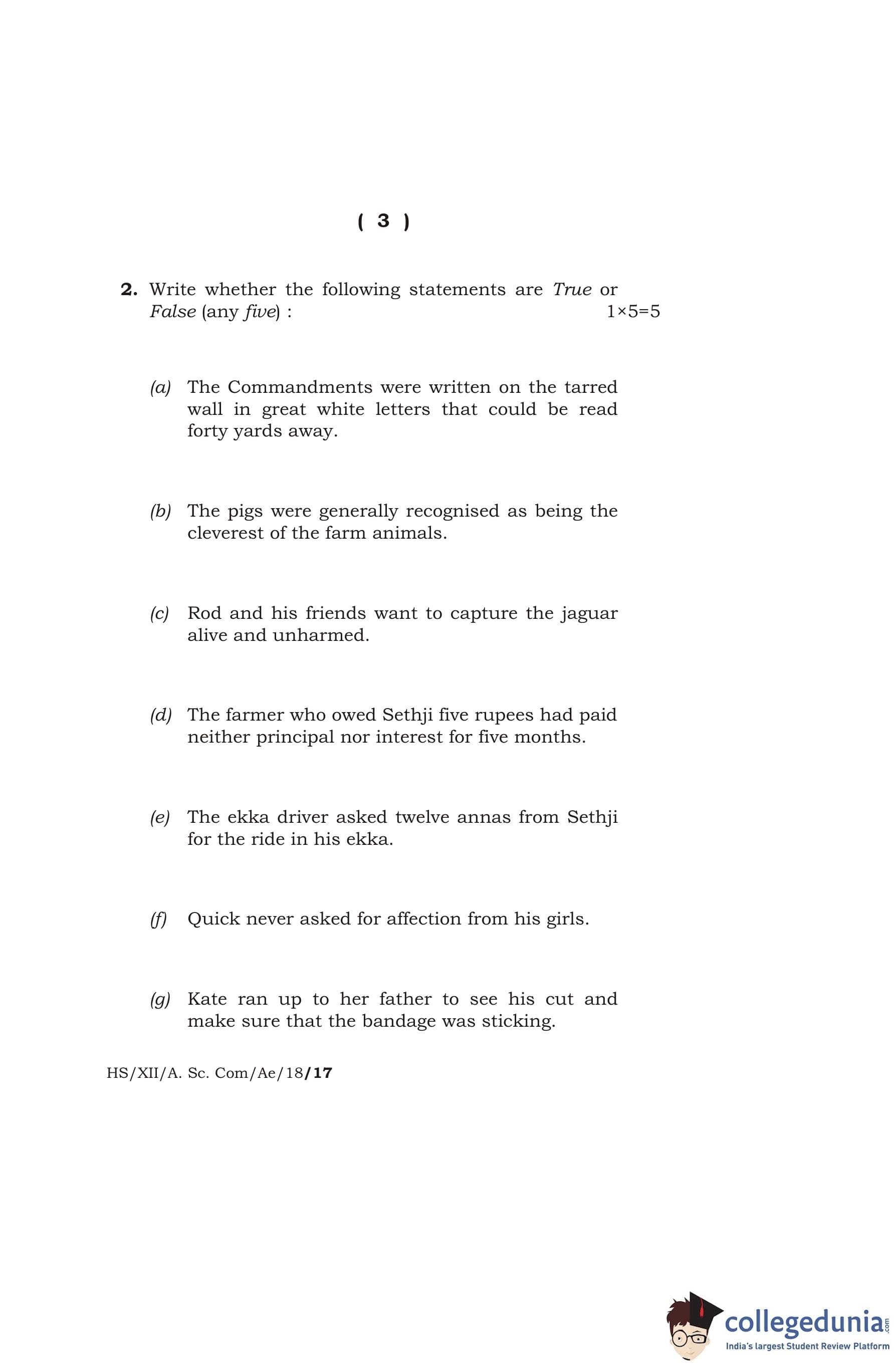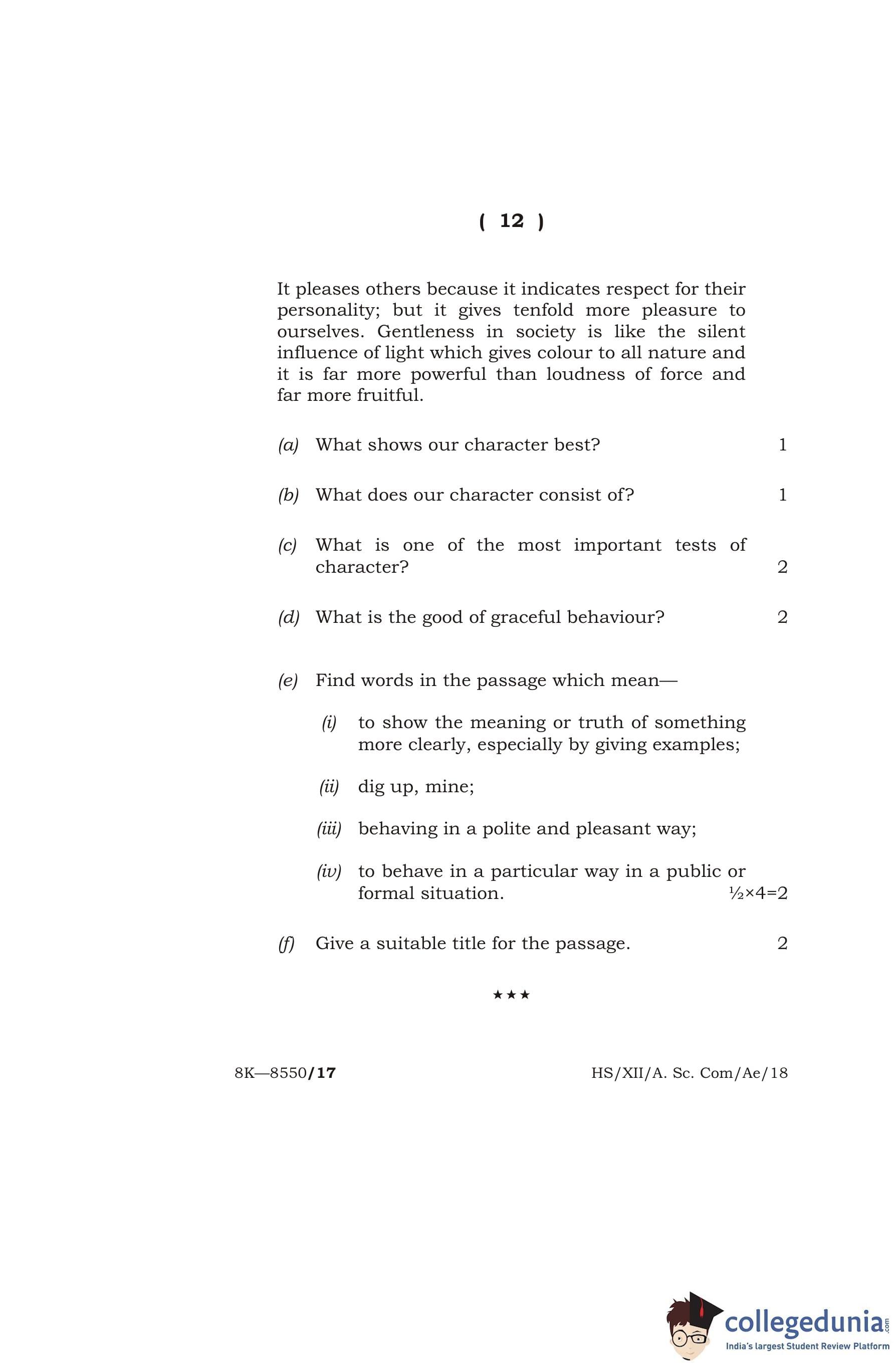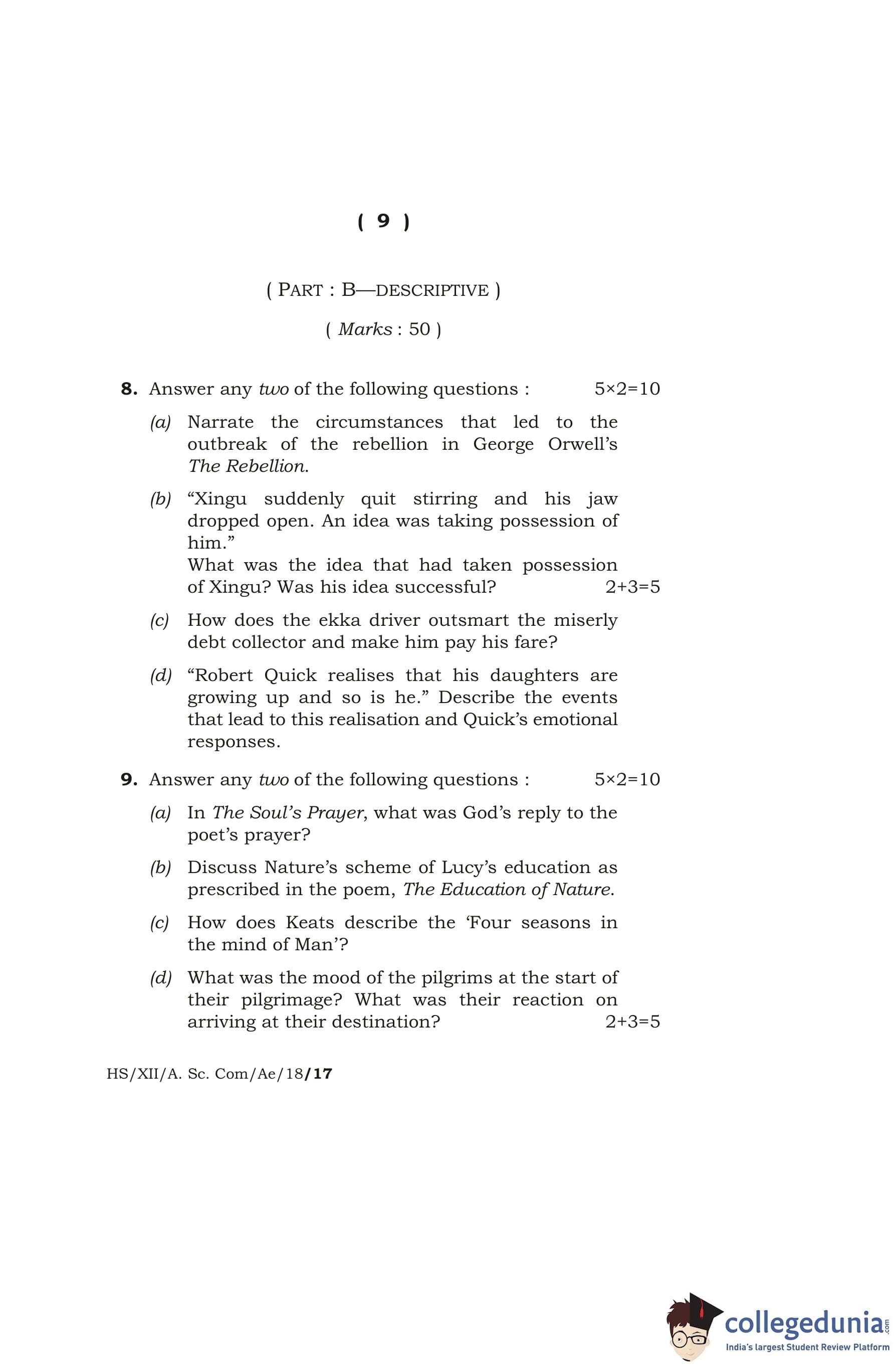 MBOSE Class 12 Alternative English Question Paper 2018 with Answer Key pdf is available for download here. The exam was conducted by Meghalaya Board of School Education on March 8, 2018 in the Morning Session 10 AM to 1 PM. The question paper comprised a total of 12 questions divided among 2 sections.