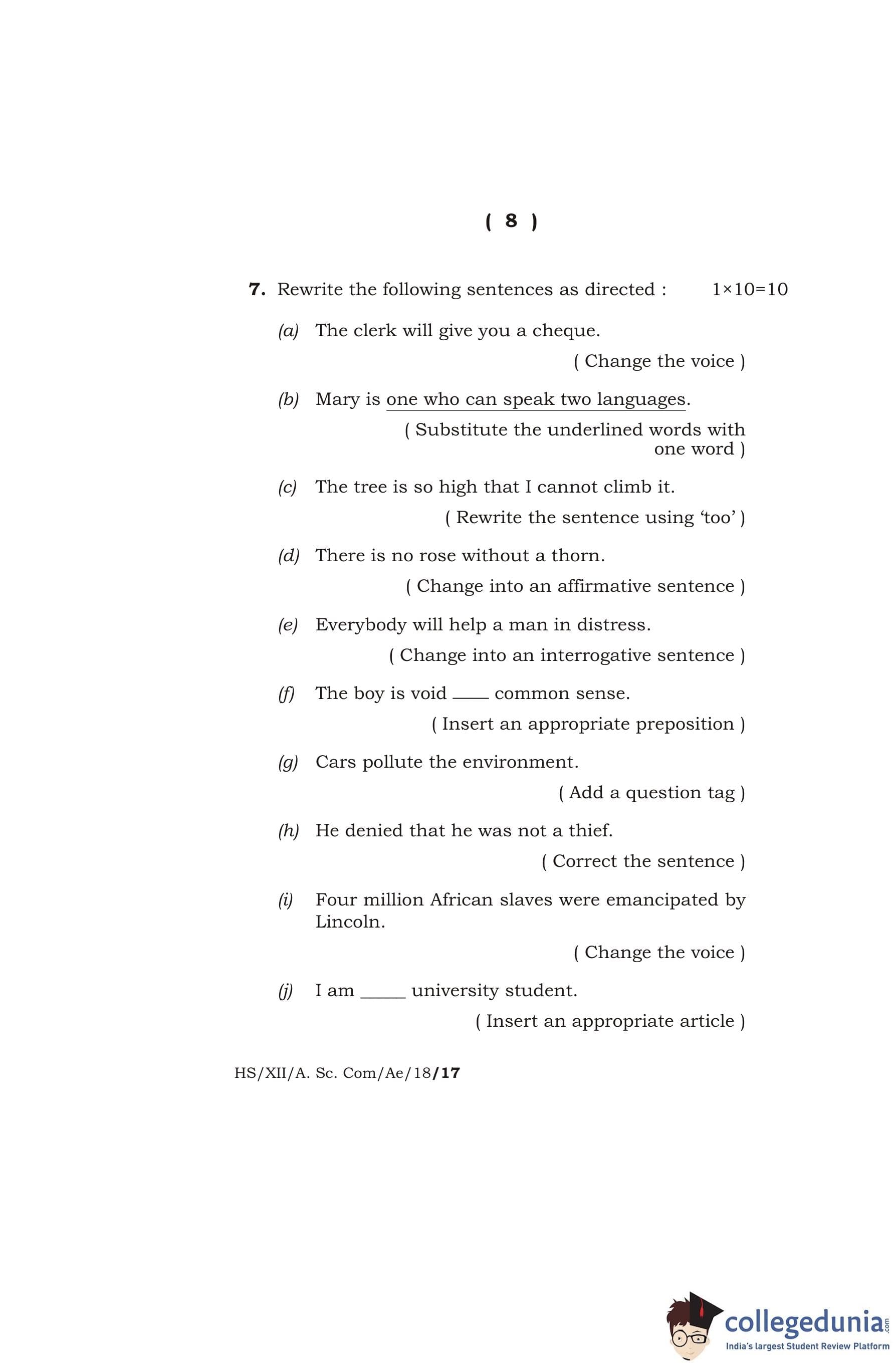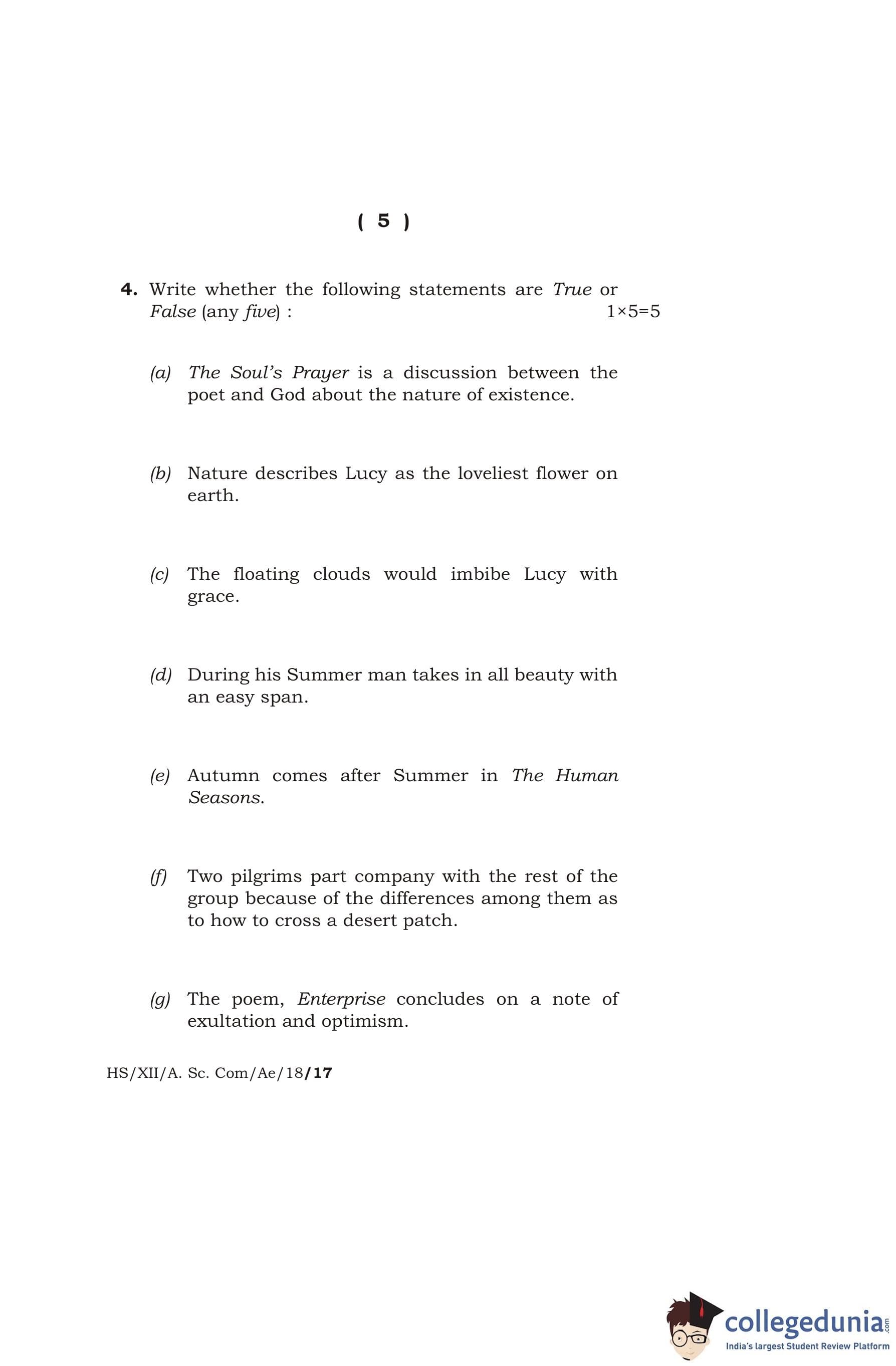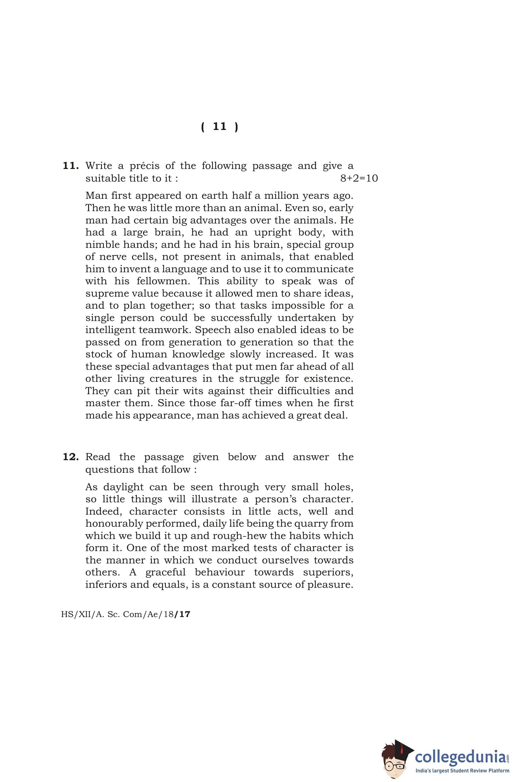 MBOSE Class 12 Alternative English Question Paper 2018 with Answer Key pdf is available for download here. The exam was conducted by Meghalaya Board of School Education on March 8, 2018 in the Morning Session 10 AM to 1 PM. The question paper comprised a total of 12 questions divided among 2 sections.