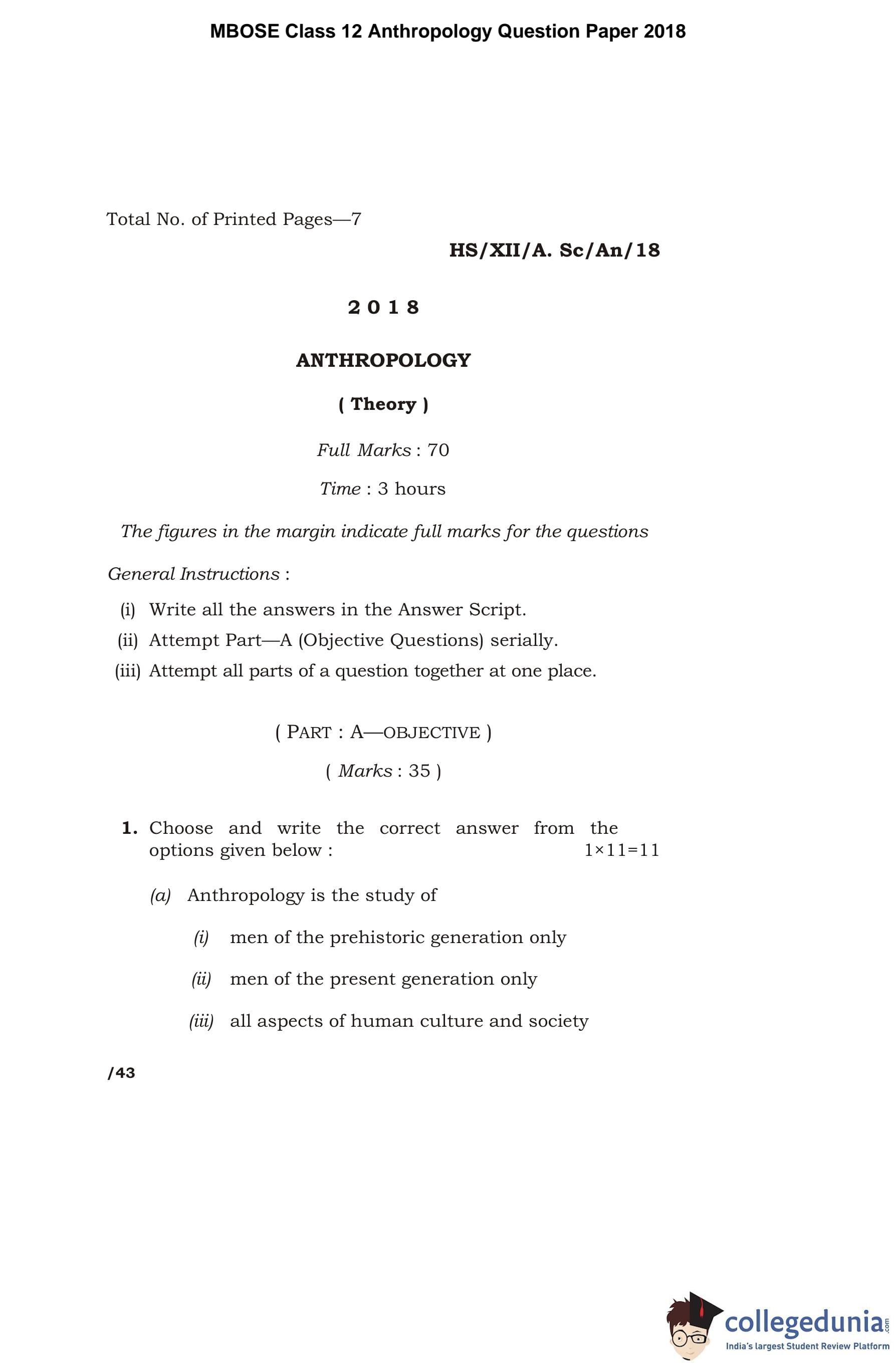 | MBOSE Class 12 Anthropology Question Paper 2018 PDF | MBOSE Class 12 Anthropology Answer Key 2018 PDF |