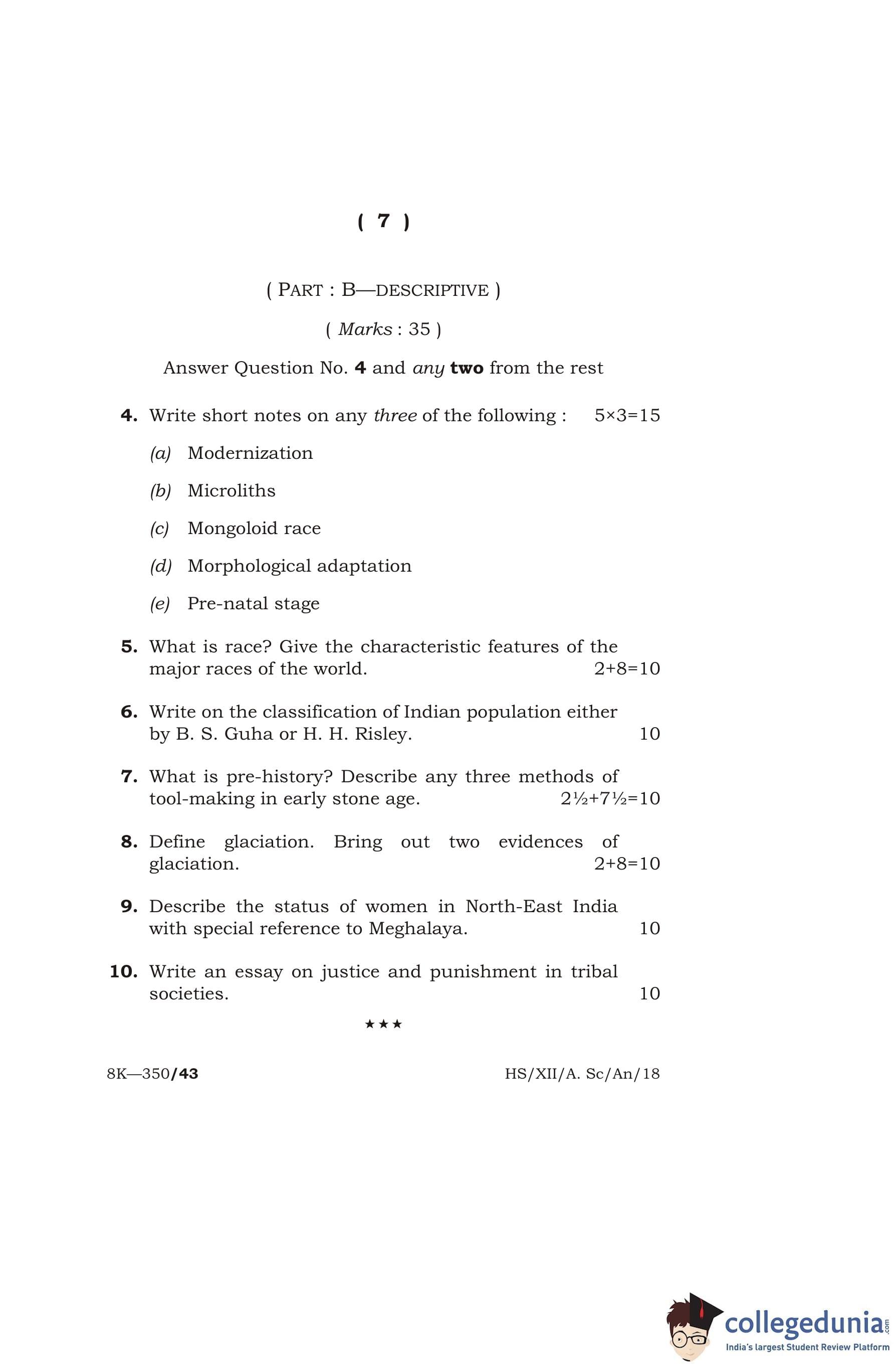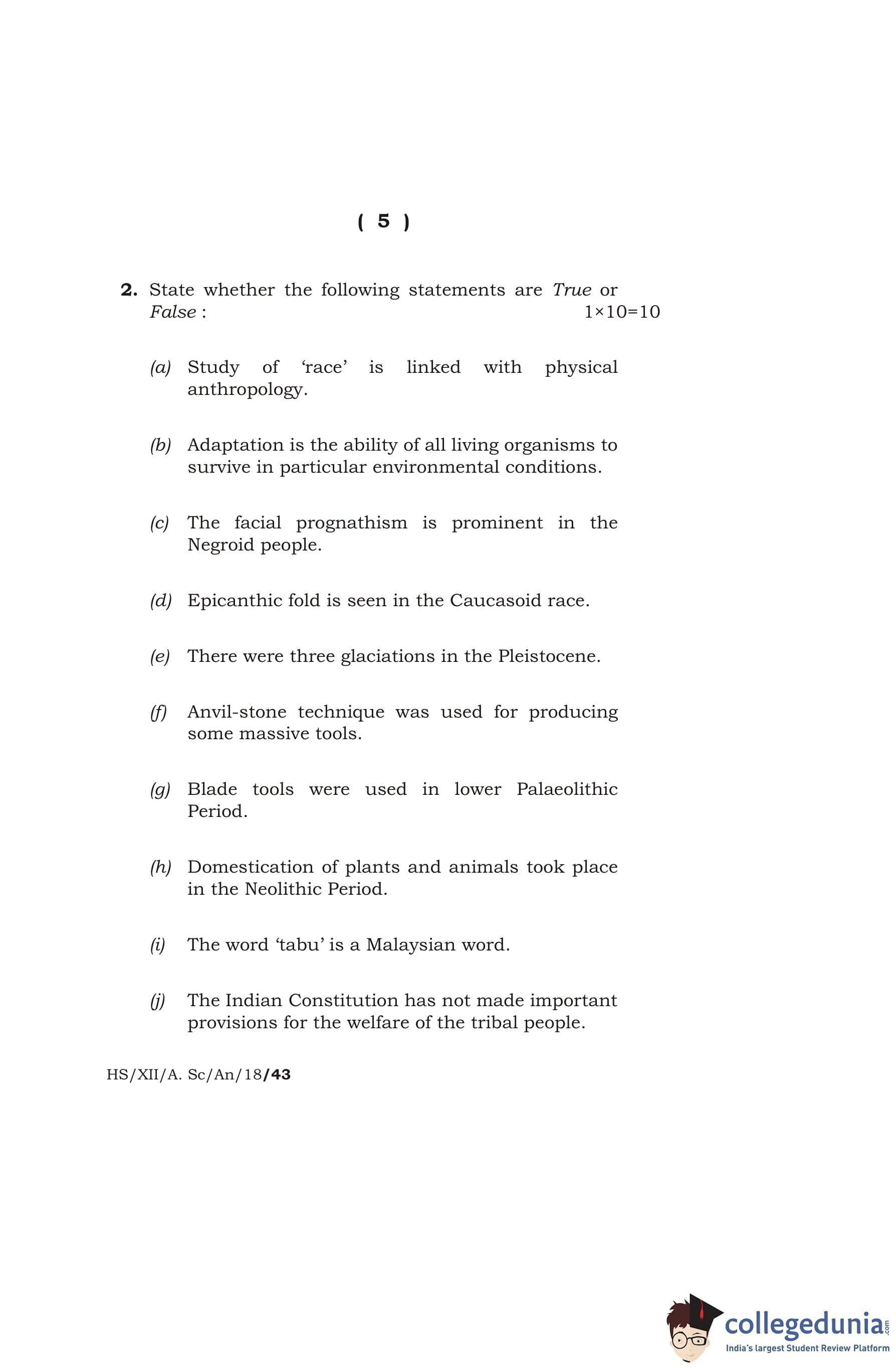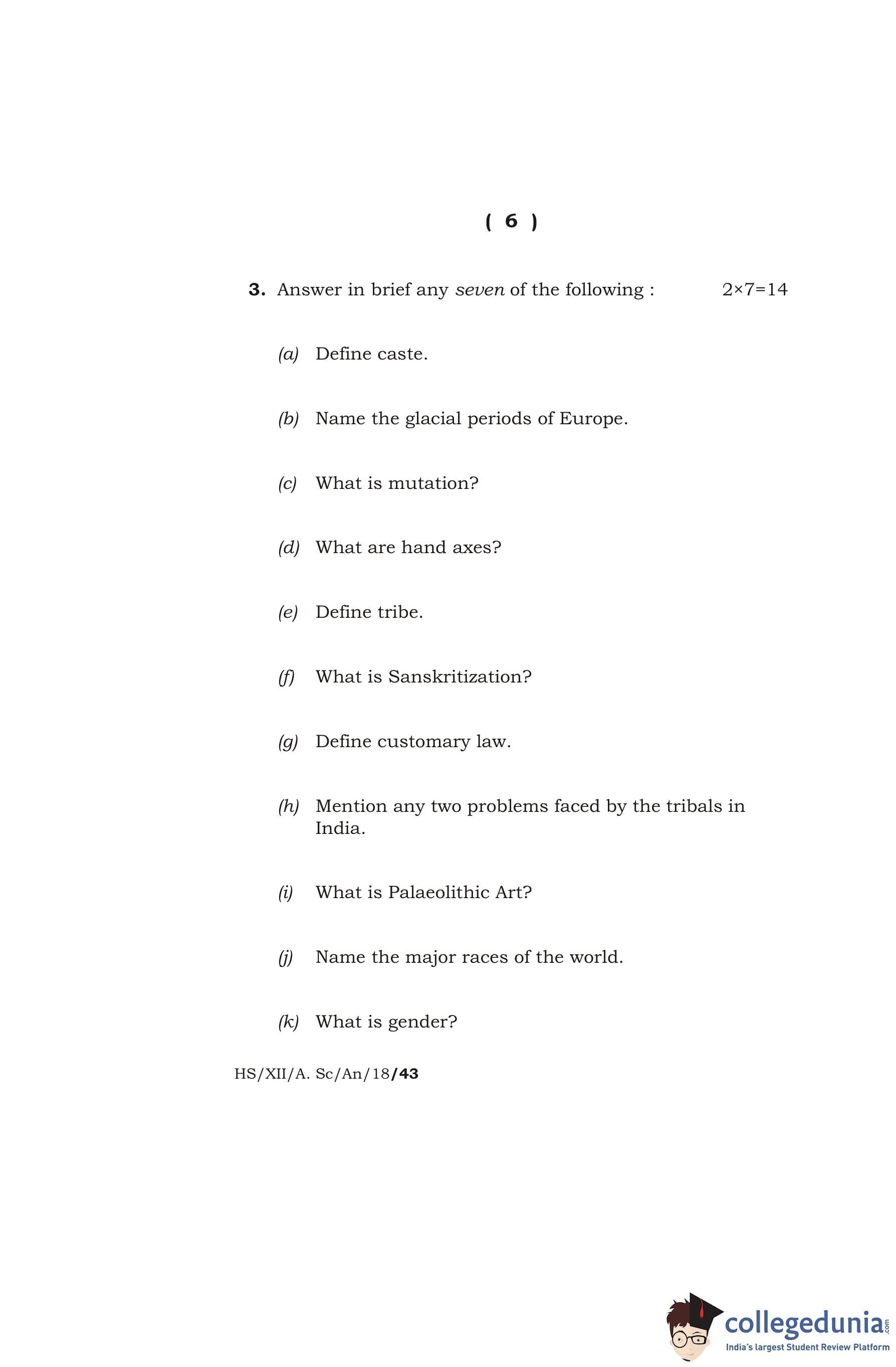 MBOSE Class 12 Anthropology Question Paper 2018 with Answer Key pdf is available for download here. The exam was conducted by Meghalaya Board of School Education on March 23, 2018 in the Morning Session 10 AM to 1 PM. The question paper comprised a total of 10 questions divided among 2 sections.