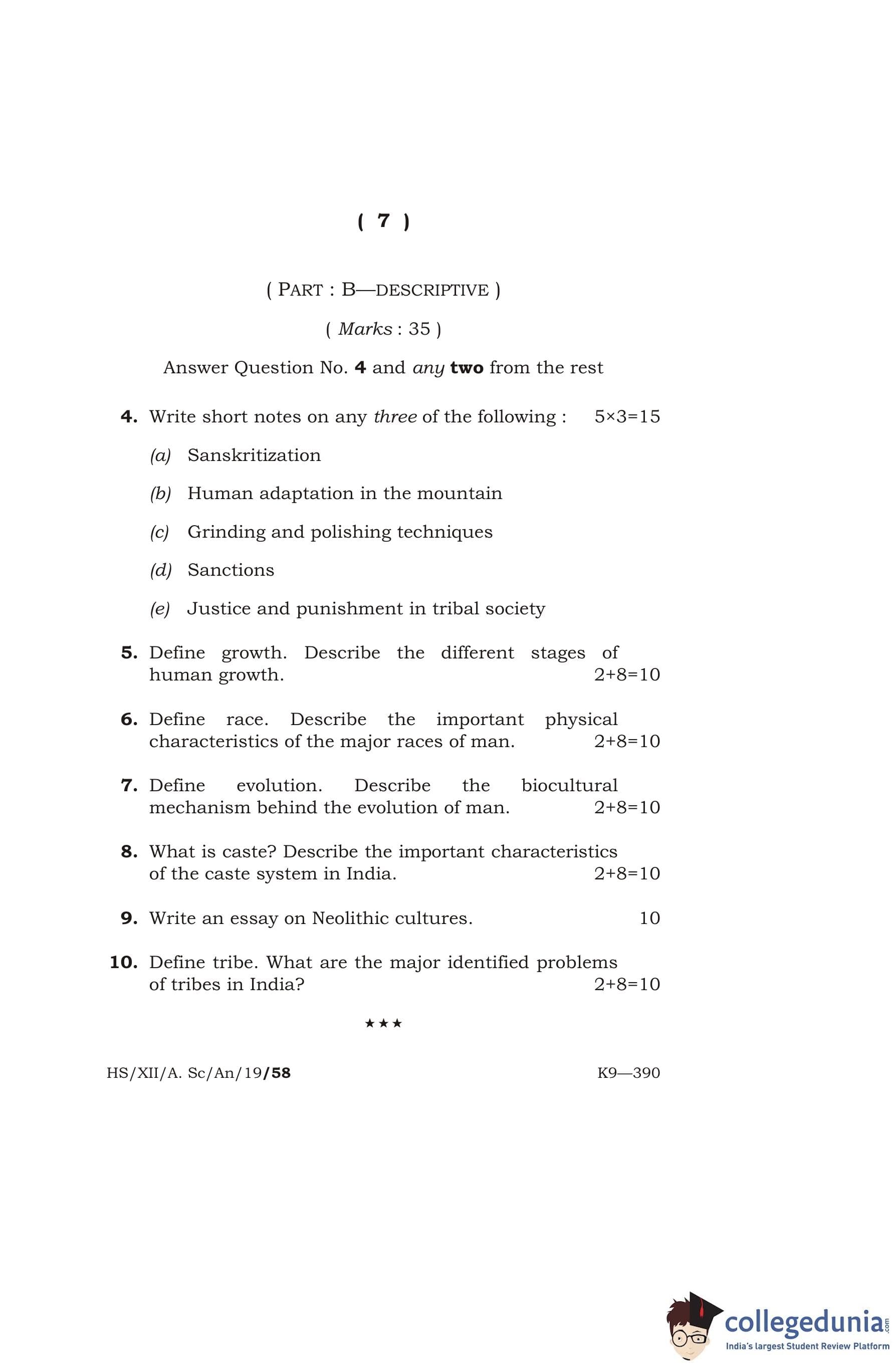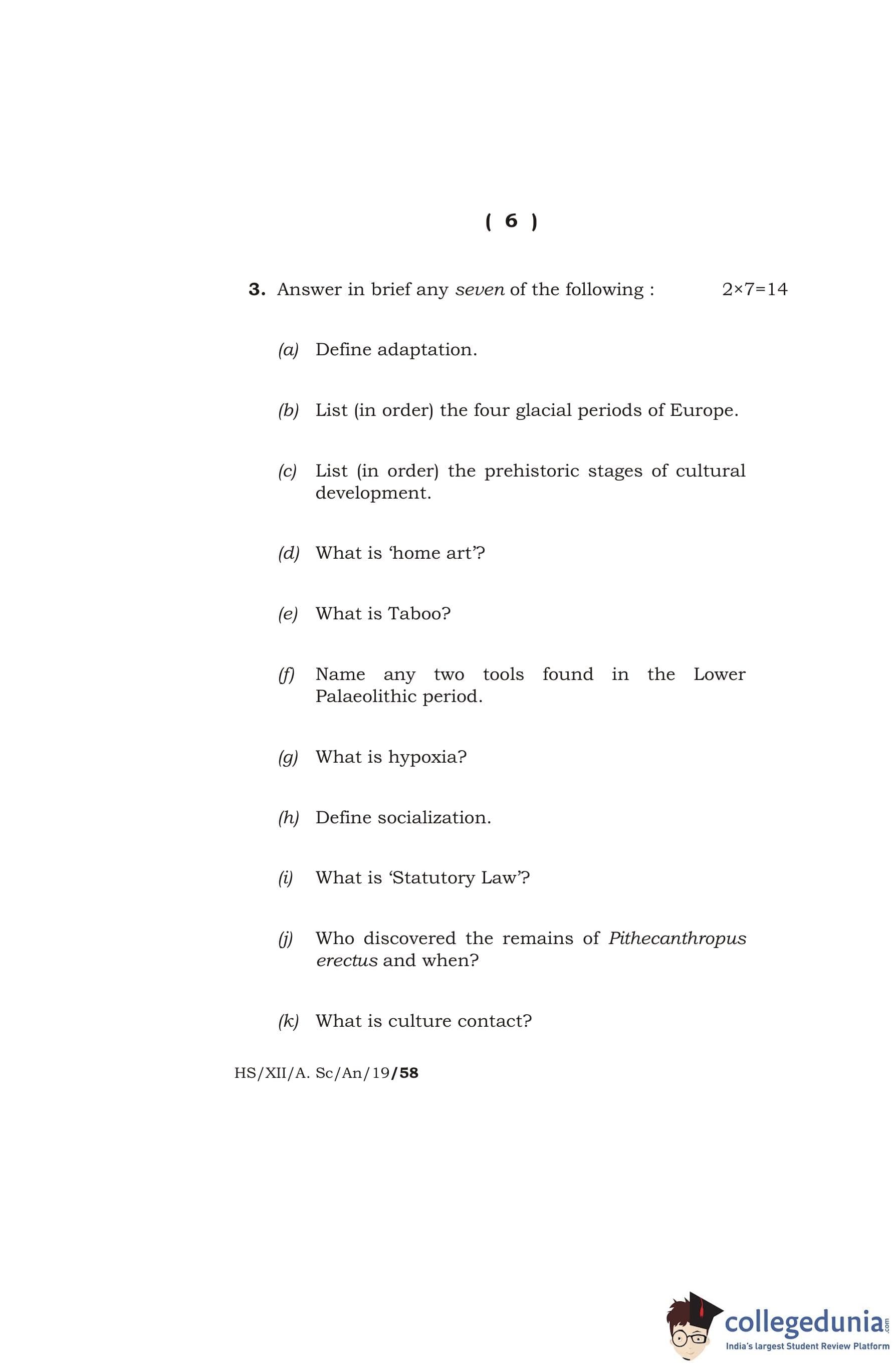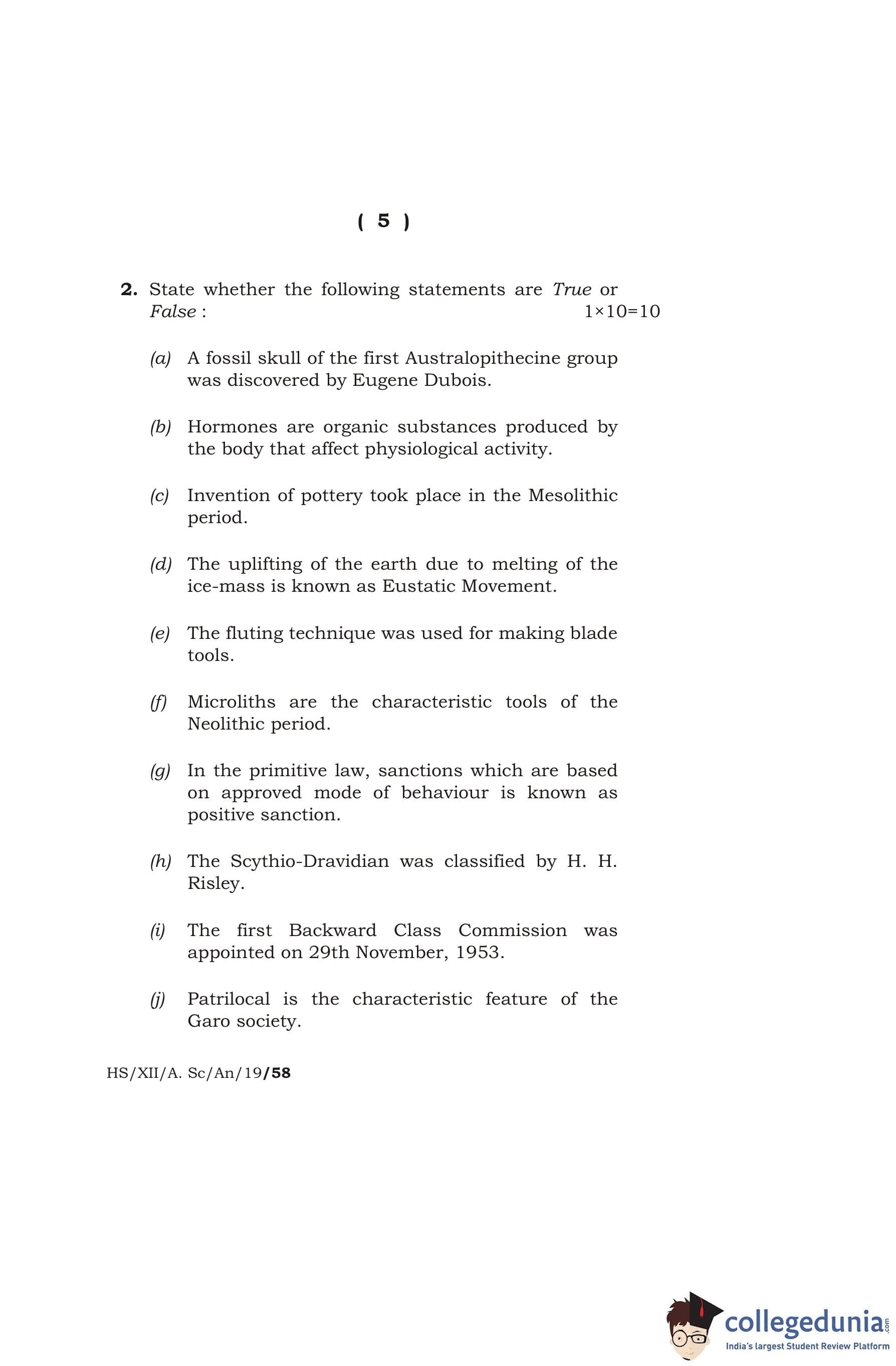 MBOSE Class 12 Anthropology Question Paper 2019 with Answer Key pdf is available for download here. The exam was conducted by Meghalaya Board of School Education on March 5, 2019 in the Morning Session 10 AM to 1 PM. The question paper comprised a total of 10 questions divided among 2 sections.