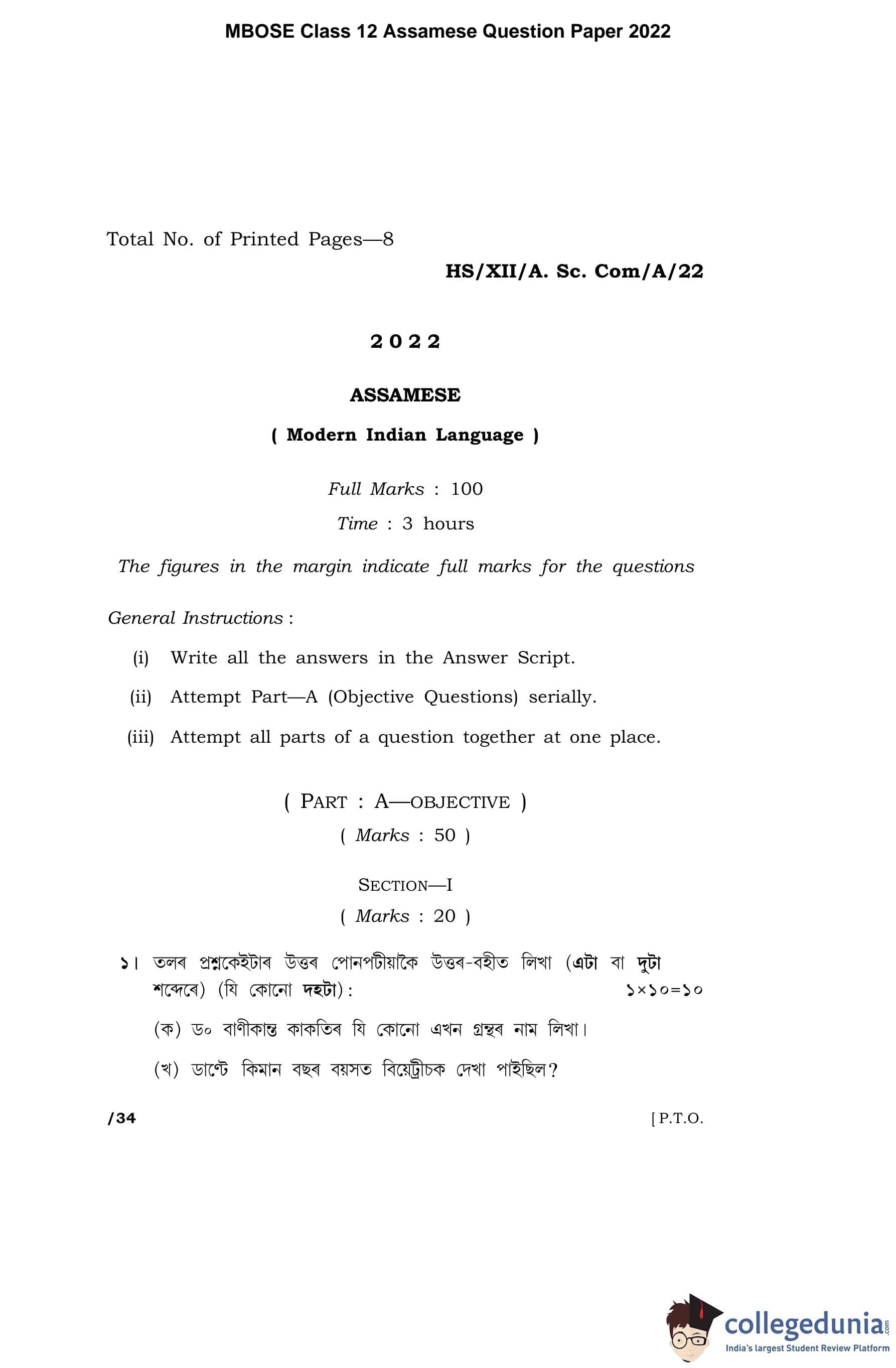 | MBOSE Class 12 Assamese Question Paper 2022 PDF | MBOSE Class 12 Assamese Answer Key 2022 PDF |