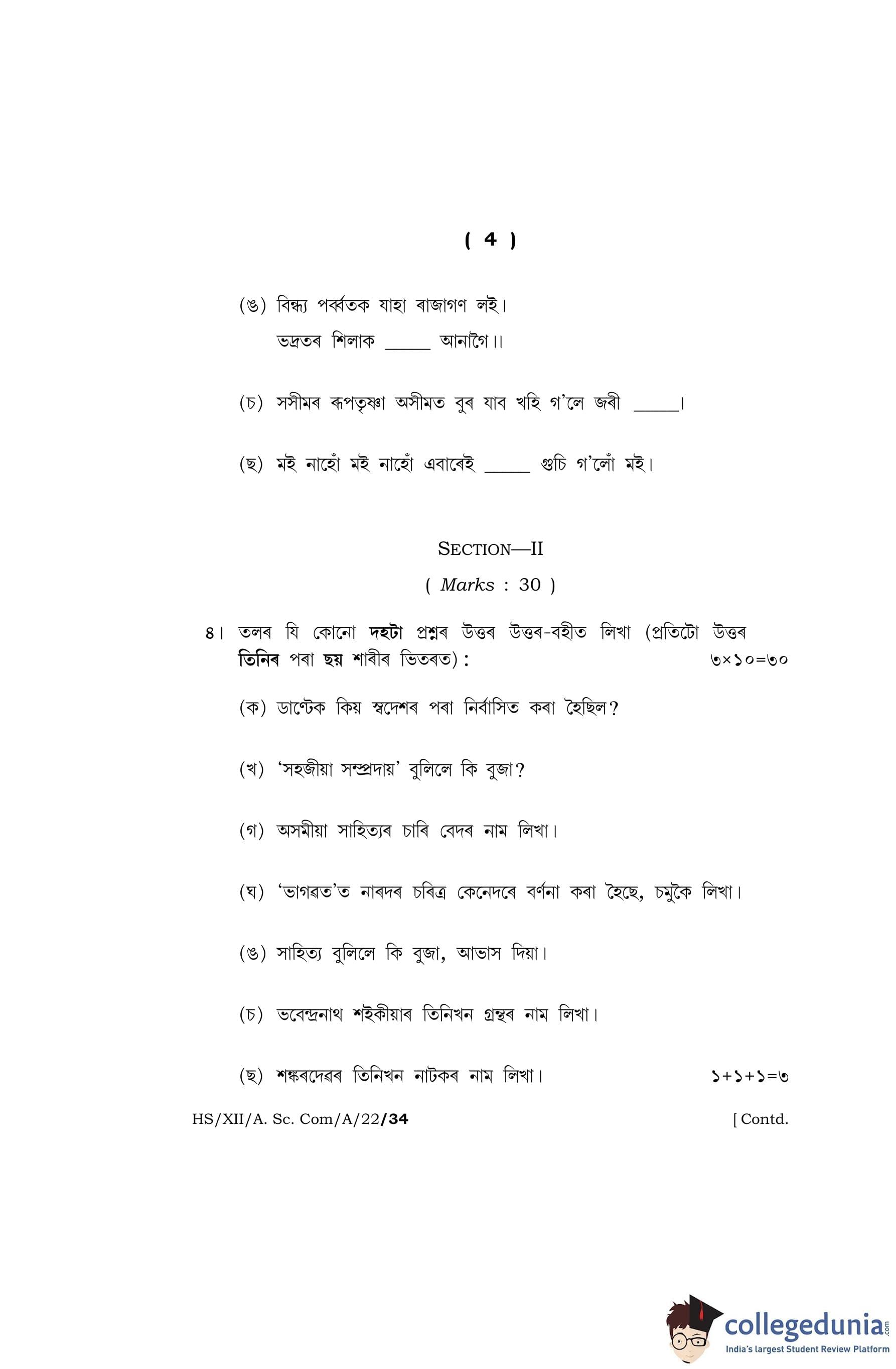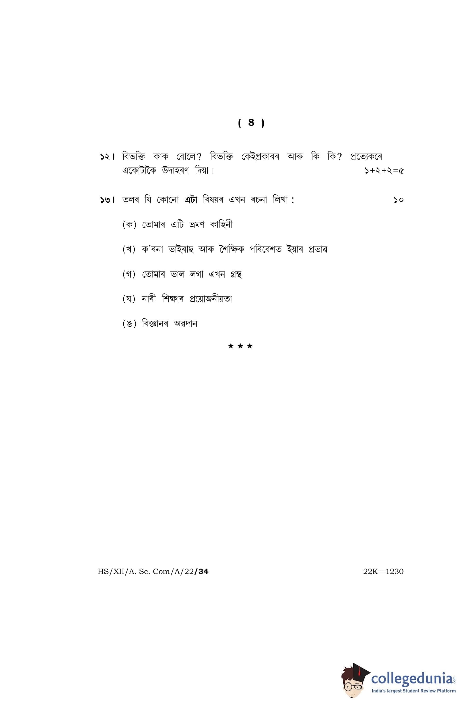 MBOSE Class 12 Assamese Question Paper 2022 with Answer Key pdf is available for download here. The exam was conducted by Meghalaya Board of School Education on March 29, 2022 in the Morning Session 10 AM to 1 PM. The question paper comprised a total of 13 questions divided among 2 sections.