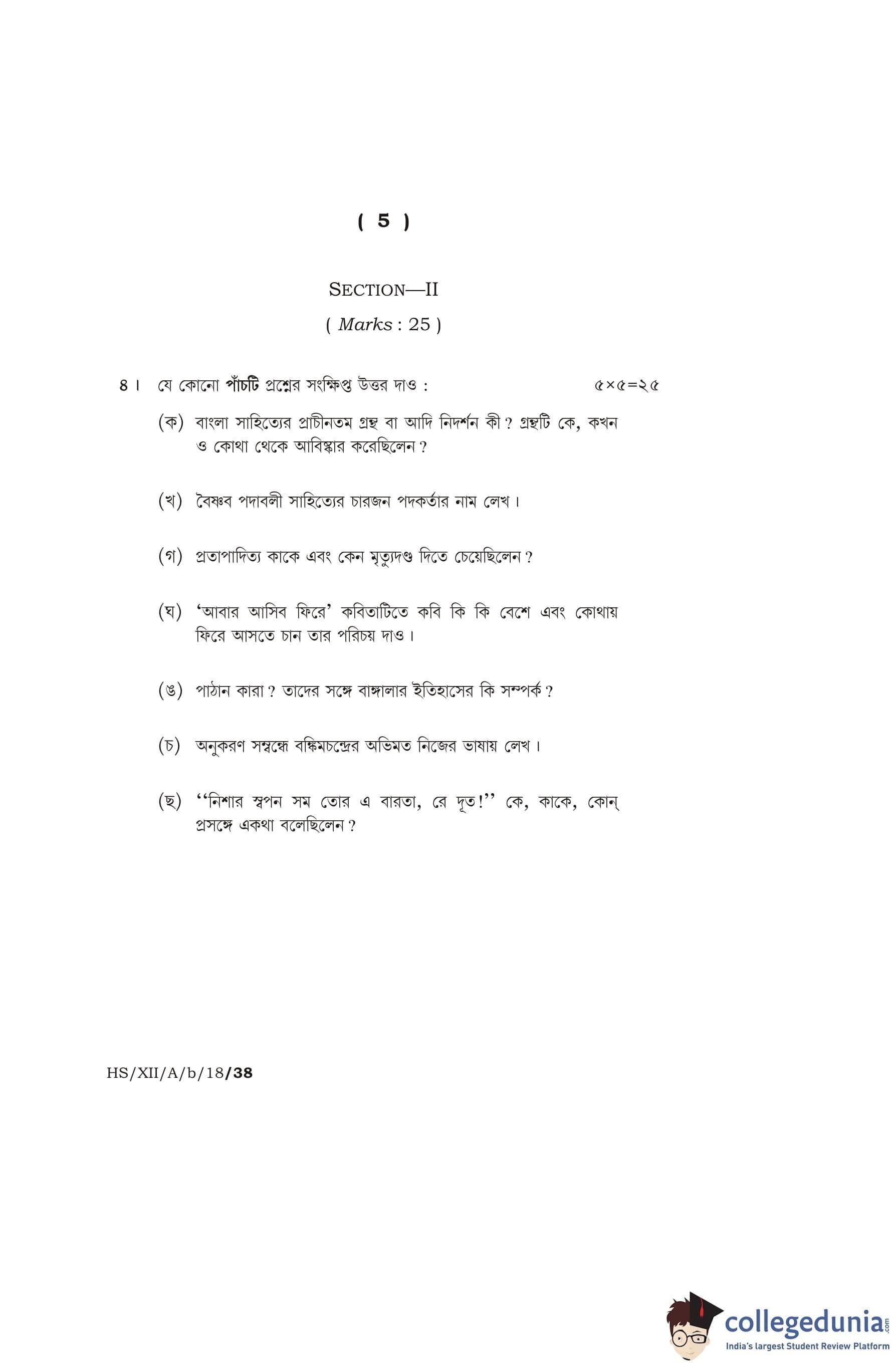 MBOSE Class 12 Bengali (Elective) Question Paper 2018 with Answer Key pdf is available for download here. The exam was conducted by Meghalaya Board of School Education on March 20, 2018 in the Morning Session 10 AM to 1 PM. The question paper comprised a total of 9 questions divided among 2 sections.
