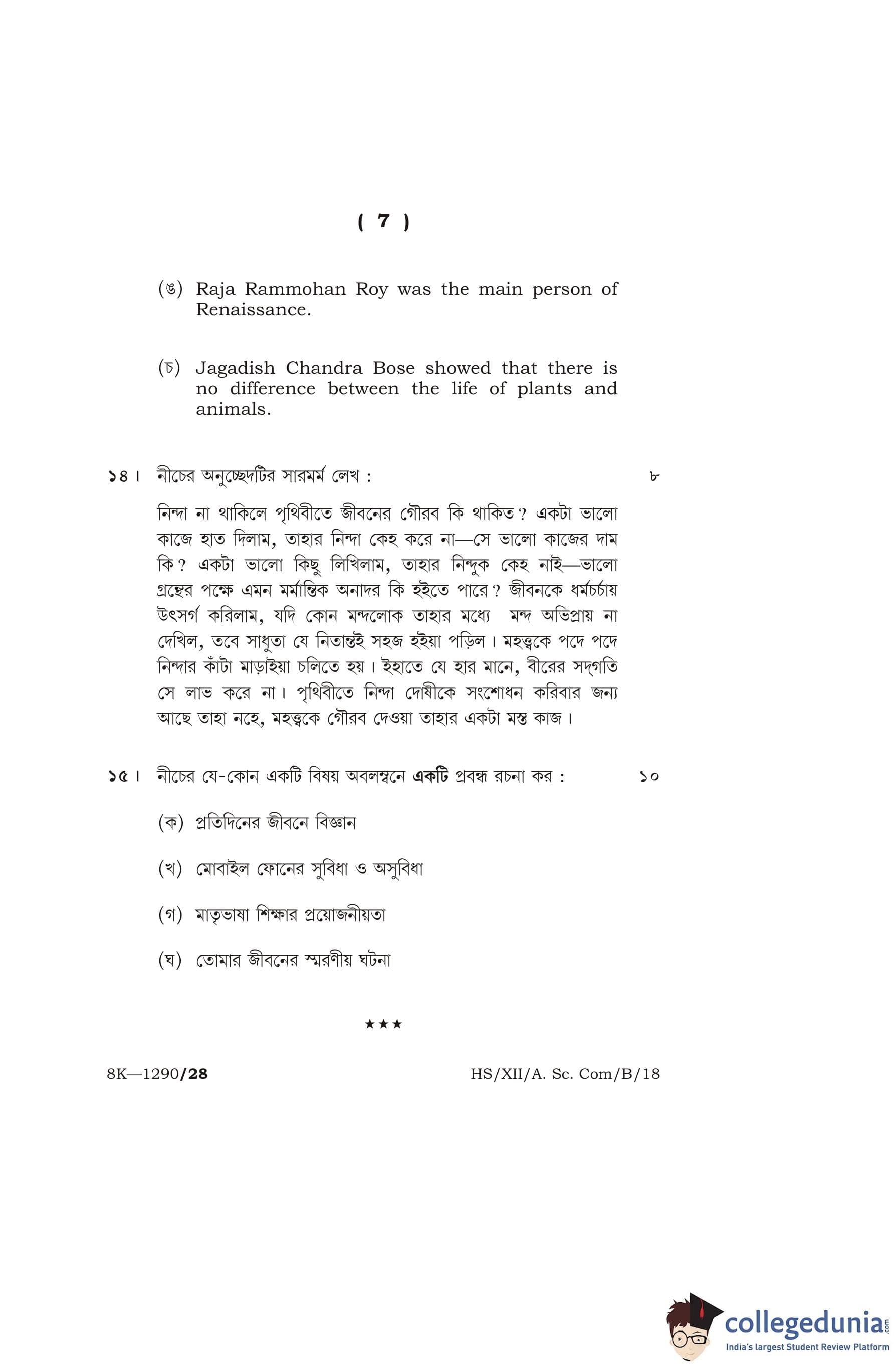 MBOSE Class 12 Bengali Question Paper 2018 with Answer Key pdf is available for download here. The exam was conducted by Meghalaya Board of School Education on March 8, 2018 in the Morning Session 10 AM to 1 PM. The question paper comprised a total of 15 questions.