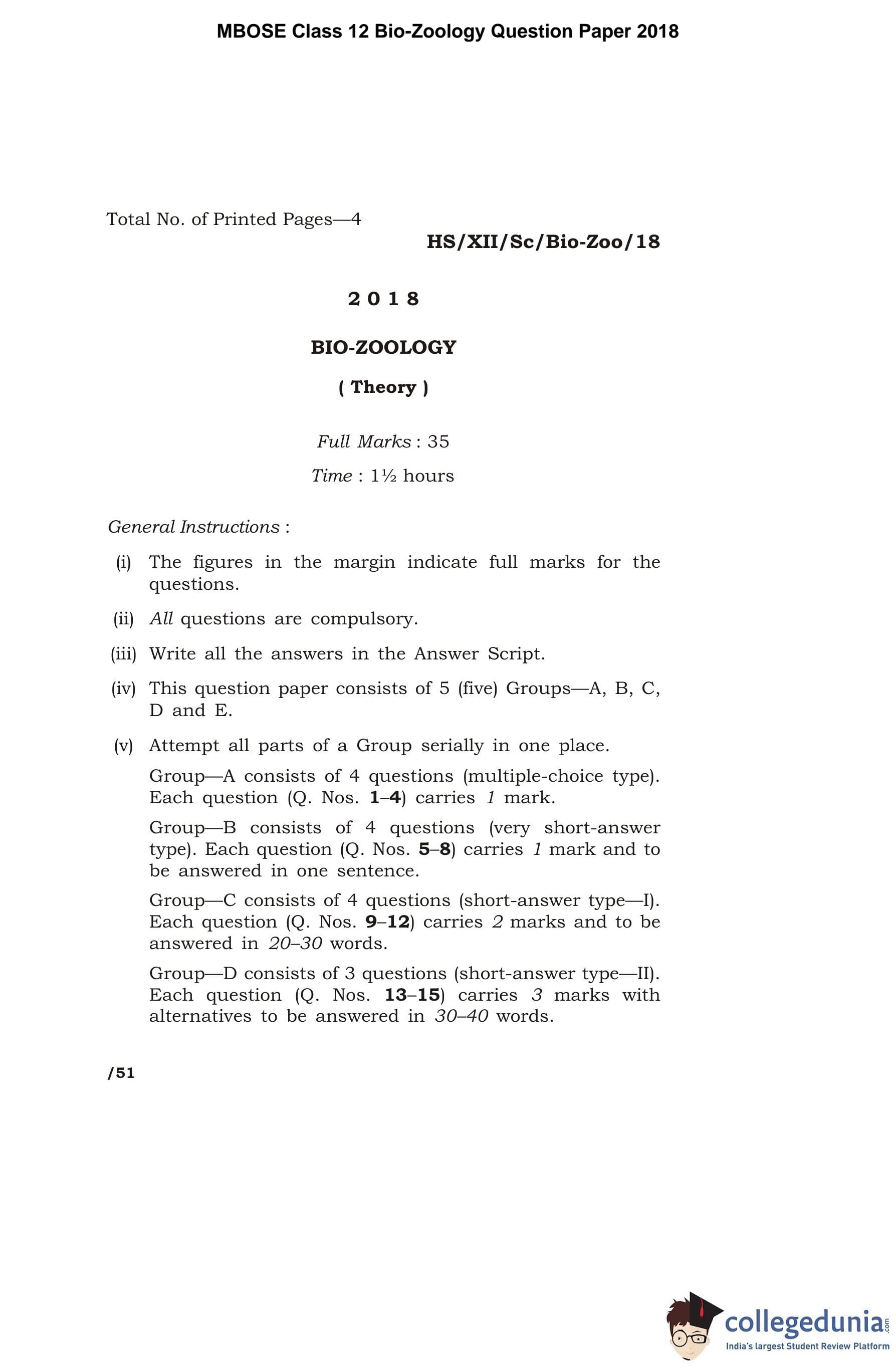 | MBOSE Class 12 Bio-Zoology Question Paper 2018 PDF | MBOSE Class 12 Bio-Zoology Answer Key 2018 PDF |