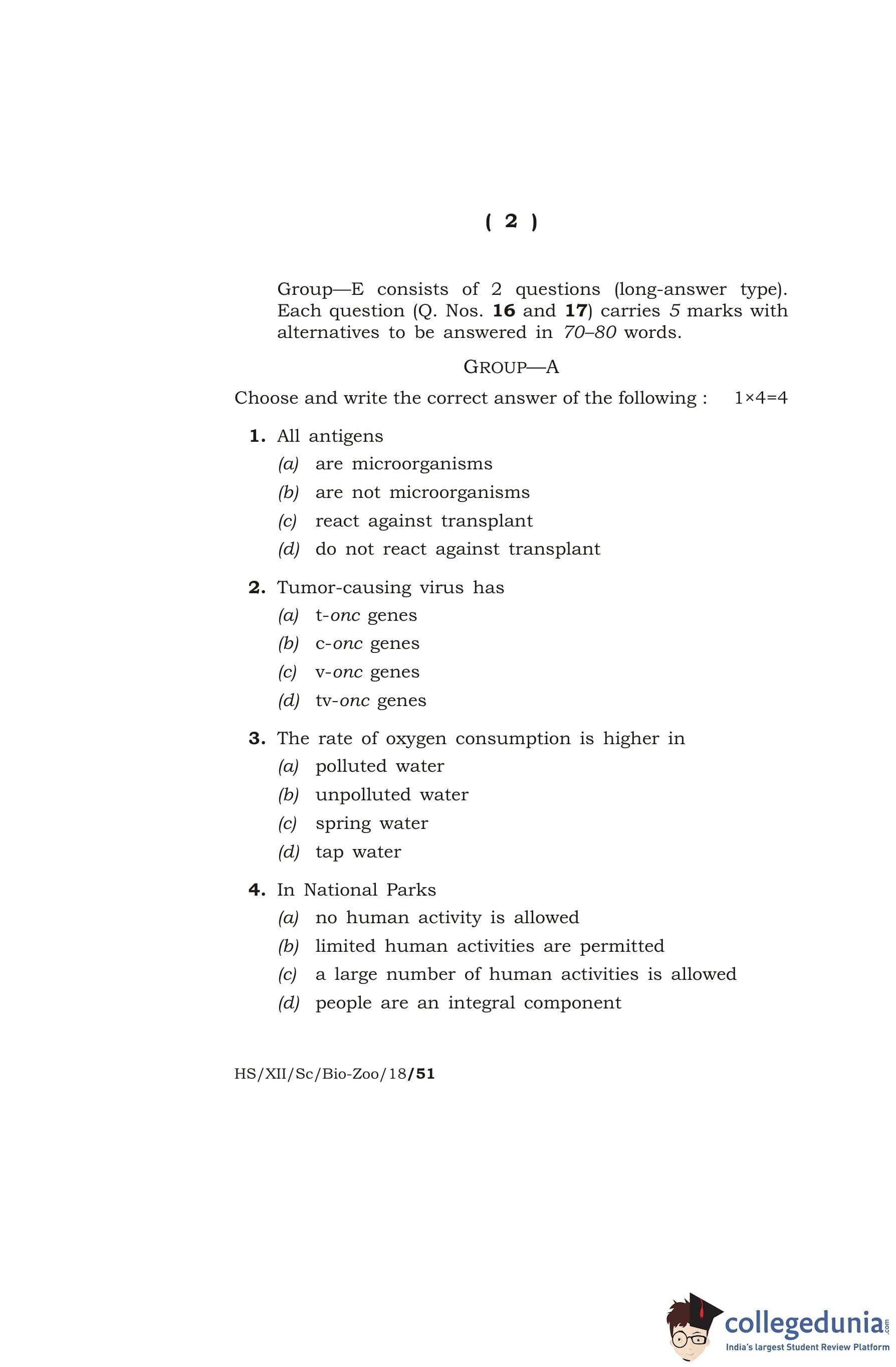 MBOSE Class 12 Bio-Zoology Question Paper 2018 with Answer Key pdf is available for download here. The exam was conducted by Meghalaya Board of School Education in the Morning Session 10 AM to 1 PM. The question paper comprised a total of 17 questions divided among 5 sections.
