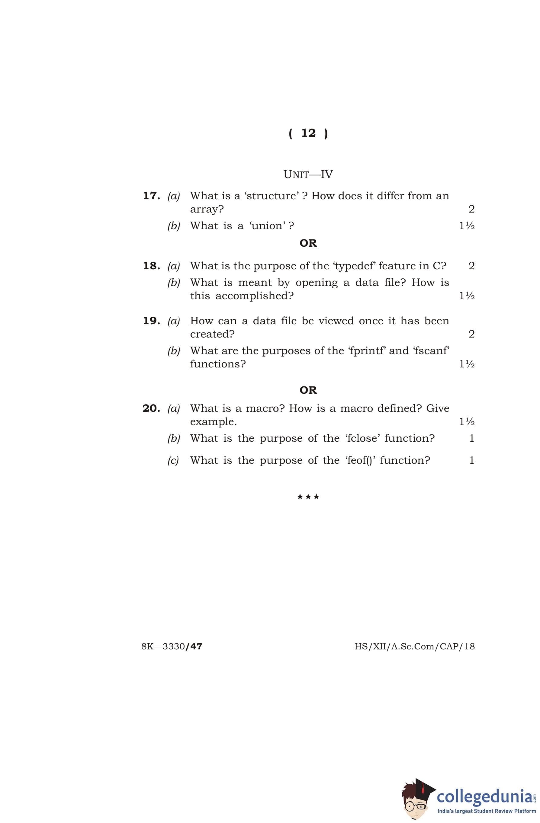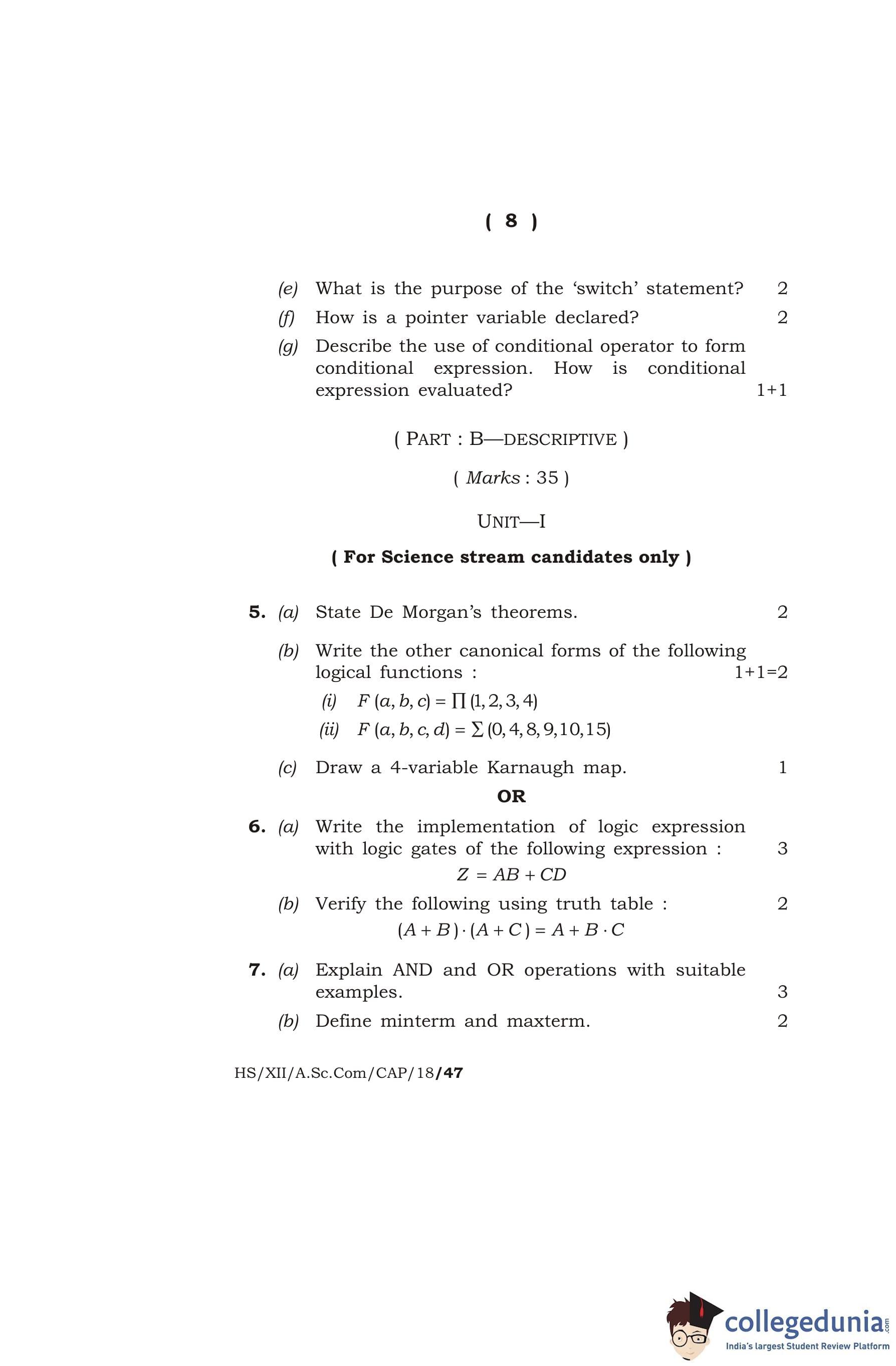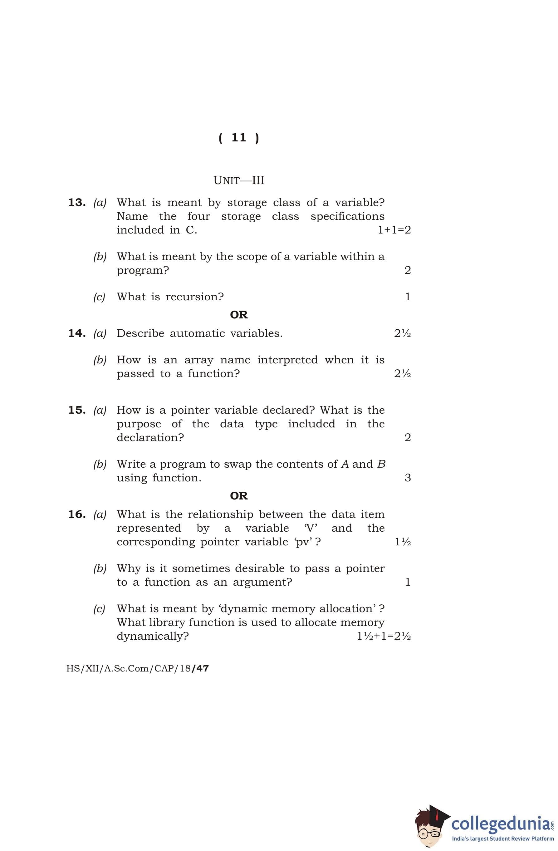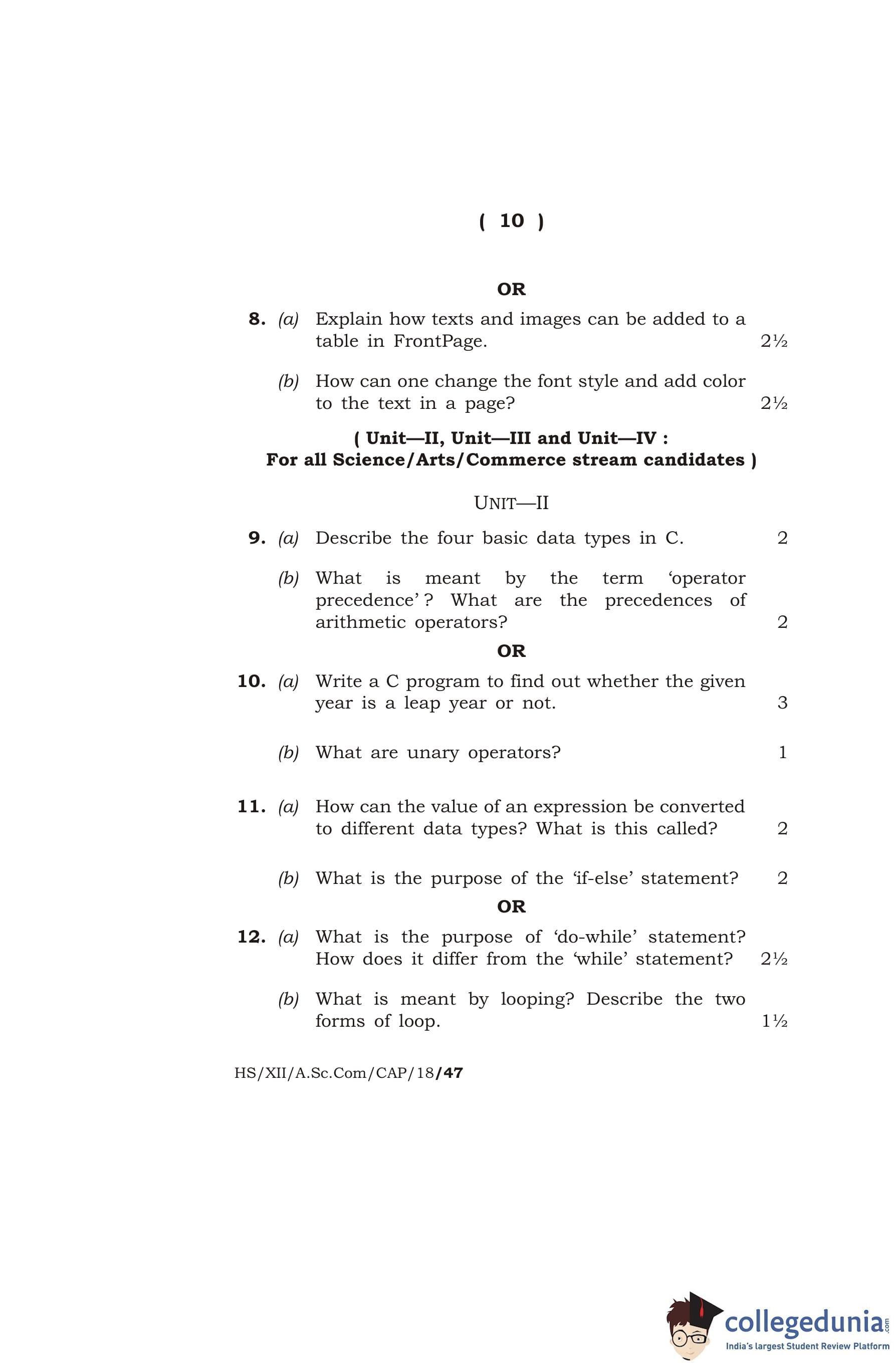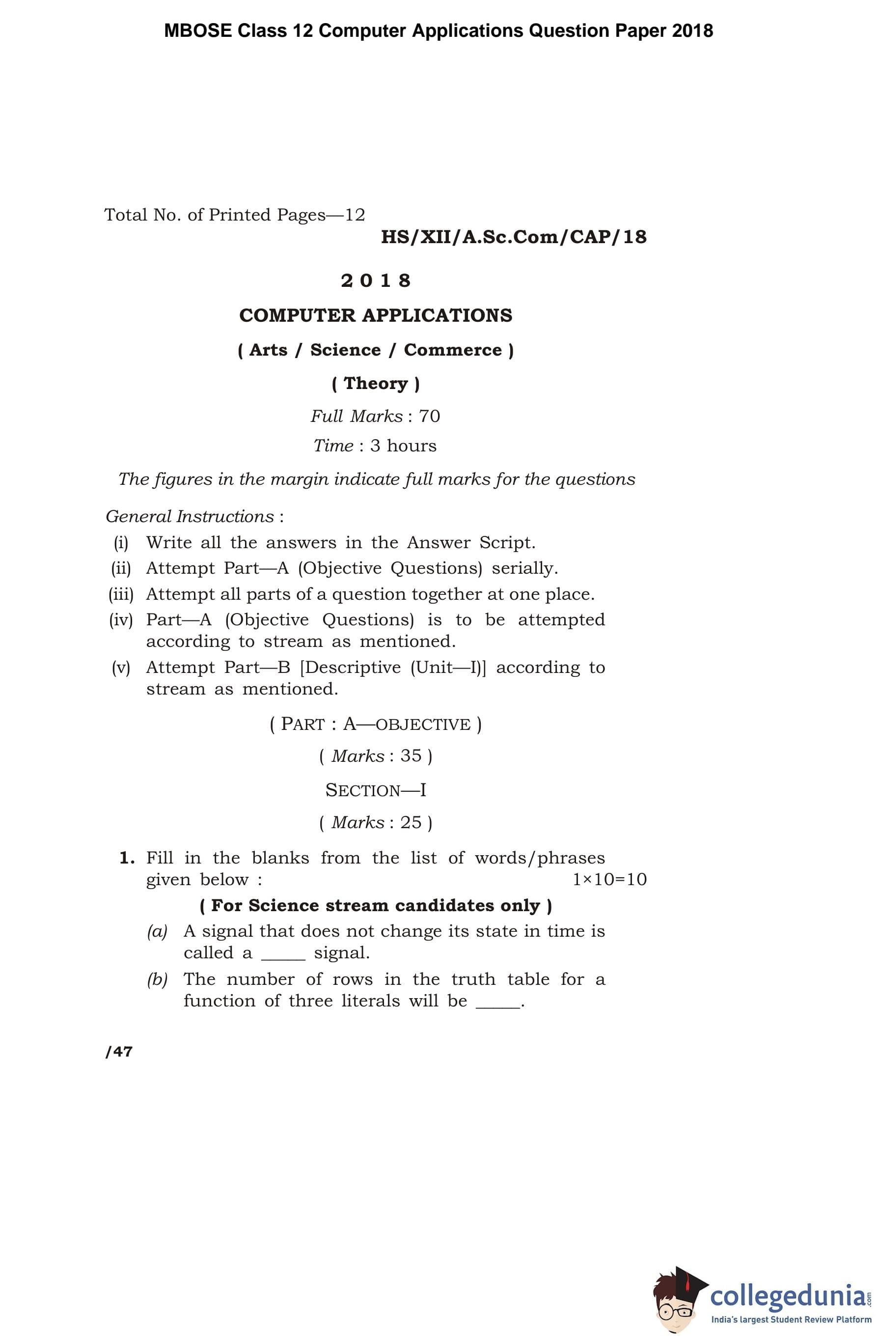 MBOSE Class 12 Computer Applications Question Paper 2018