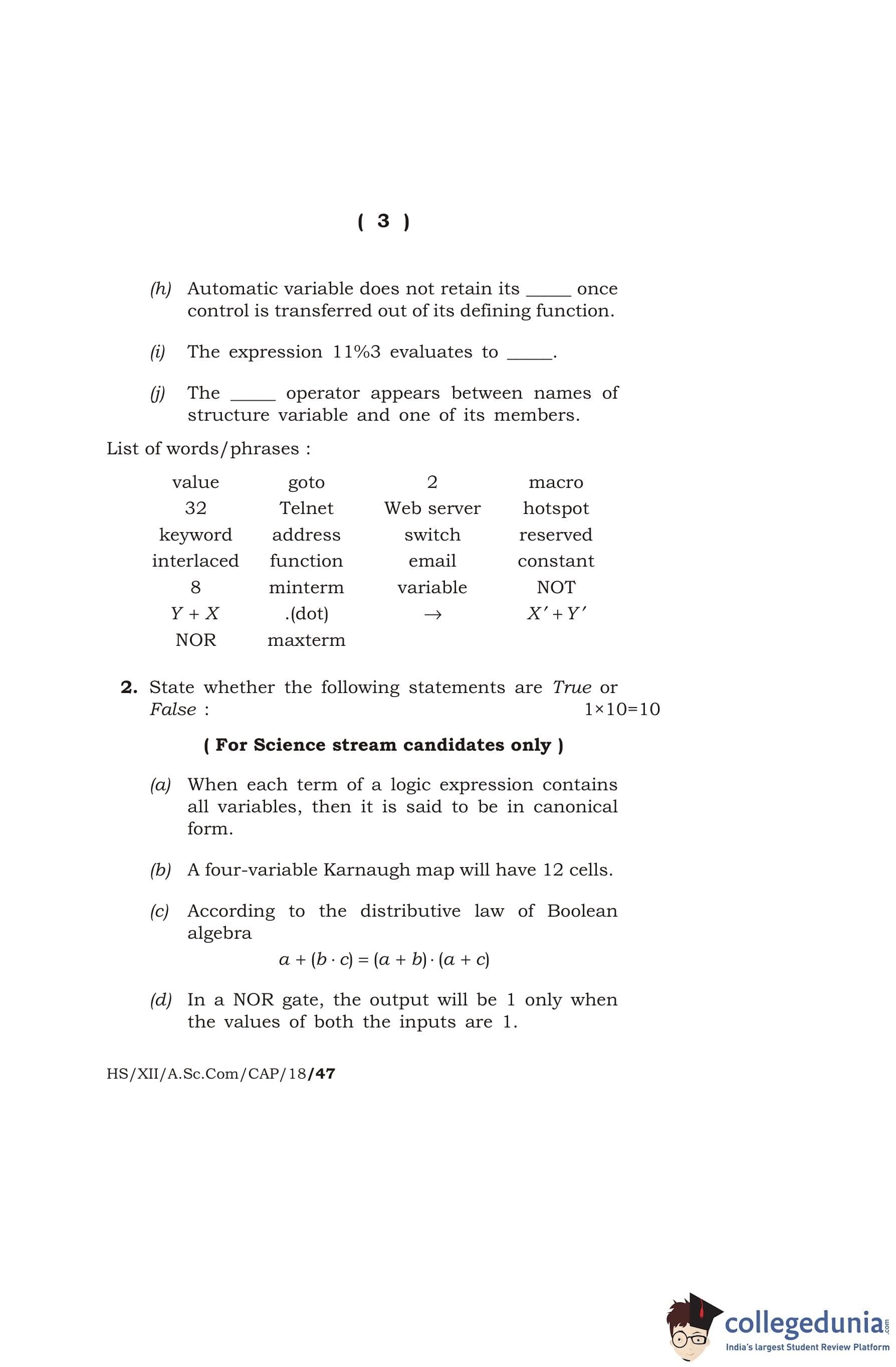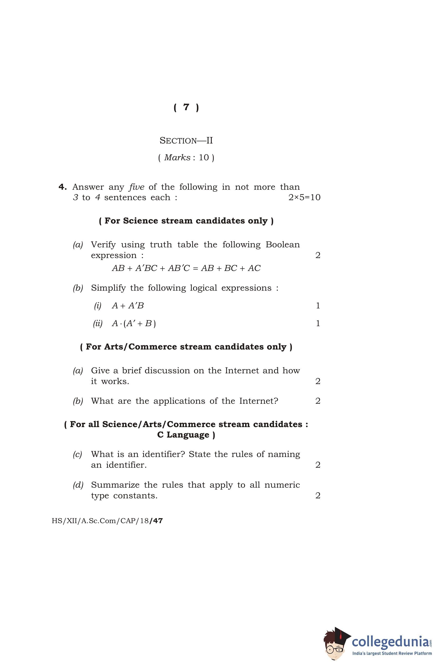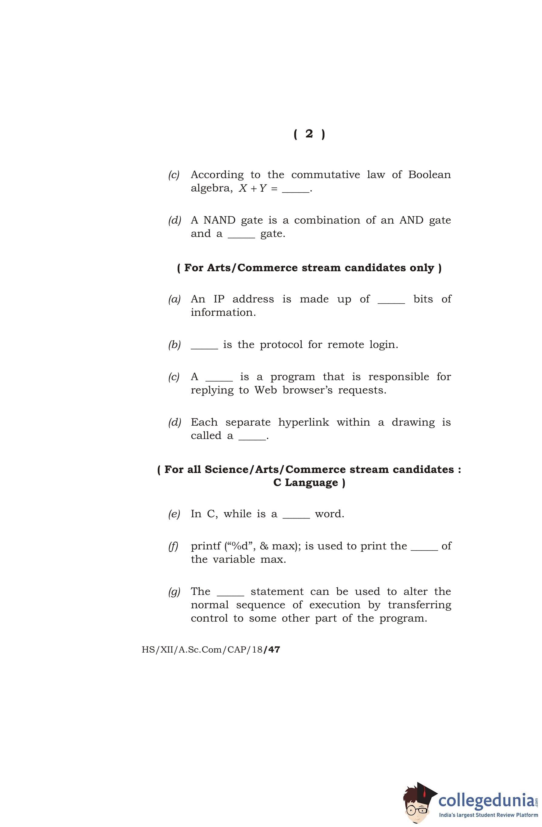 MBOSE Class 12 Computer Applications Question Paper 2018 with Answer Key pdf is available for download here. The exam was conducted by Meghalaya Board of School Education on March 19, 2018 in the Morning Session 10 AM to 1 PM. The question paper comprised a total of 20 questions divided among 2 sections.