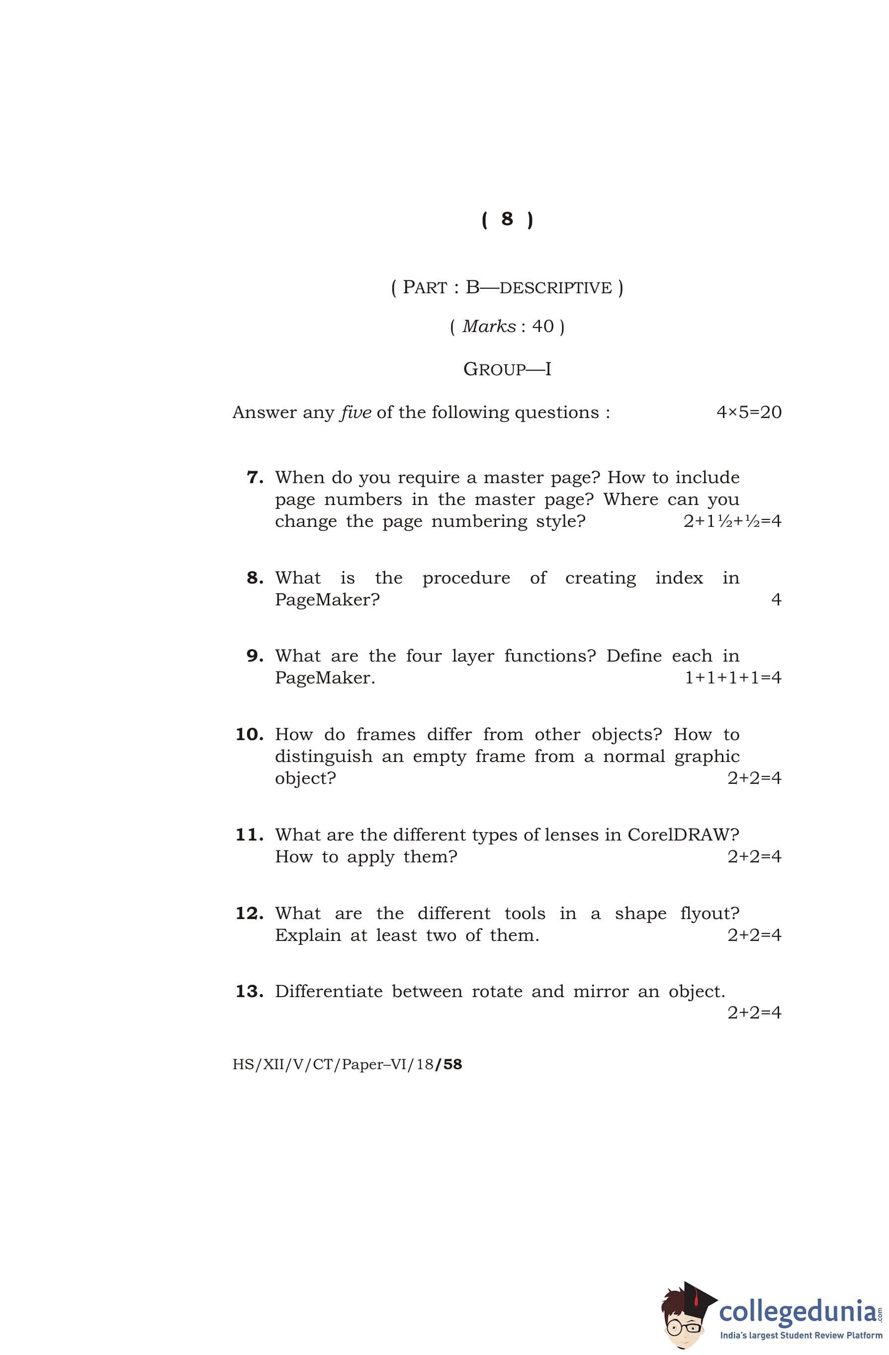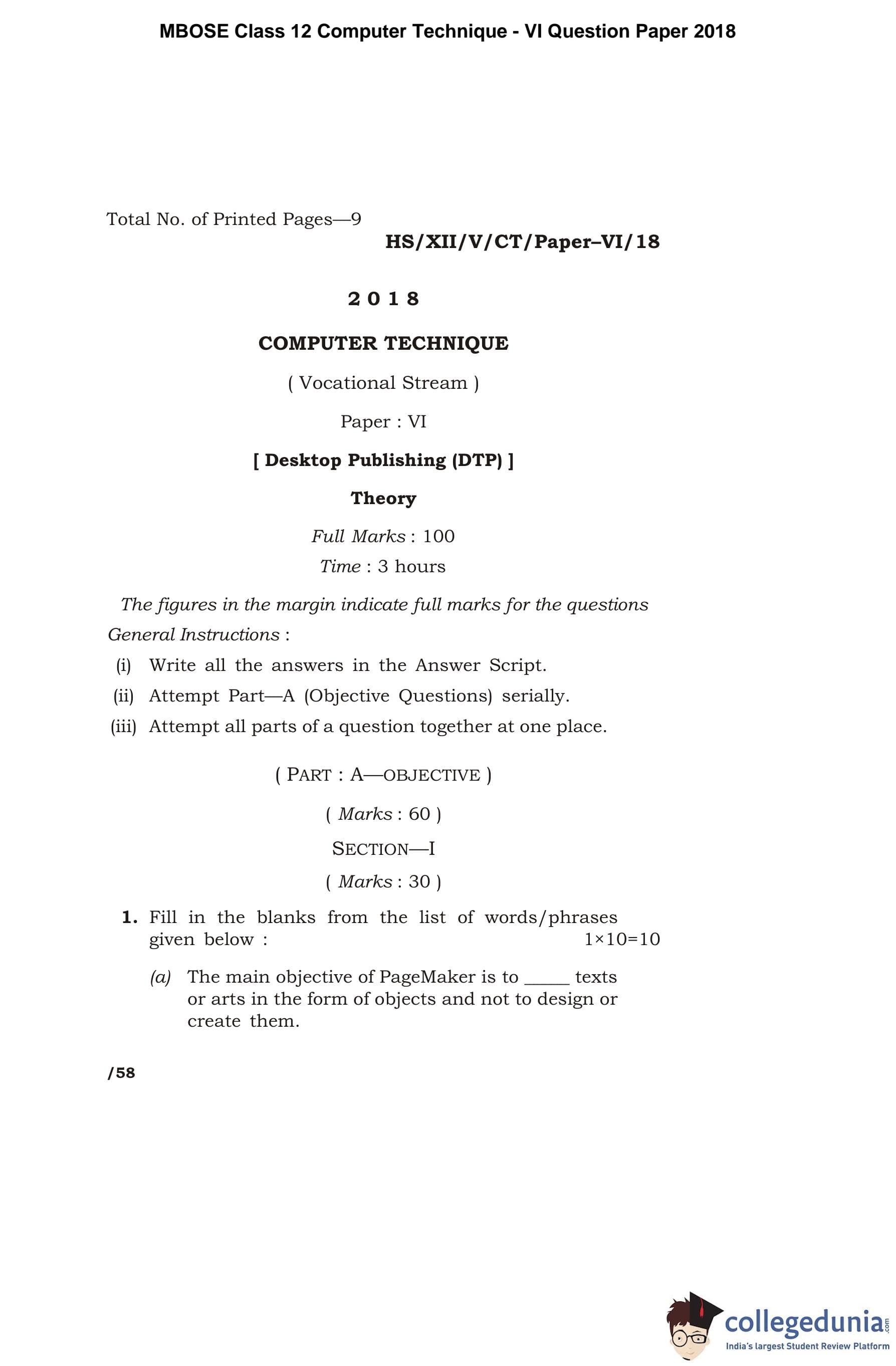 | MBOSE Class 12 Computer Technique - VI Question Paper 2018 PDF | MBOSE Class 12 Computer Technique - VI Answer Key 2018 PDF |
