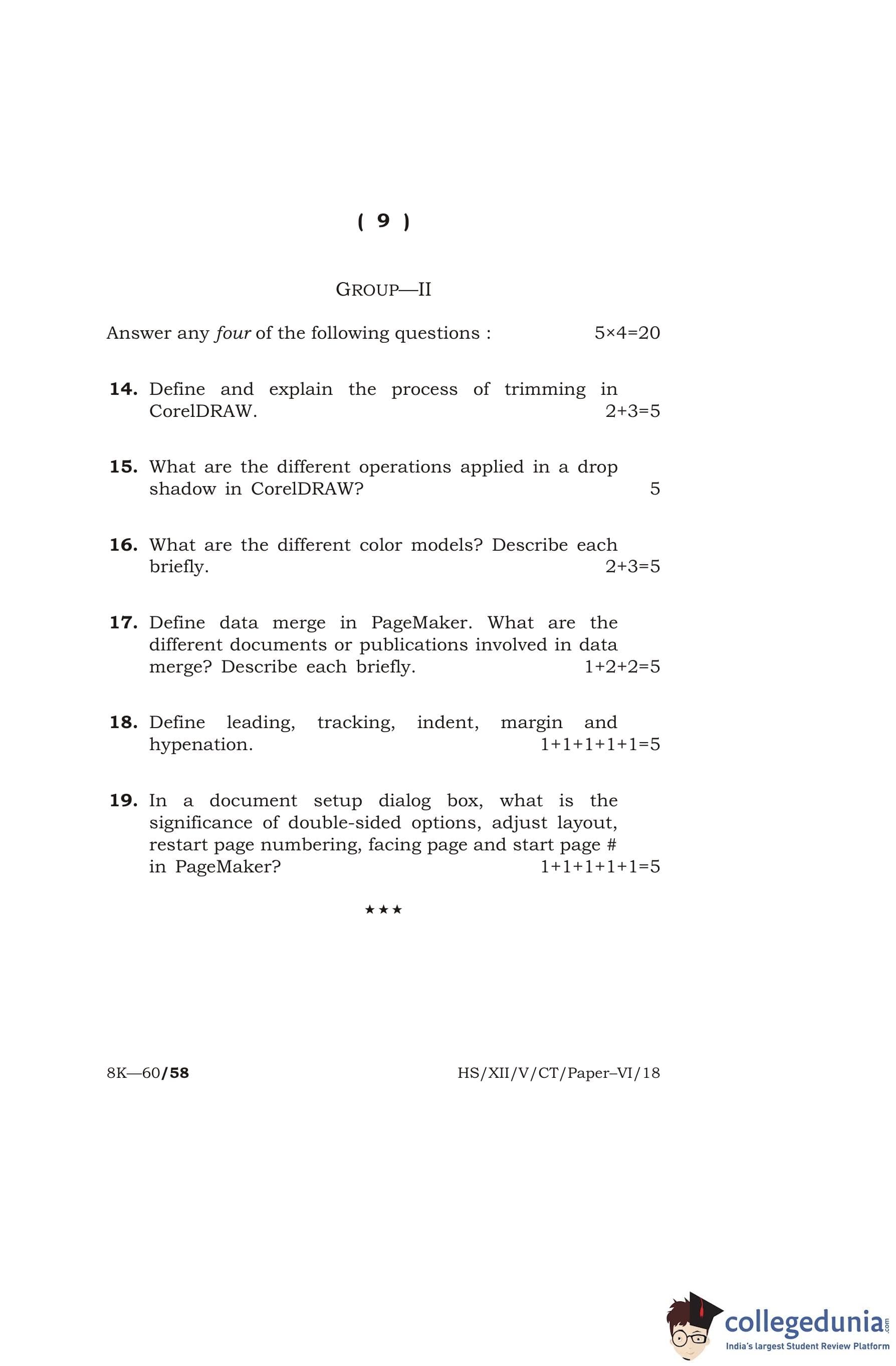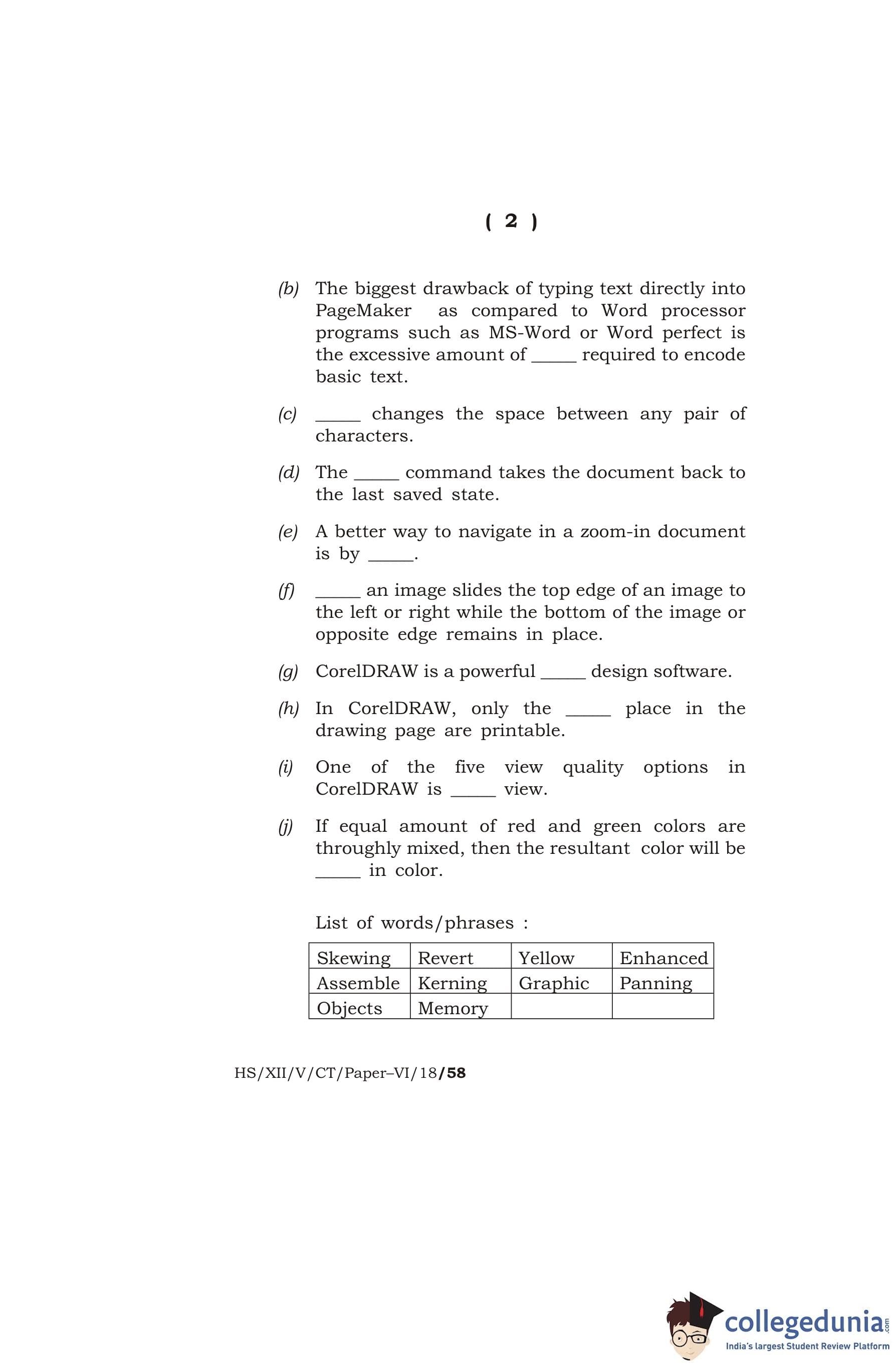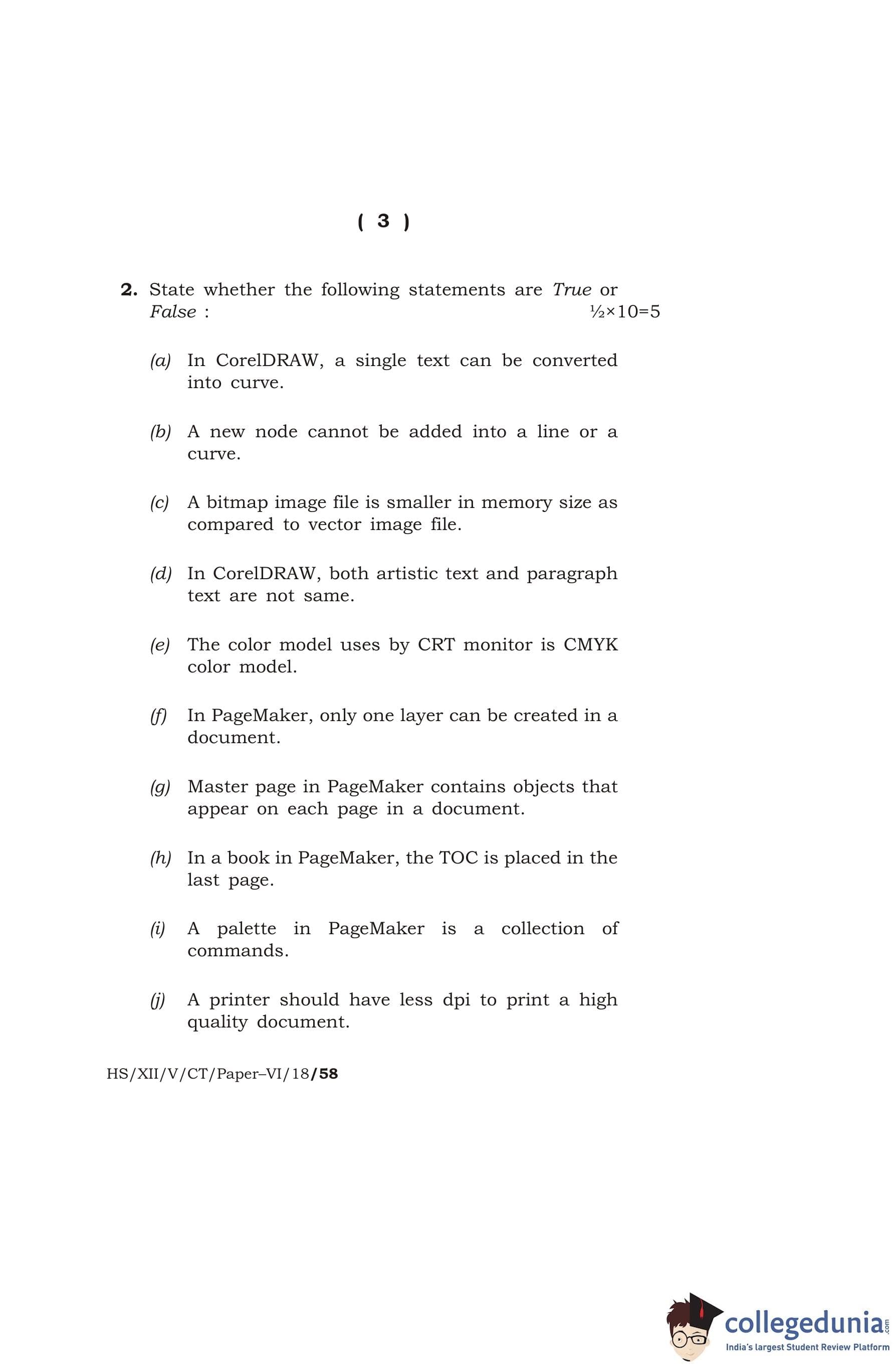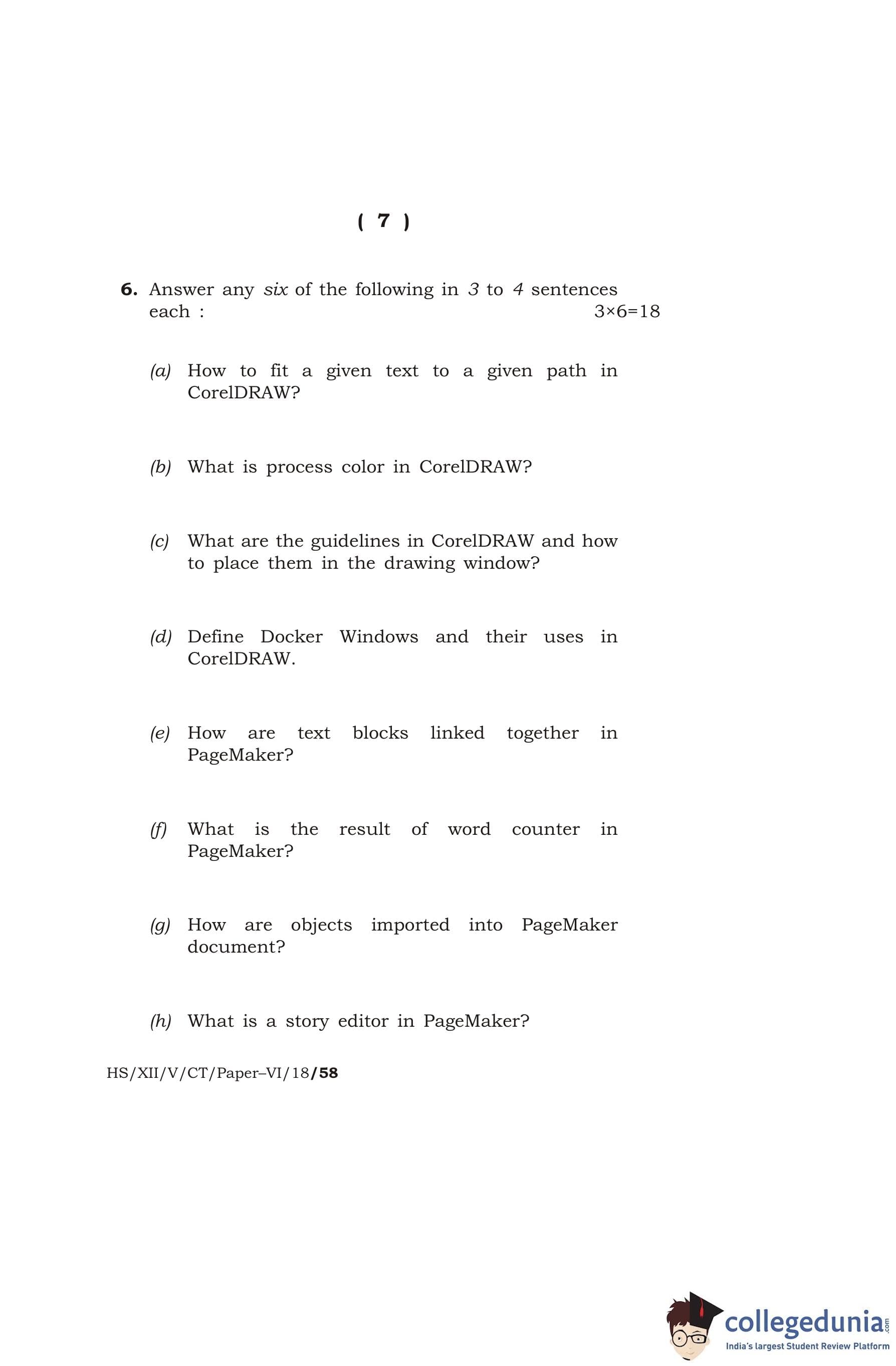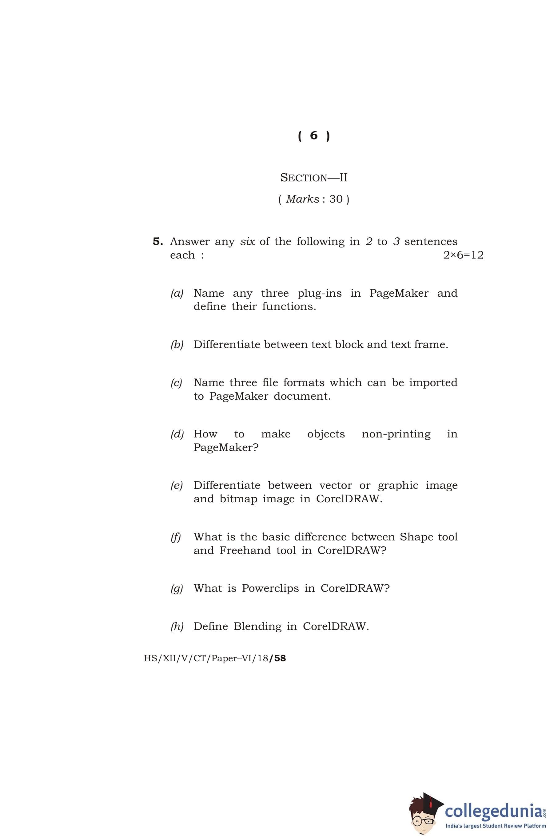 MBOSE Class 12 Computer Technique - VI Question Paper 2018 with Answer Key