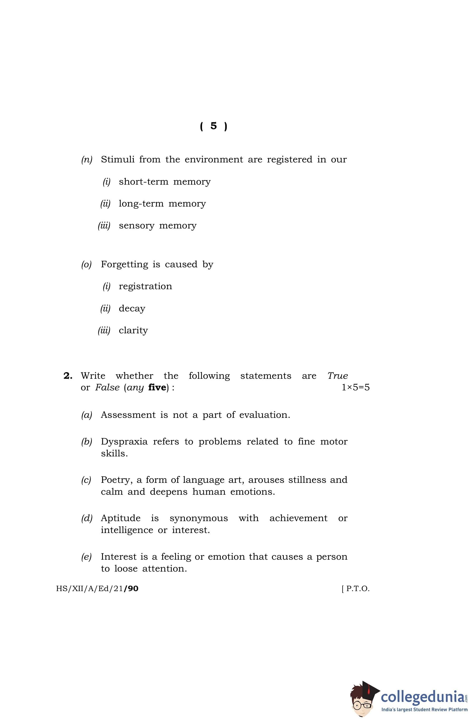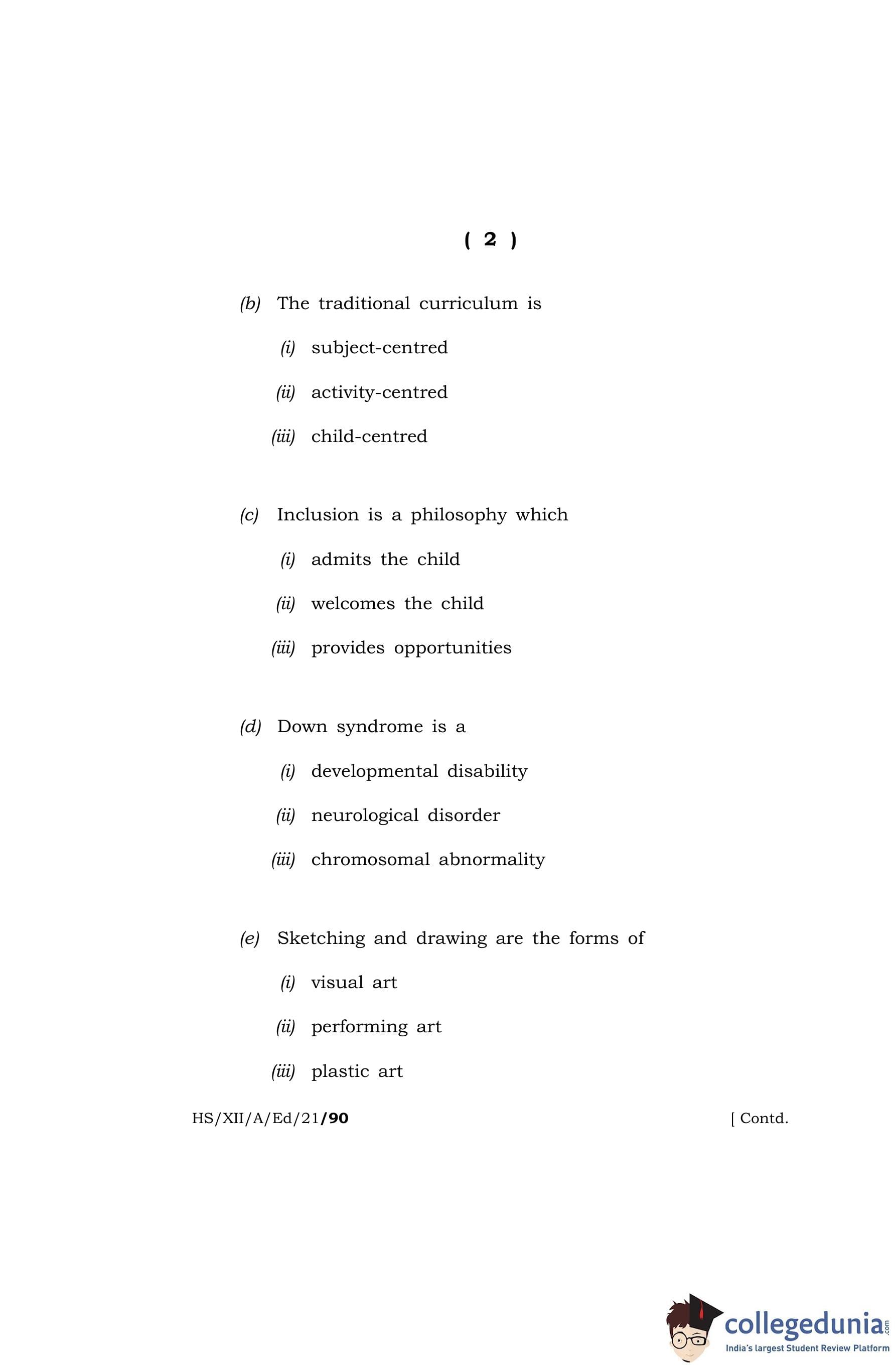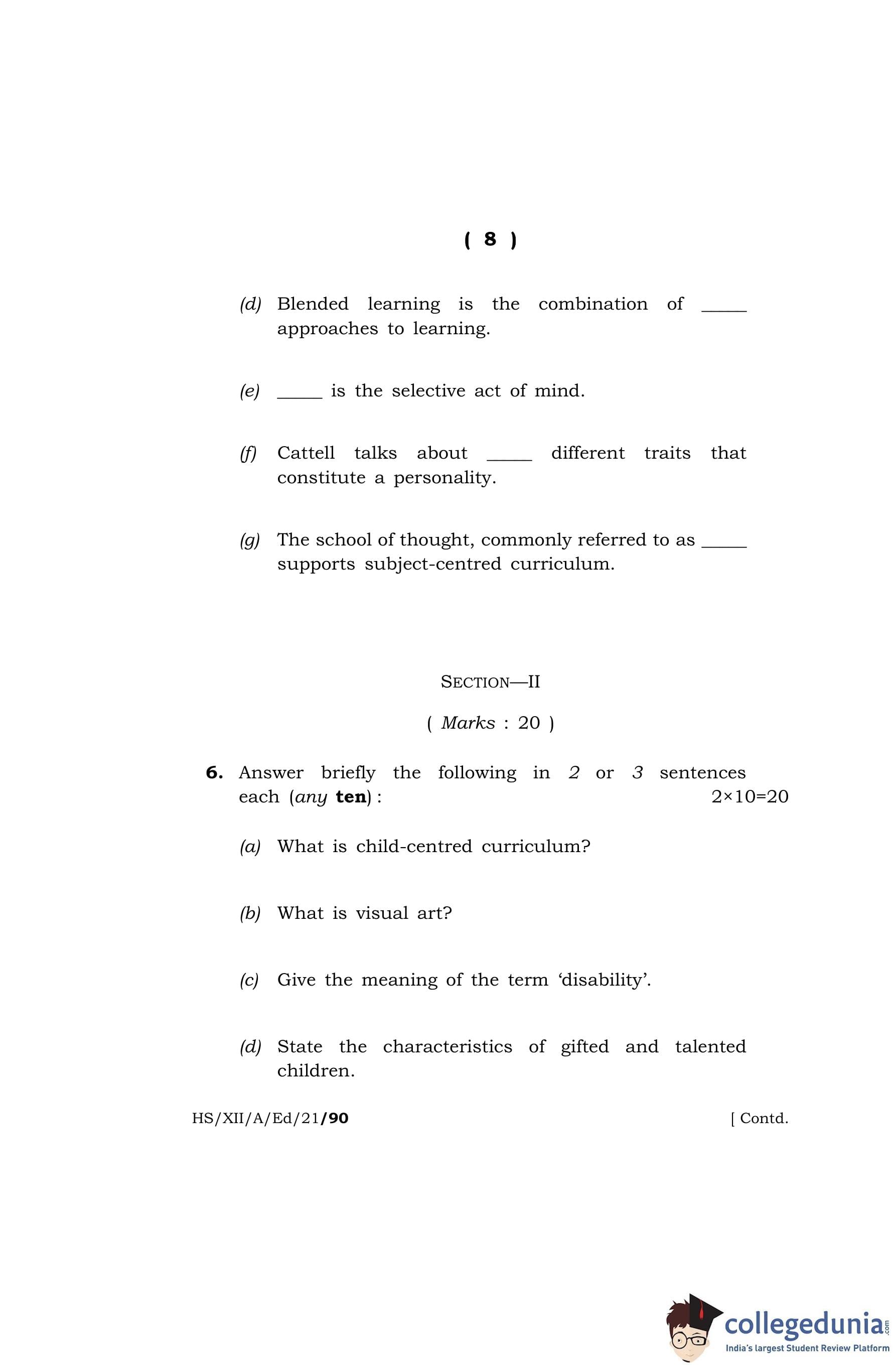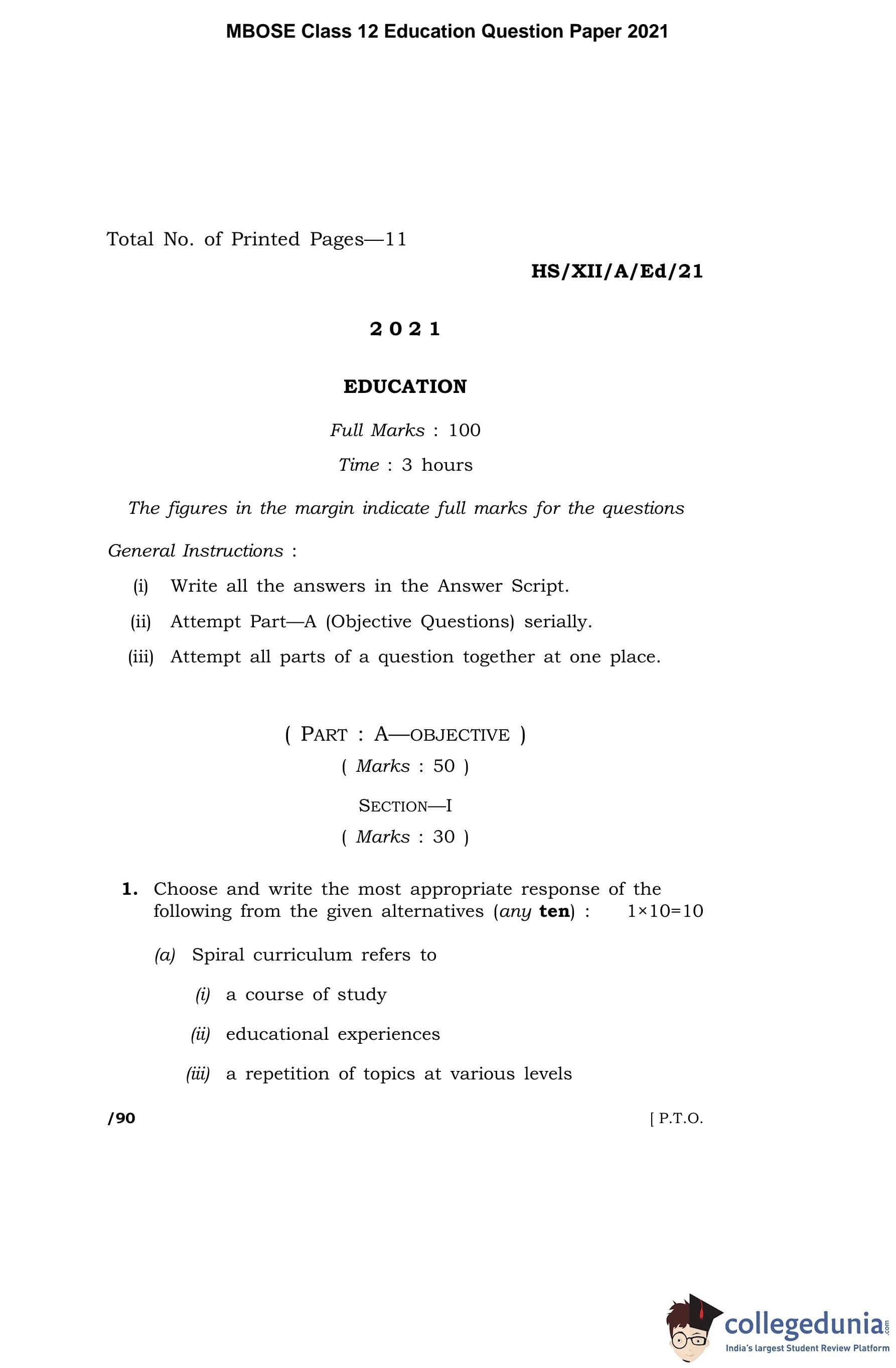 MBOSE Class 12 Education Question Paper 2021 with Answer Key pdf is available for download here. The exam was conducted by Meghalaya Board of School Education on April 28, 2021 in the Morning Session 10 AM to 1 PM. The question paper comprised a total of 13 questions divided among 2 sections.
