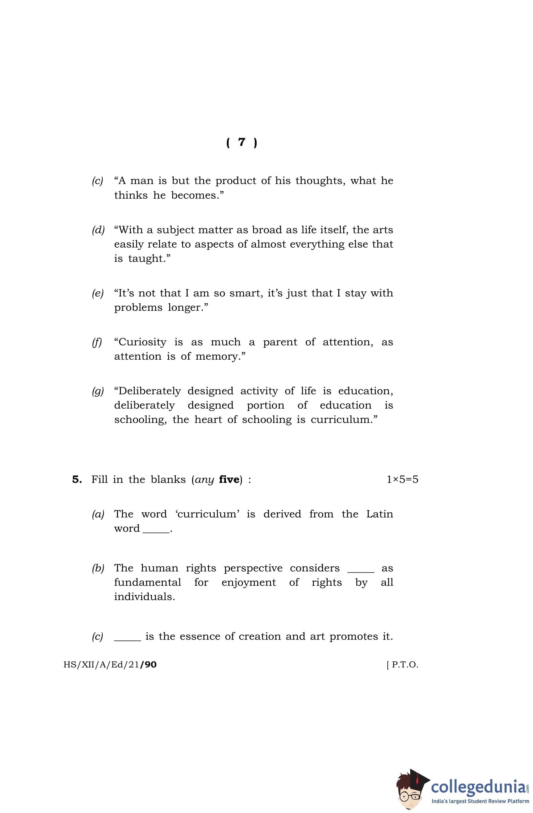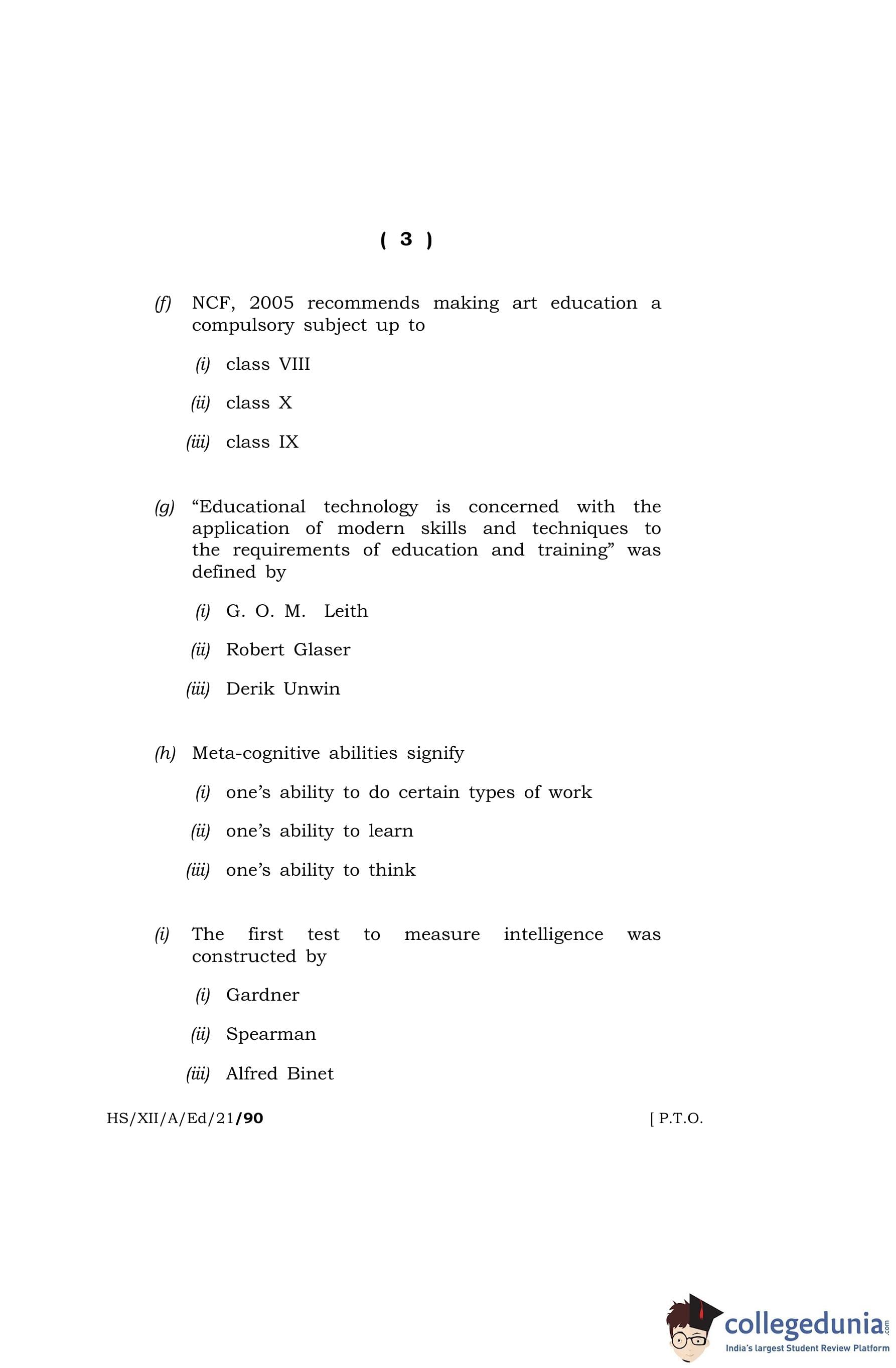 MBOSE Class 12 Education Question Paper 2021 with Answer Key