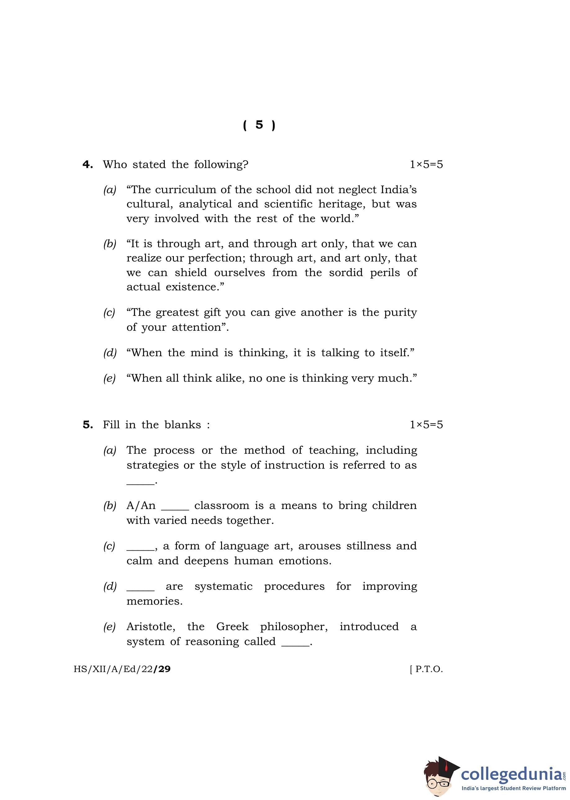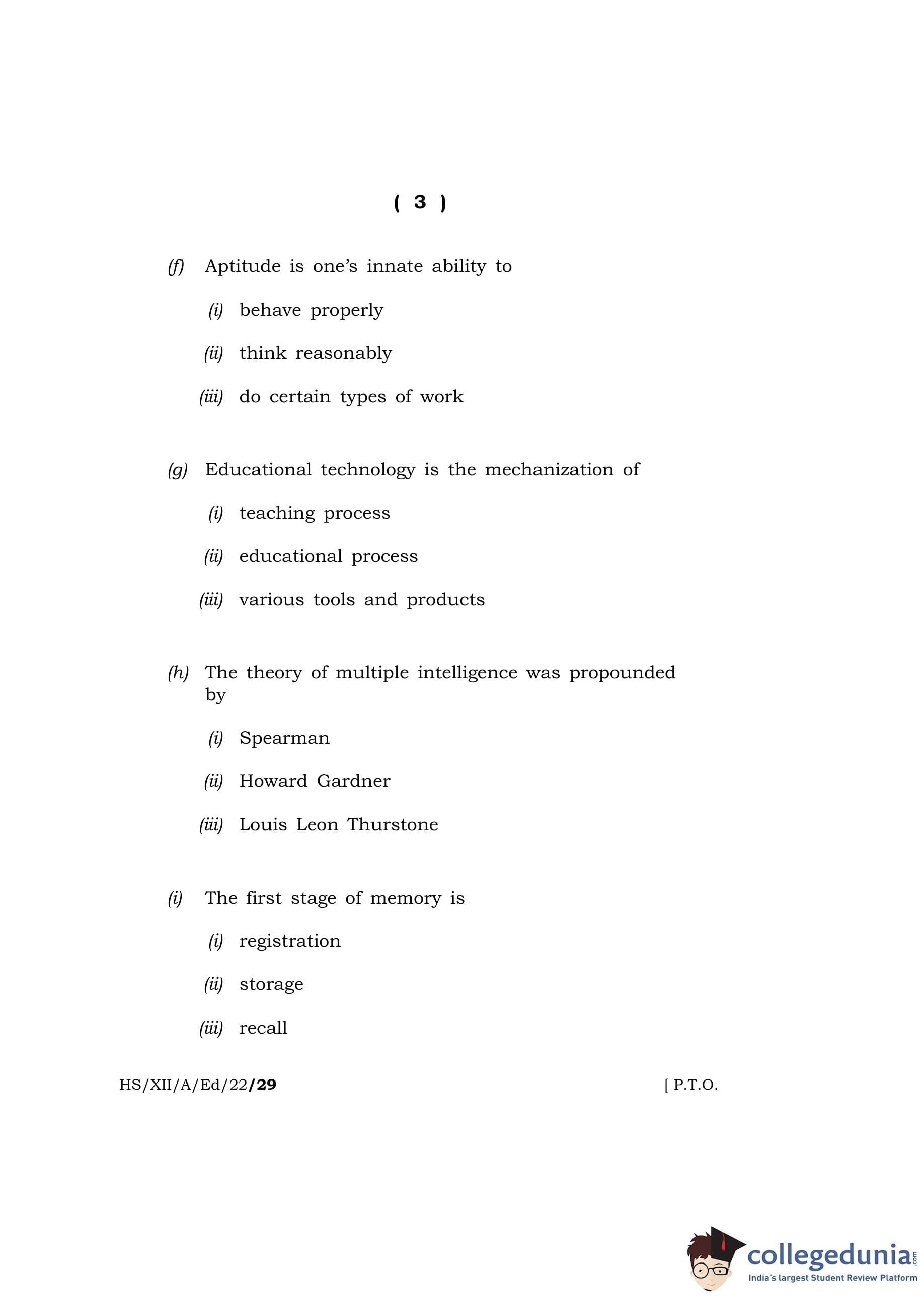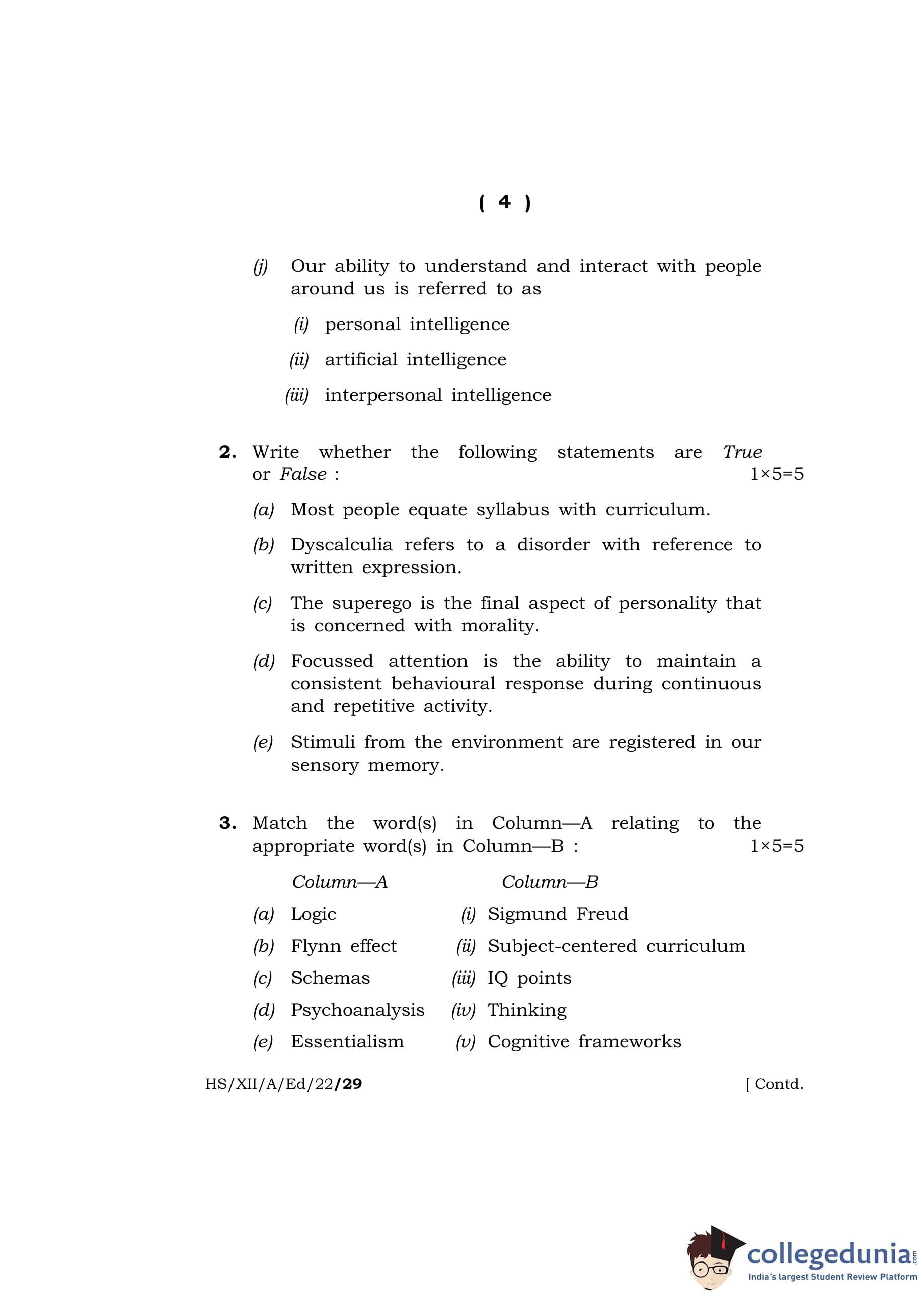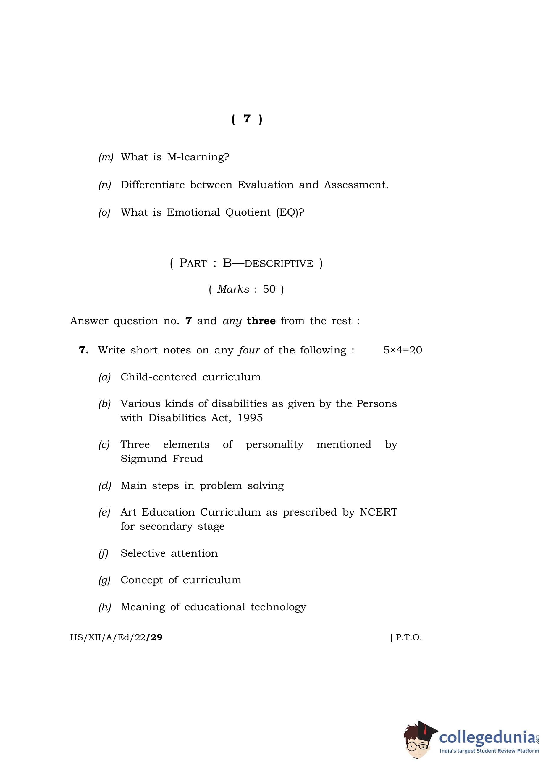 MBOSE Class 12 Education Question Paper 2022 with Answer Key pdf is available for download here. The exam was conducted by Meghalaya Board of School Education on April 12, 2022 in the Morning Session 10 AM to 1 PM. The question paper comprised a total of 15 questions divided among 2 sections.