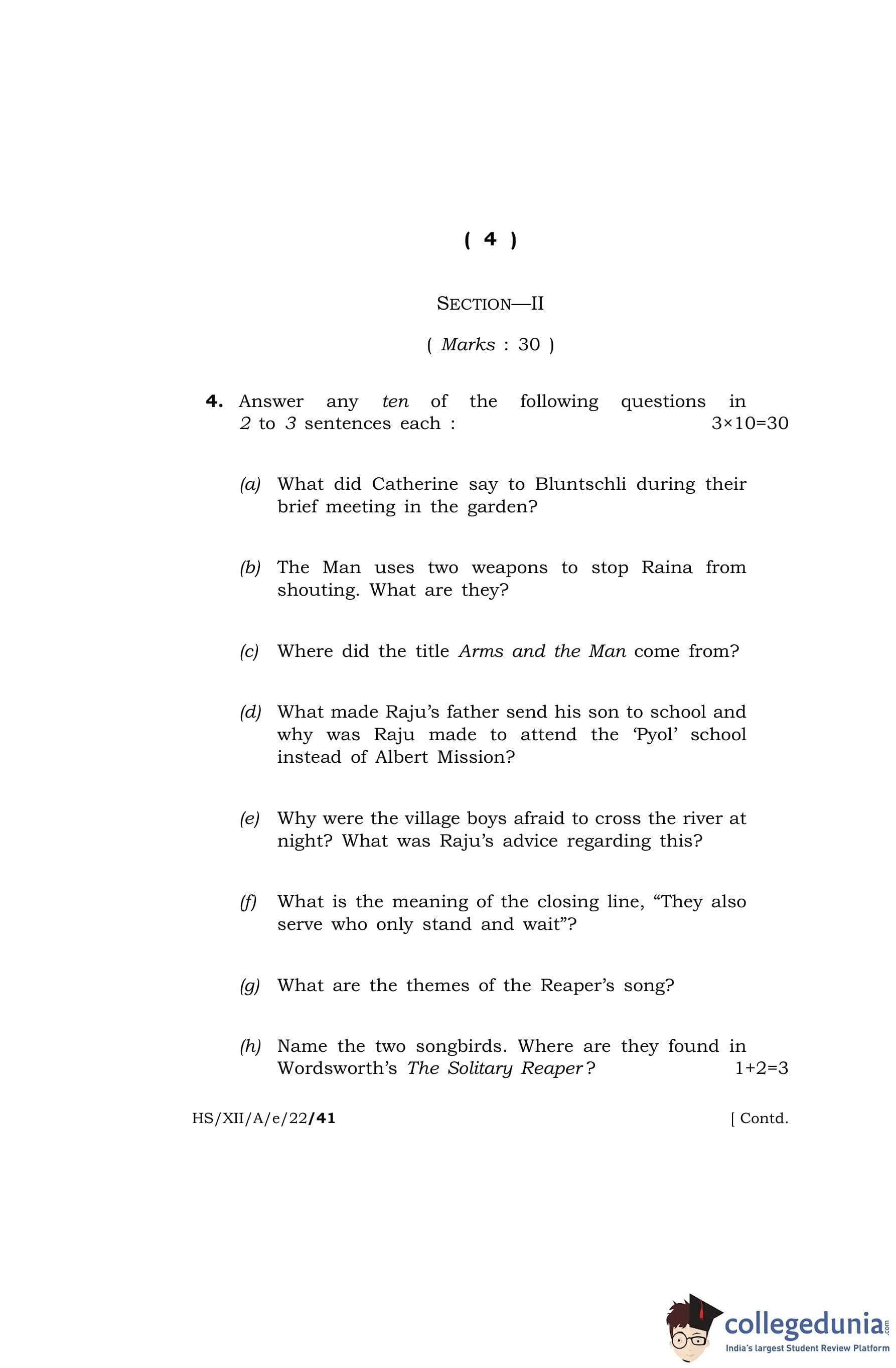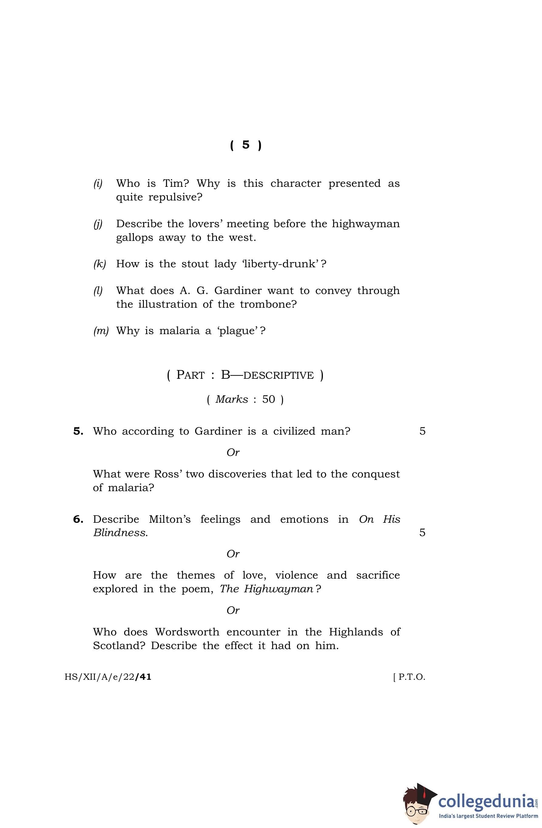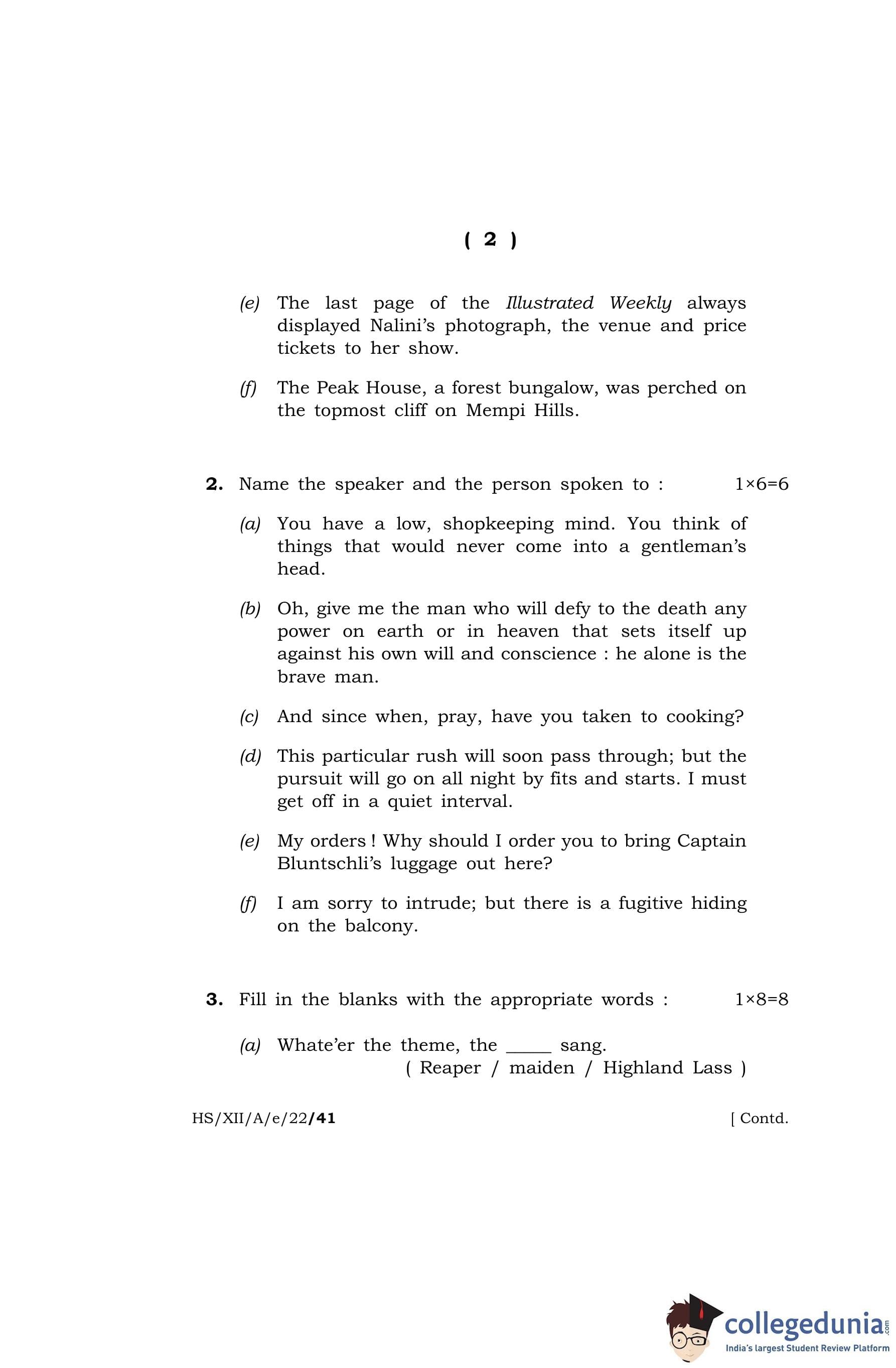 MBOSE Class 12 Elective English Question Paper 2022 with Answer Key pdf is available for download here. The exam was conducted by Meghalaya Board of School Education on March 31, 2022 in the Morning Session 10 AM to 1 PM. The question paper comprised a total of 10 questions divided among 2 sections.