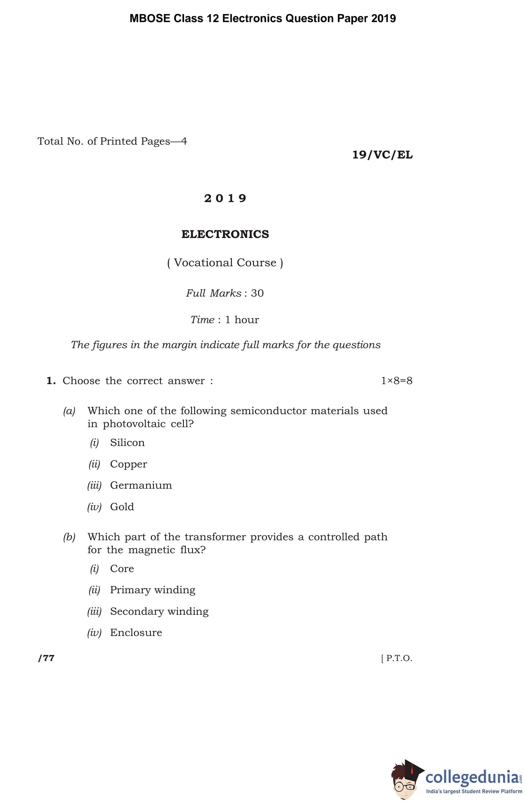 | MBOSE Class 12 Electronics Question Paper 2019 PDF | MBOSE Class 12 Electronics Answer Key 2019 PDF |