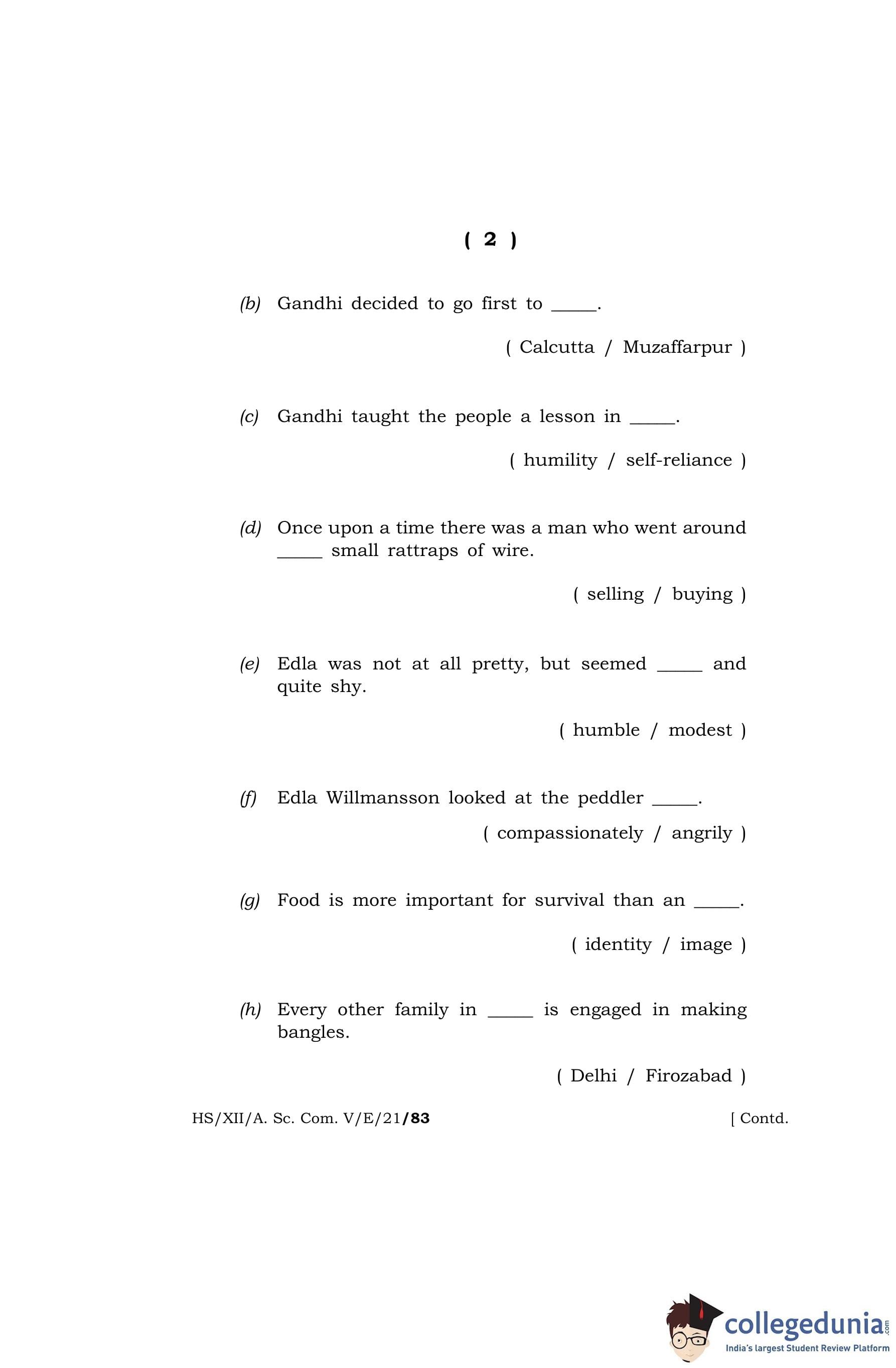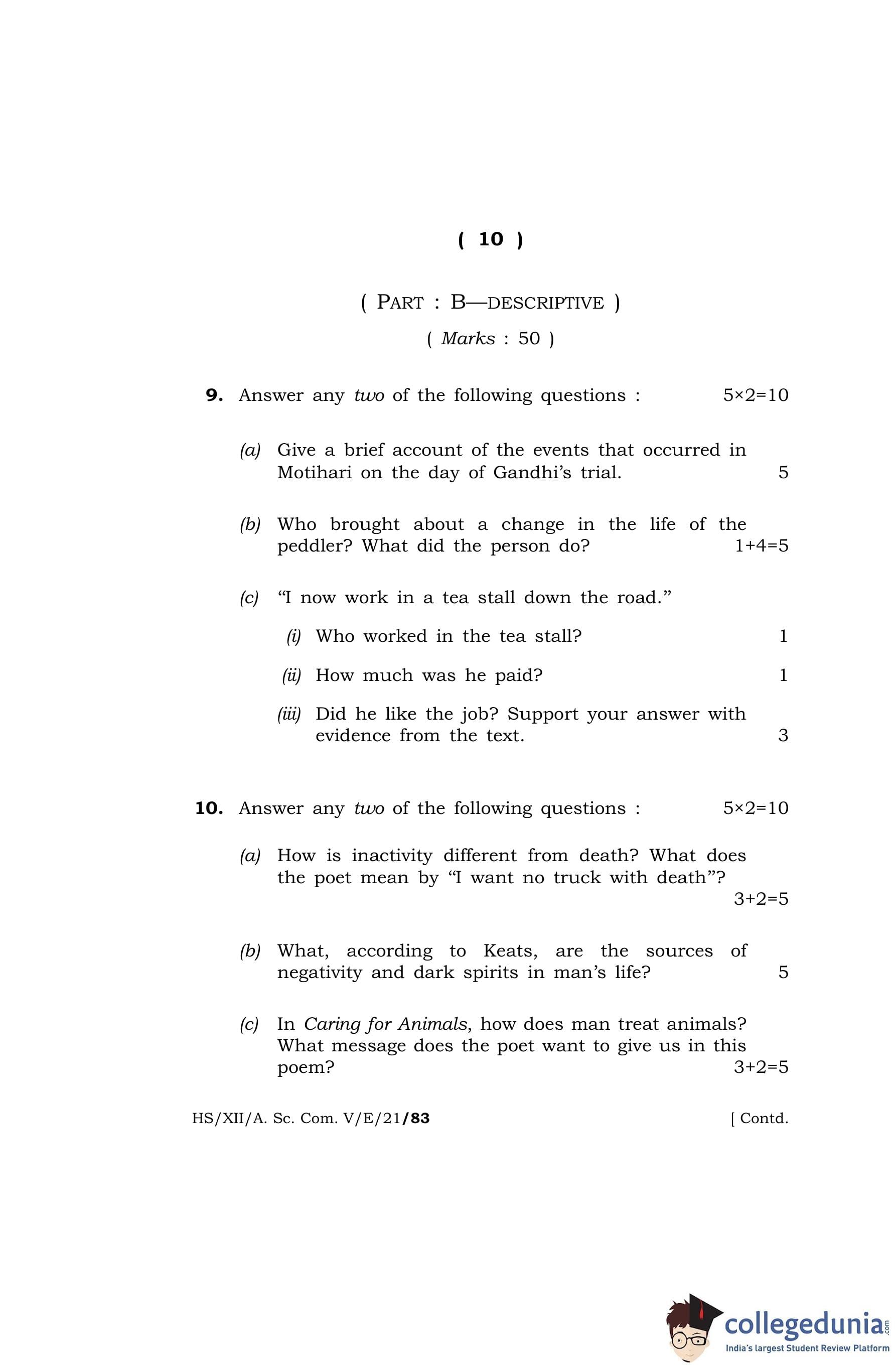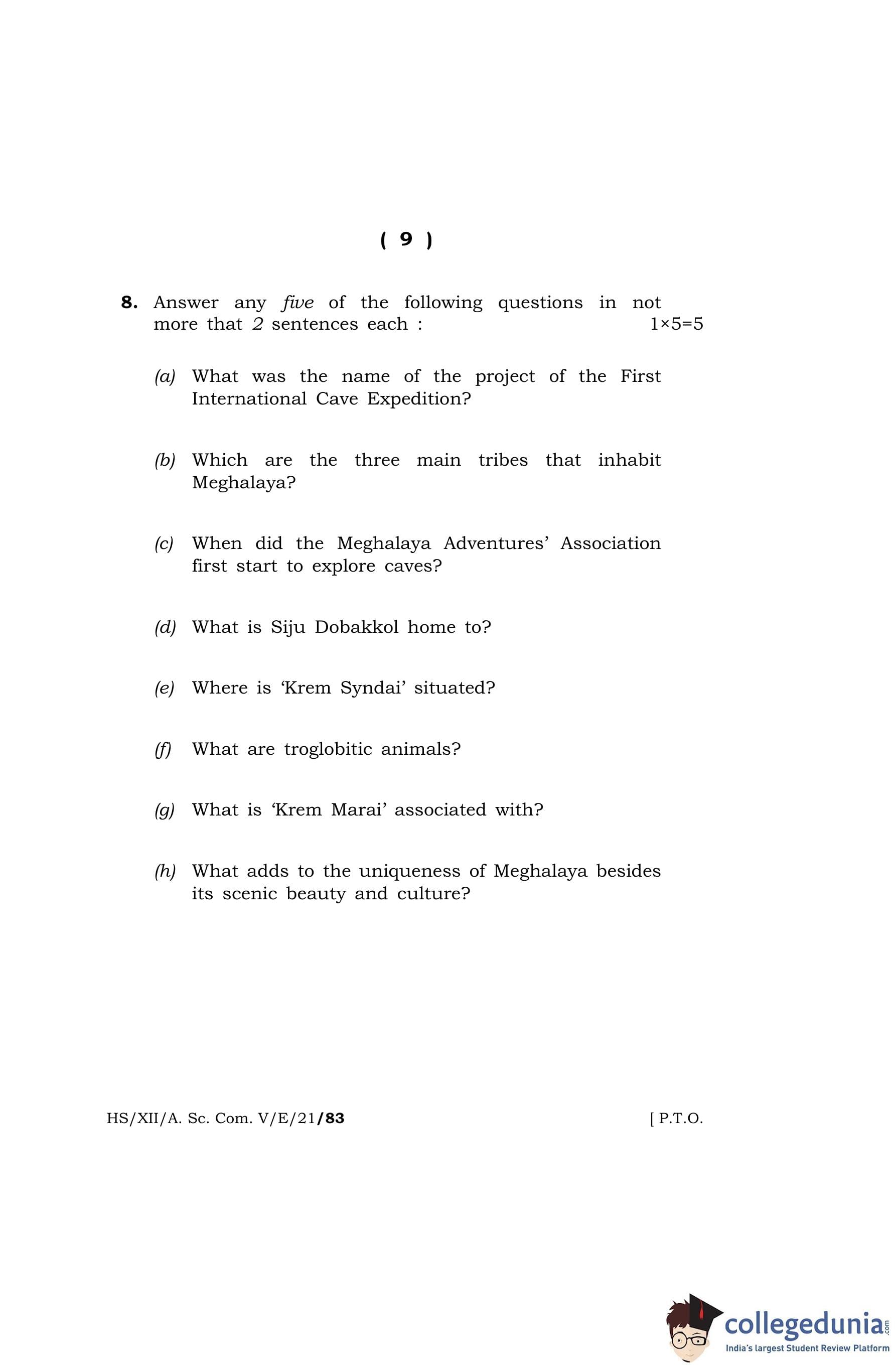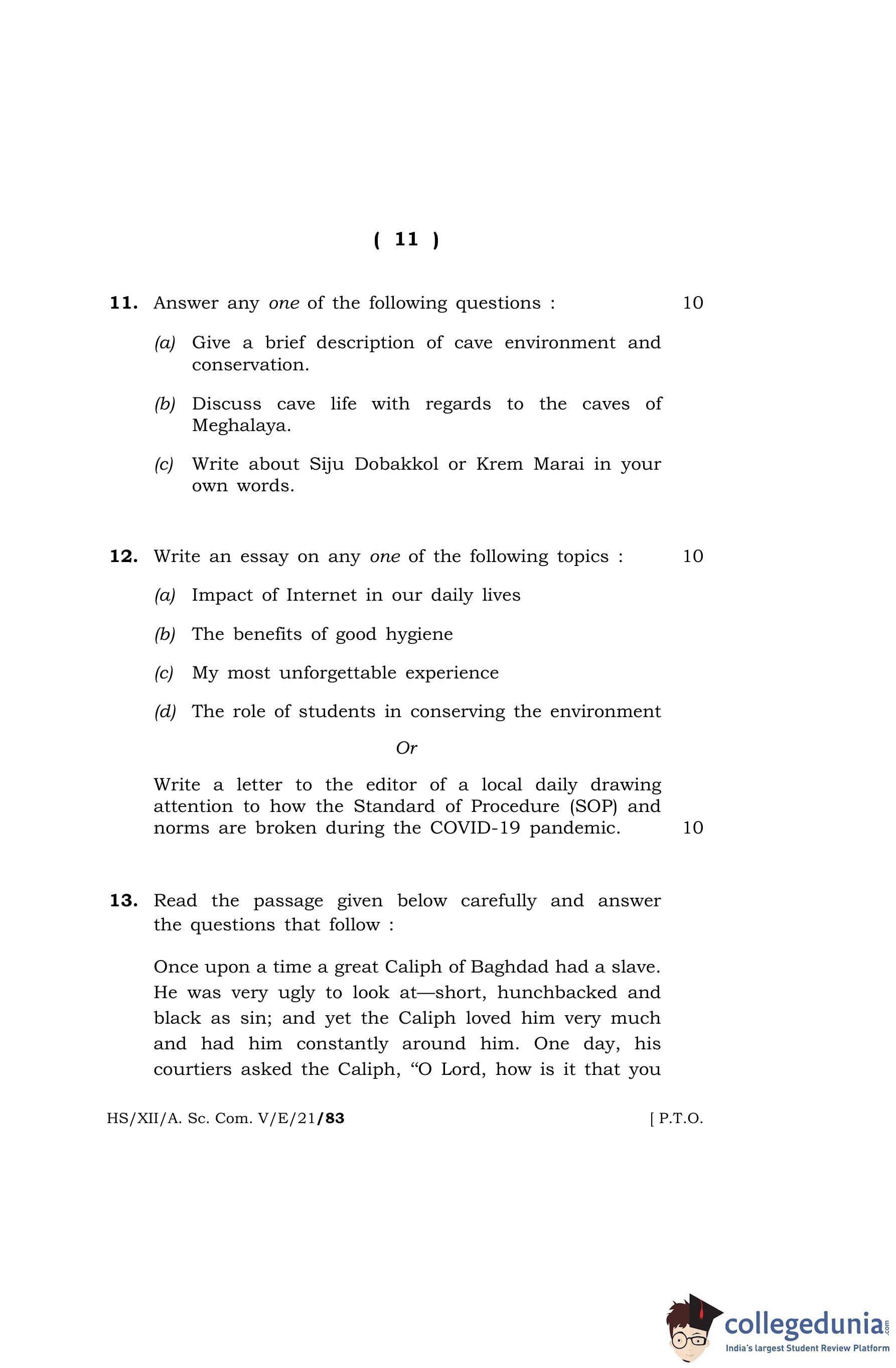 MBOSE Class 12 English Question Paper 2021 with Answer Key