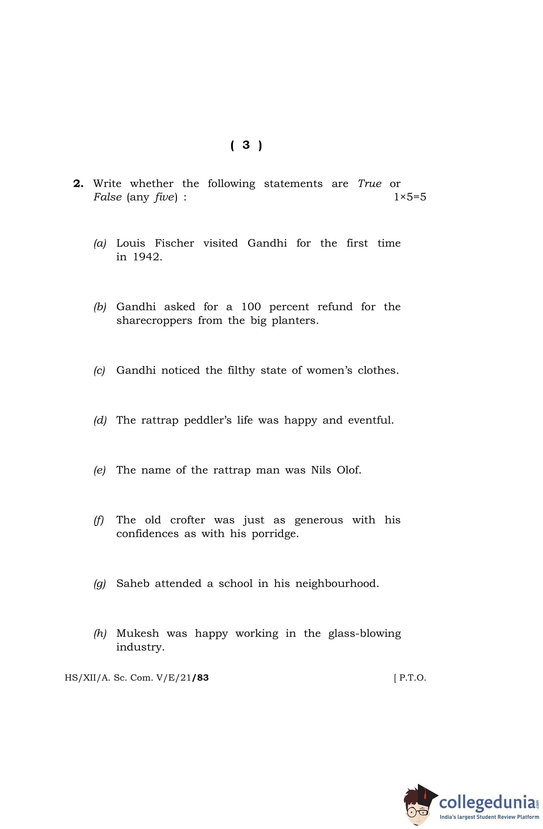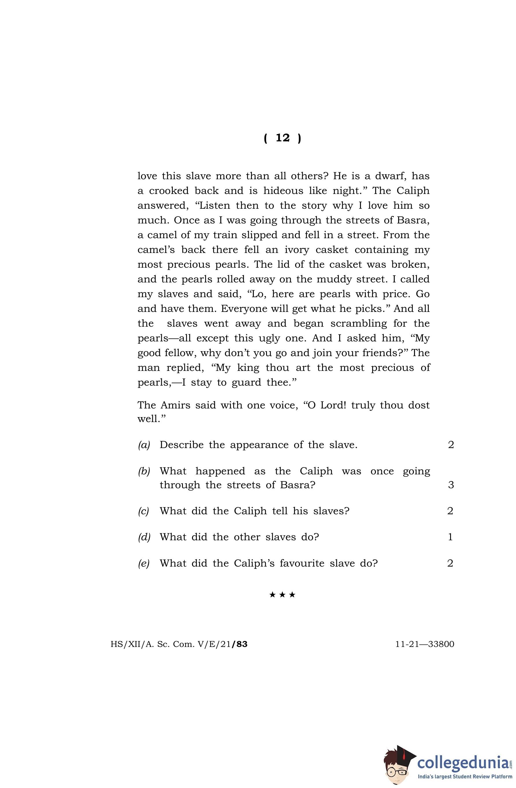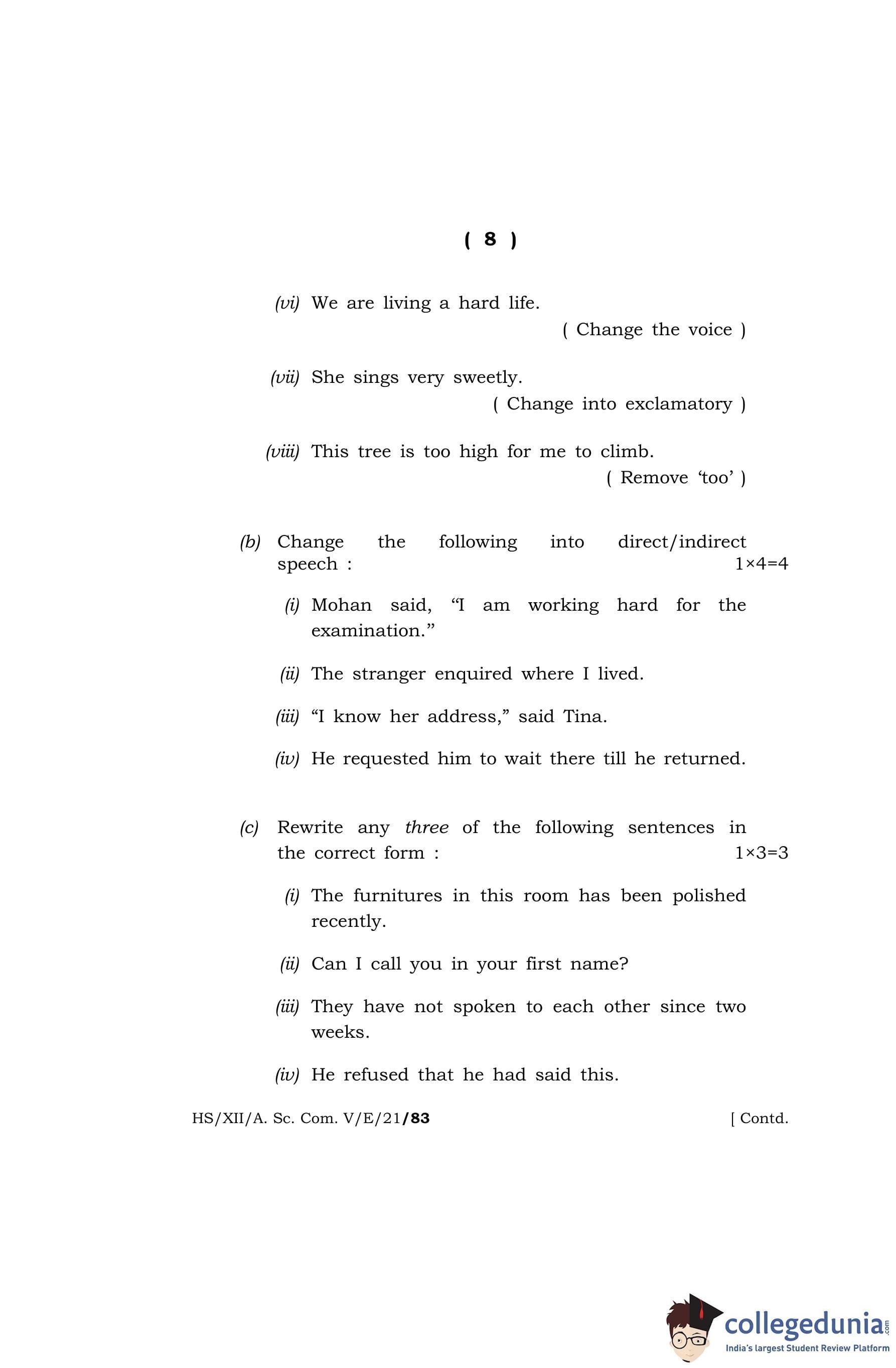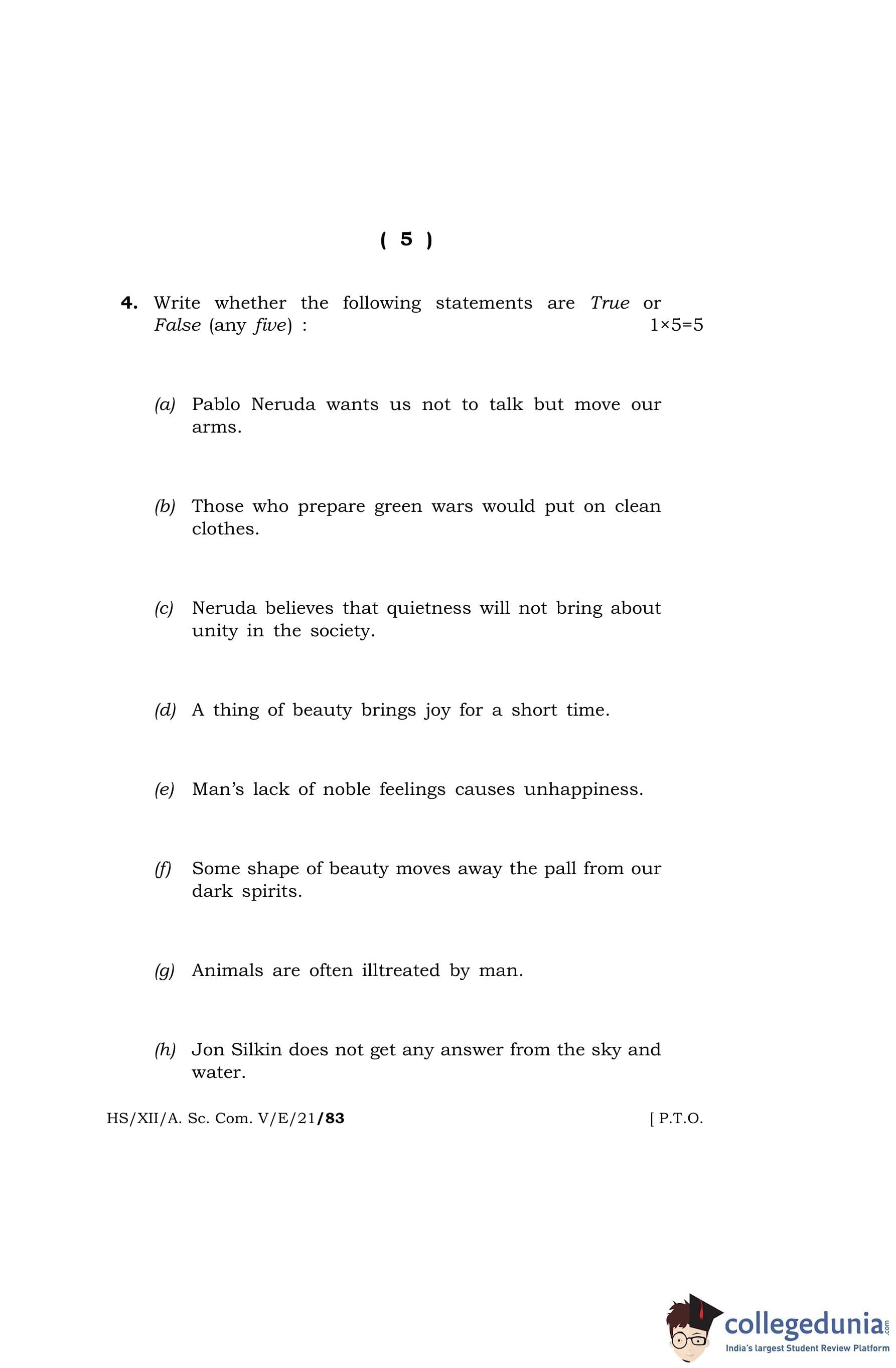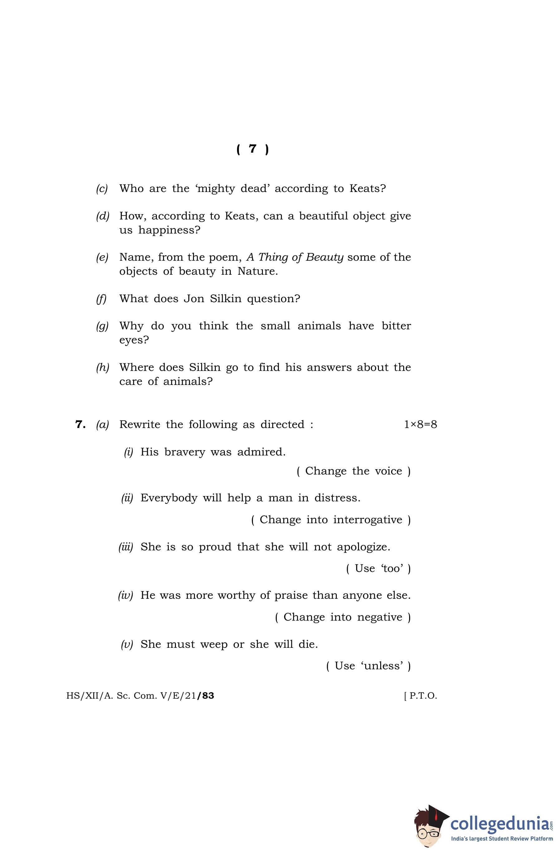 MBOSE Class 12 English Question Paper 2021 with Answer Key