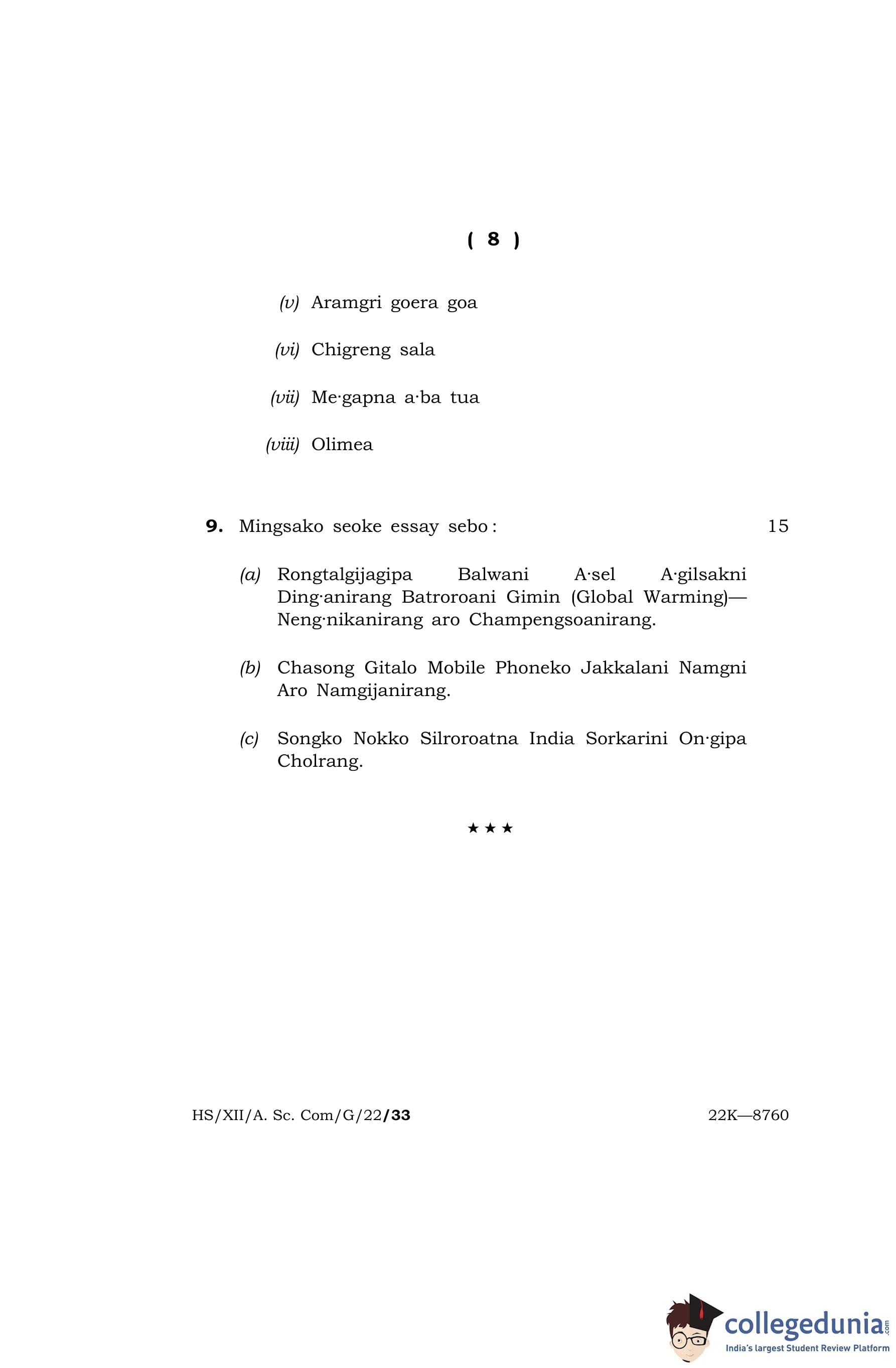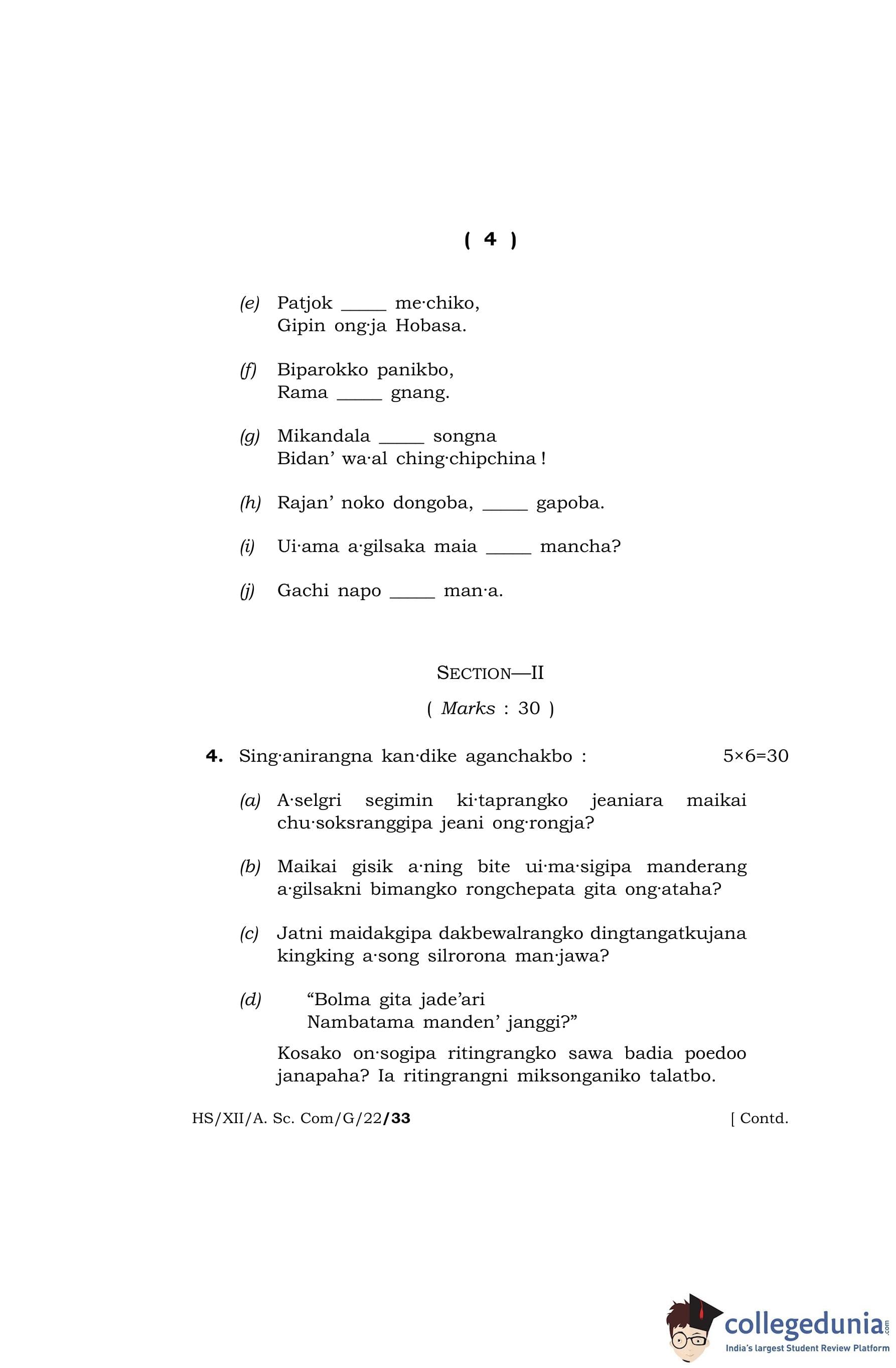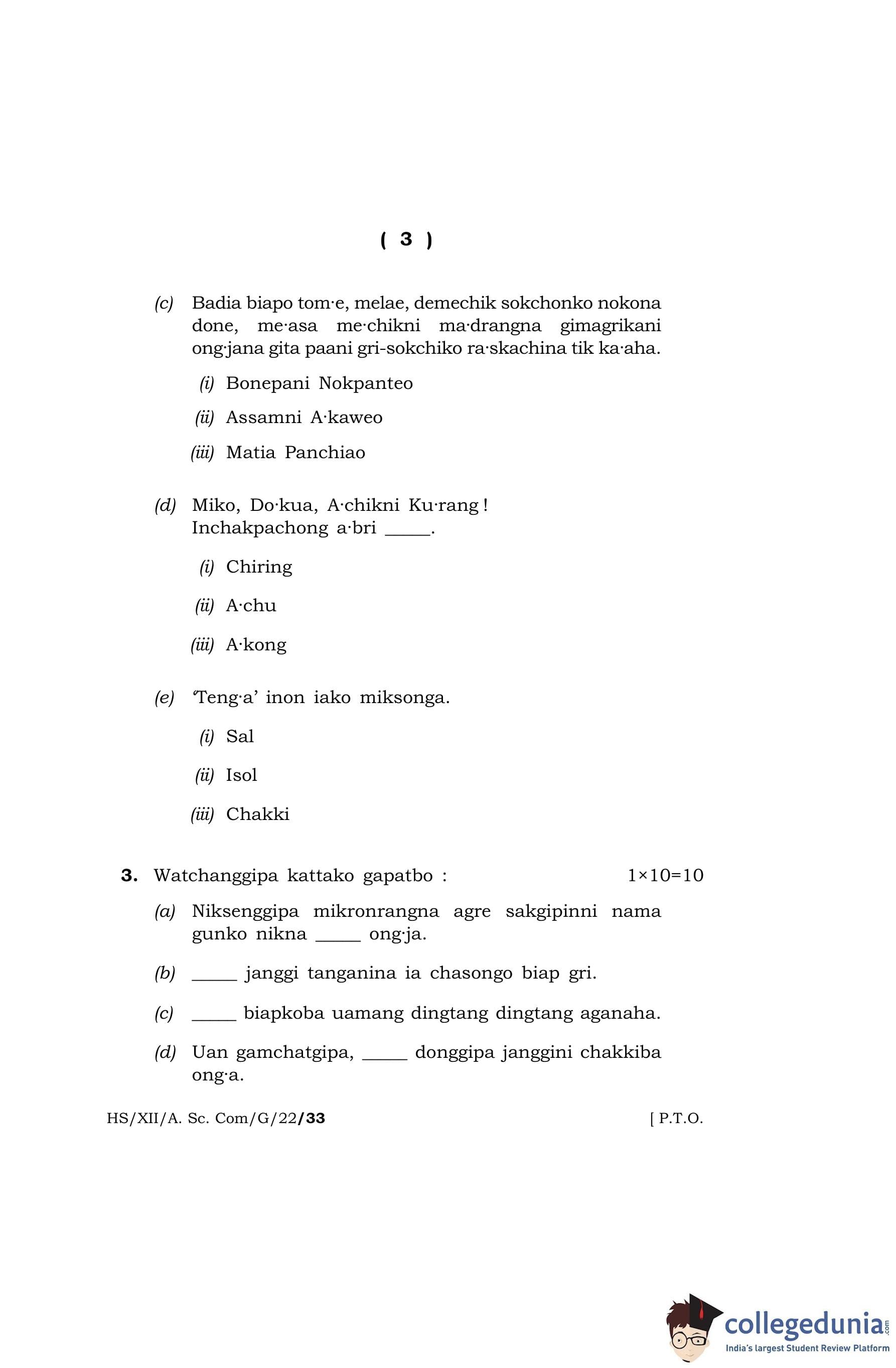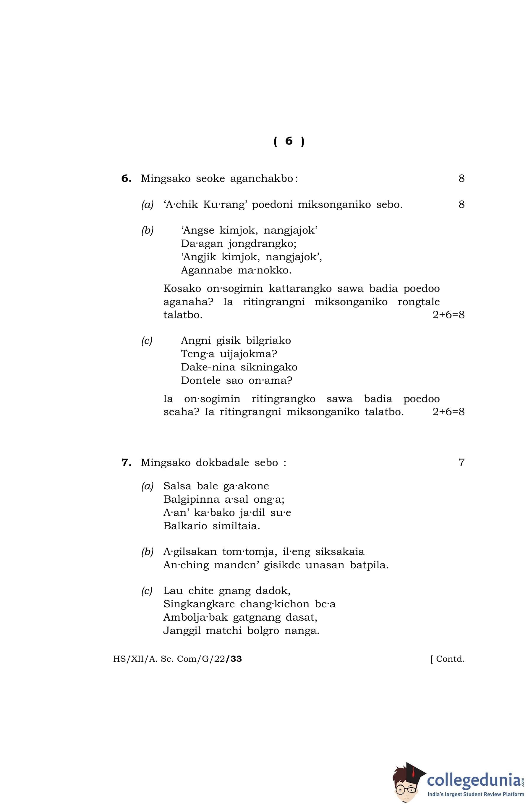 MBOSE Class 12 Garo Question Paper 2022 with Answer Key pdf is available for download here. The exam was conducted by Meghalaya Board of School Education on March 29, 2022 in the Morning Session 10 AM to 1 PM. The question paper comprised a total of 9 questions divided among 2 sections.