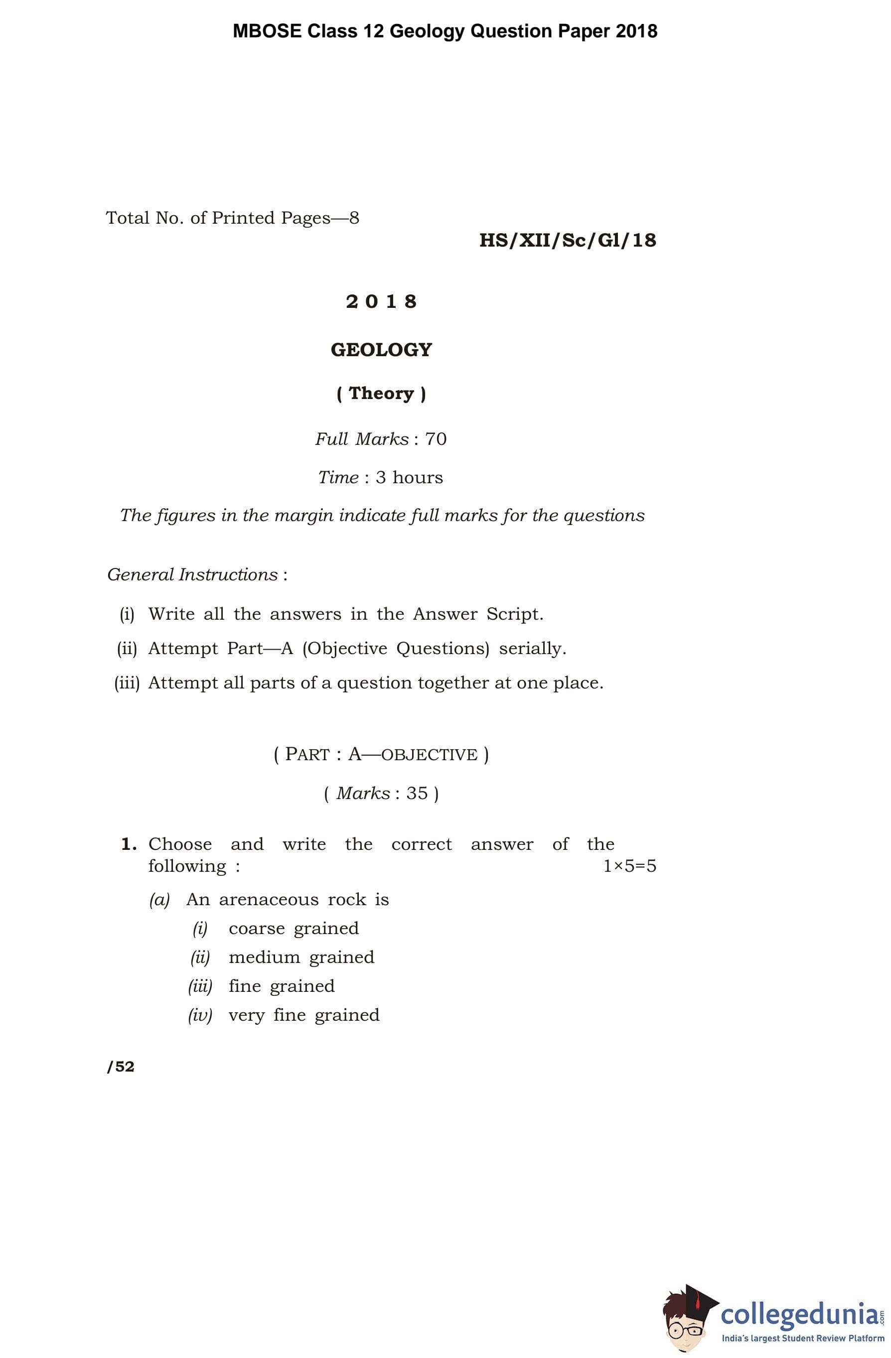 | MBOSE Class 12 Geology Question Paper 2018 PDF | MBOSE Class 12 Geology Answer Key 2018 PDF |