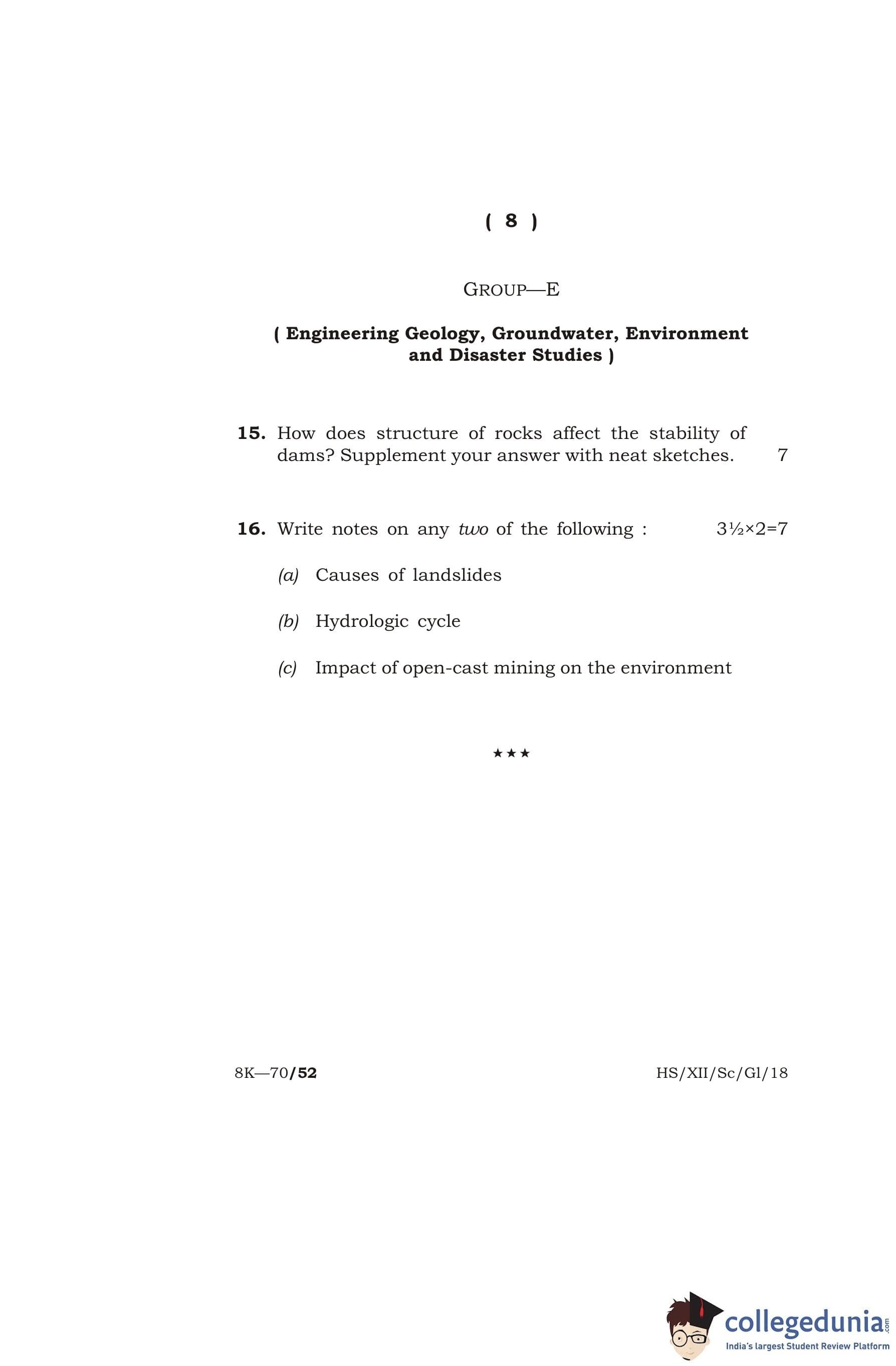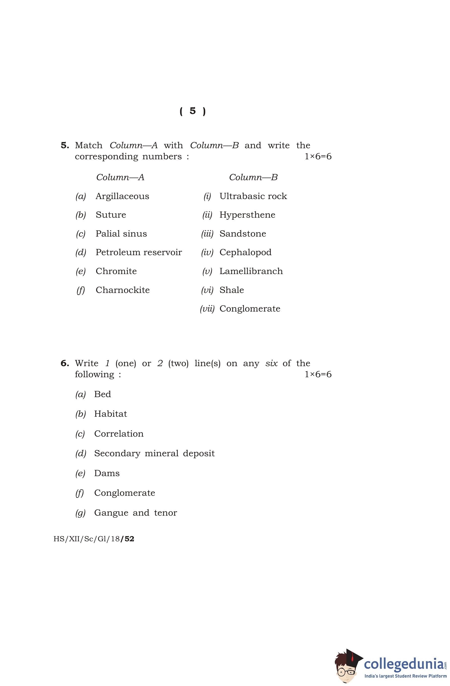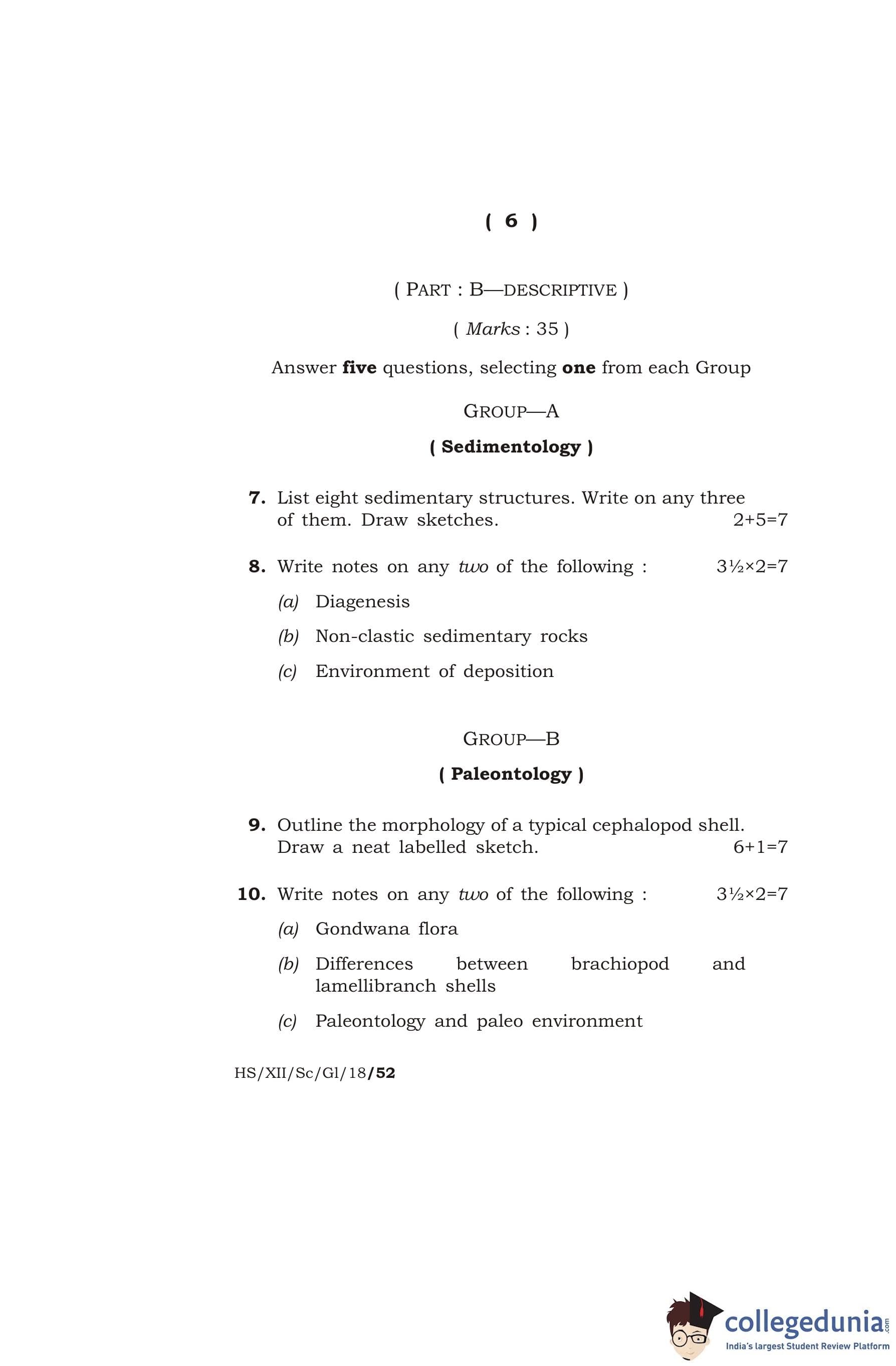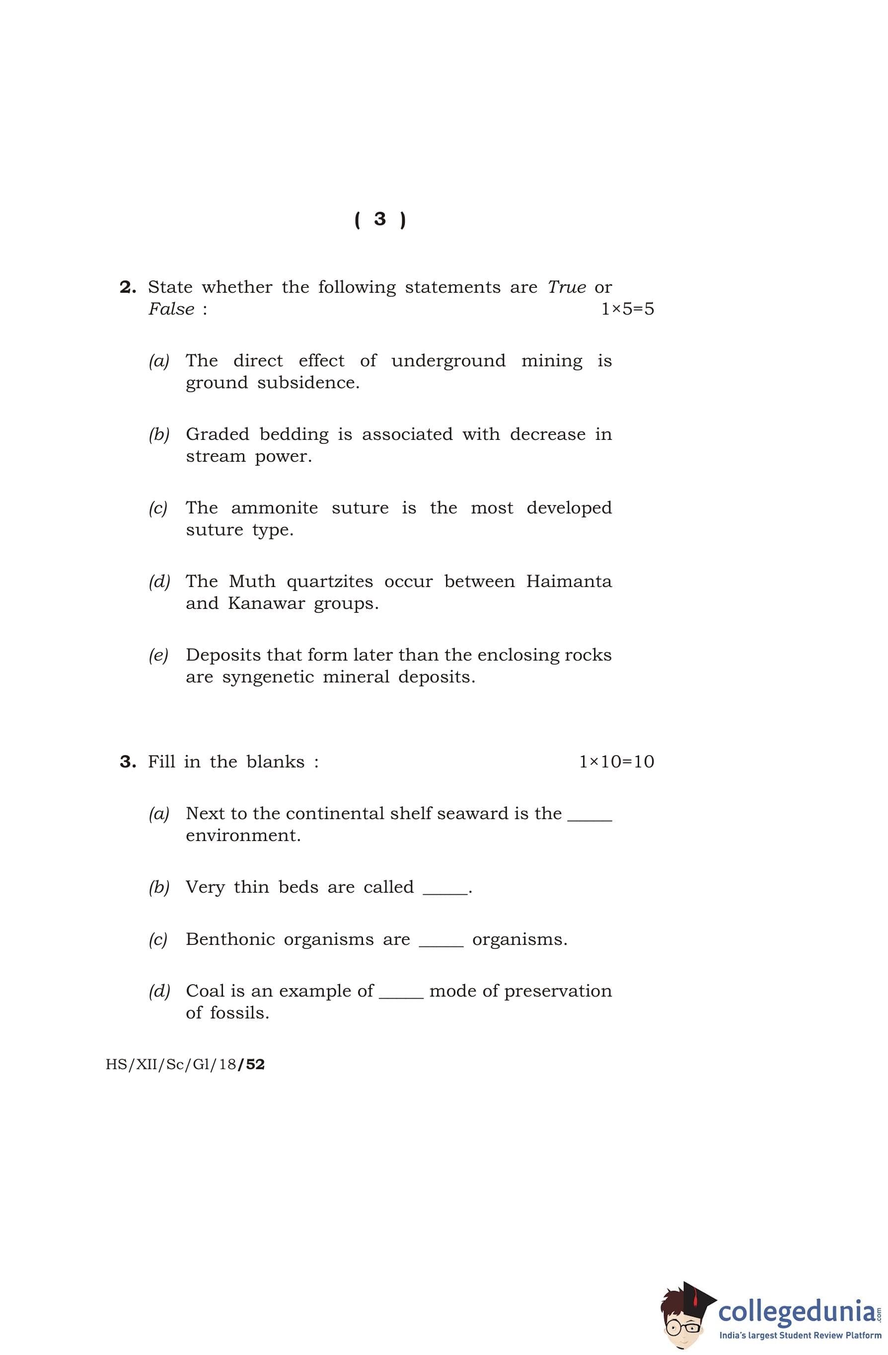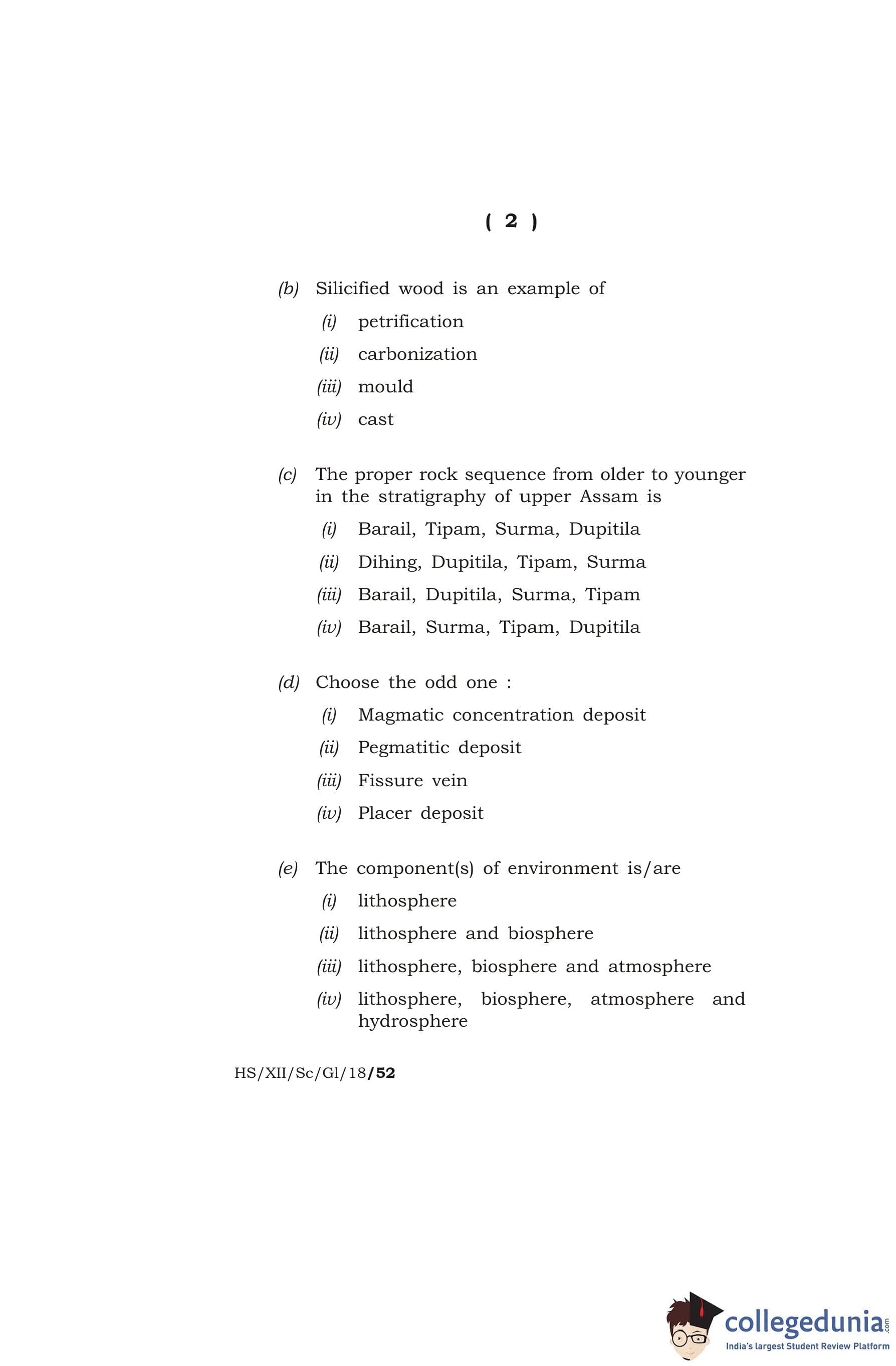 MBOSE Class 12 Geology Question Paper 2018 with Answer Key pdf is available for download here. The exam was conducted by Meghalaya Board of School Education on March 9, 2018 in the Morning Session 10 AM to 1 PM. The question paper comprised a total of 16 questions divided among 2 sections.