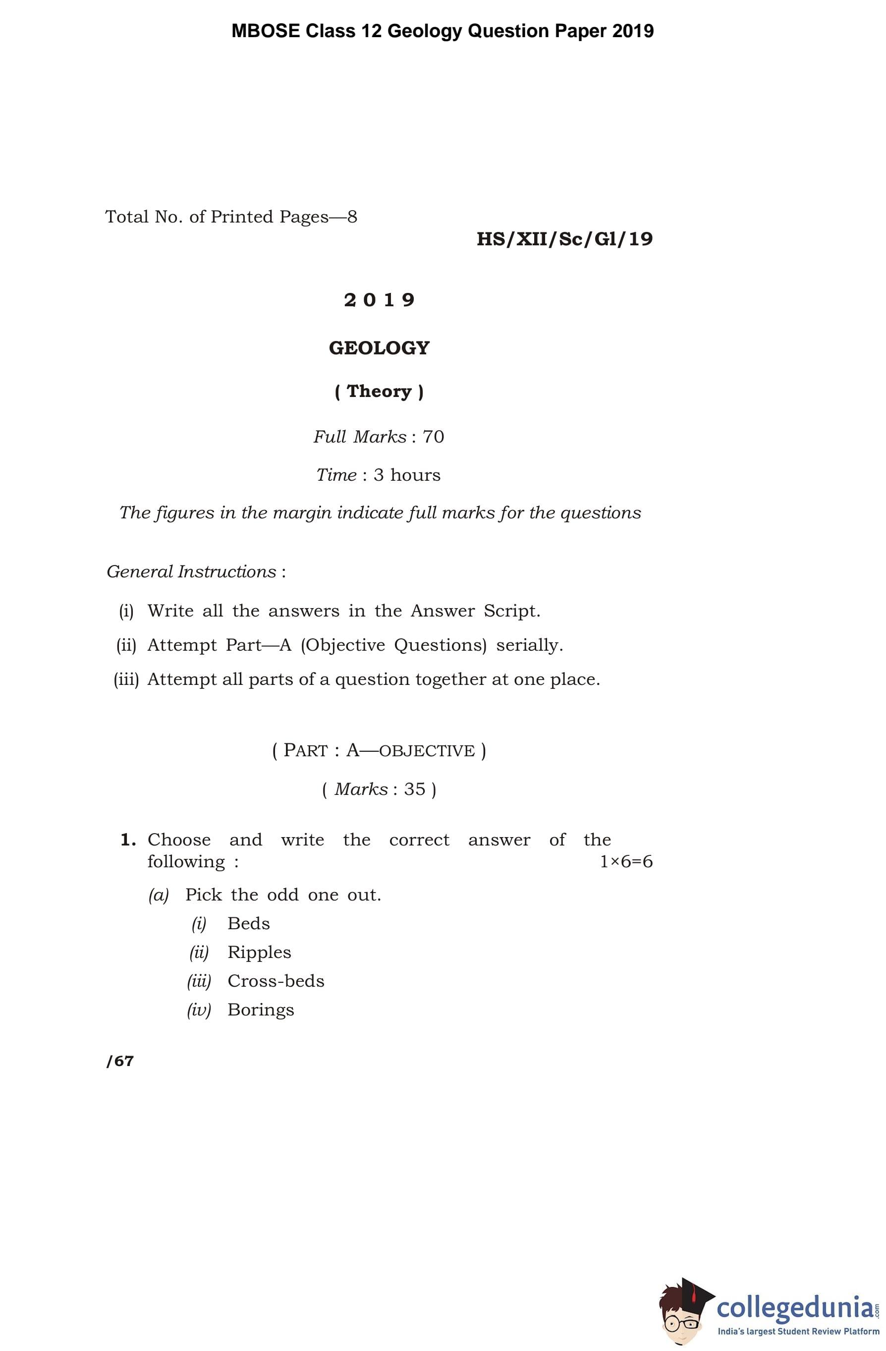 | MBOSE Class 12 Geology Question Paper 2019 PDF | MBOSE Class 12 Geology Answer Key 2019 PDF |