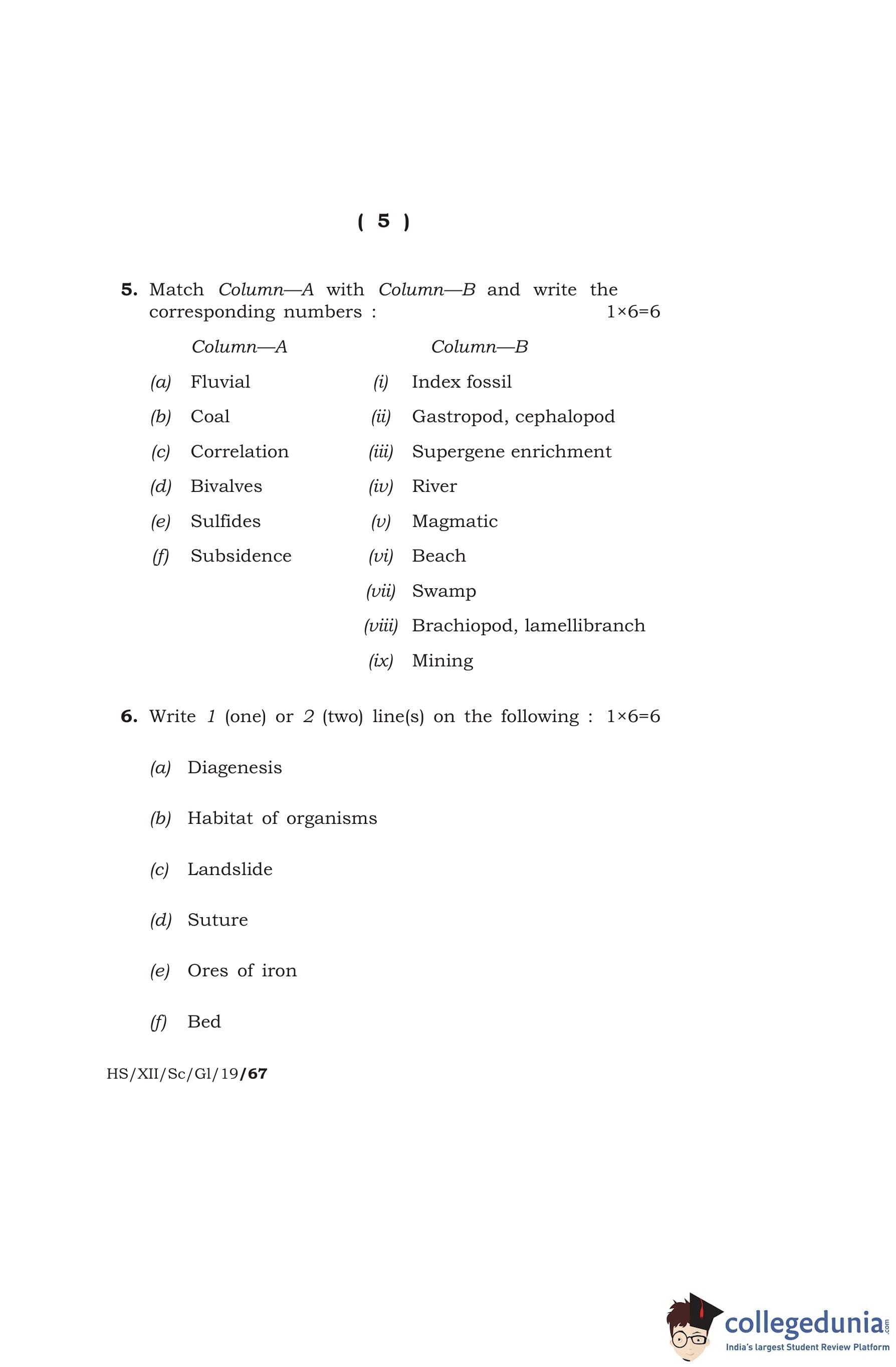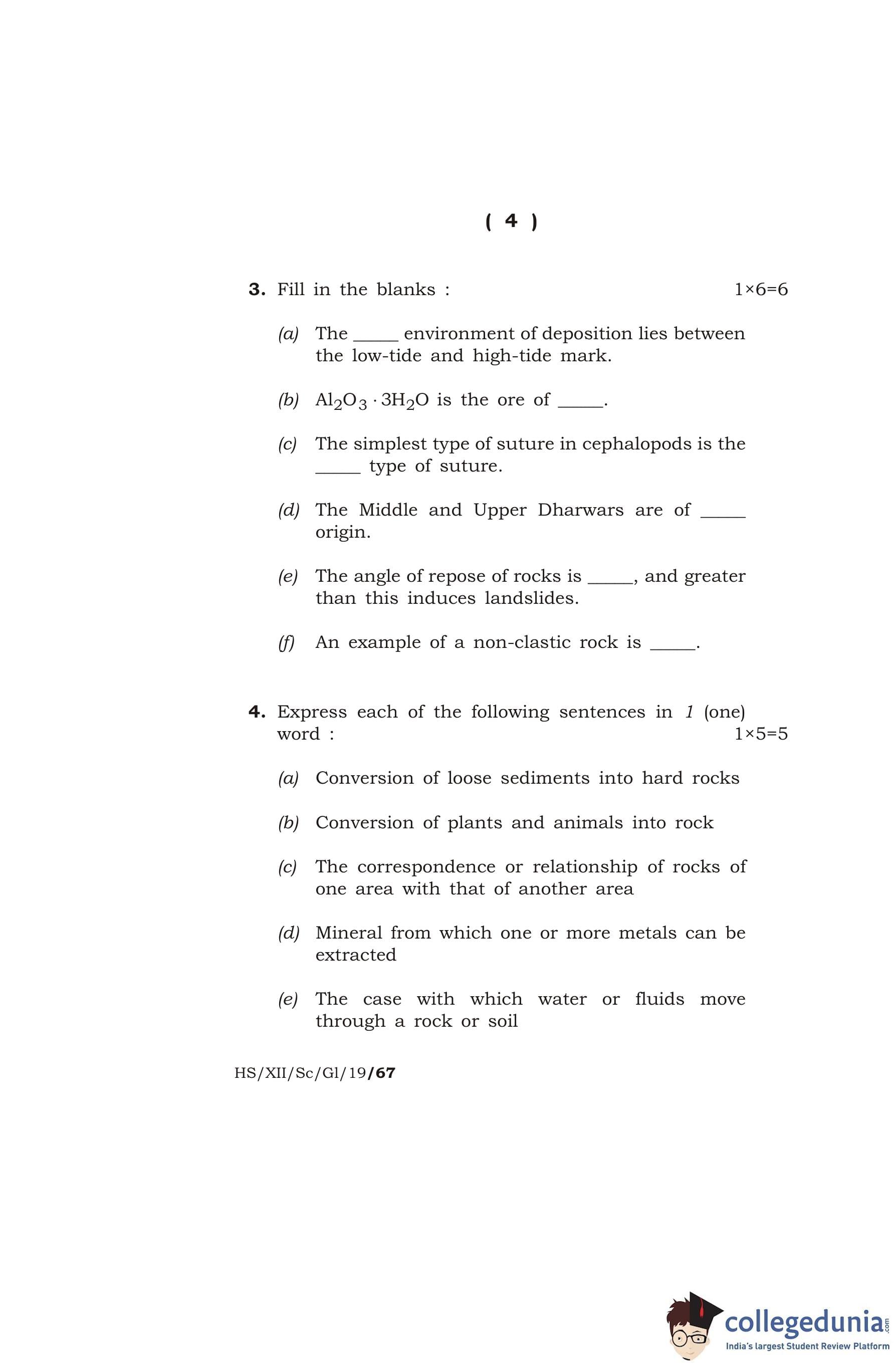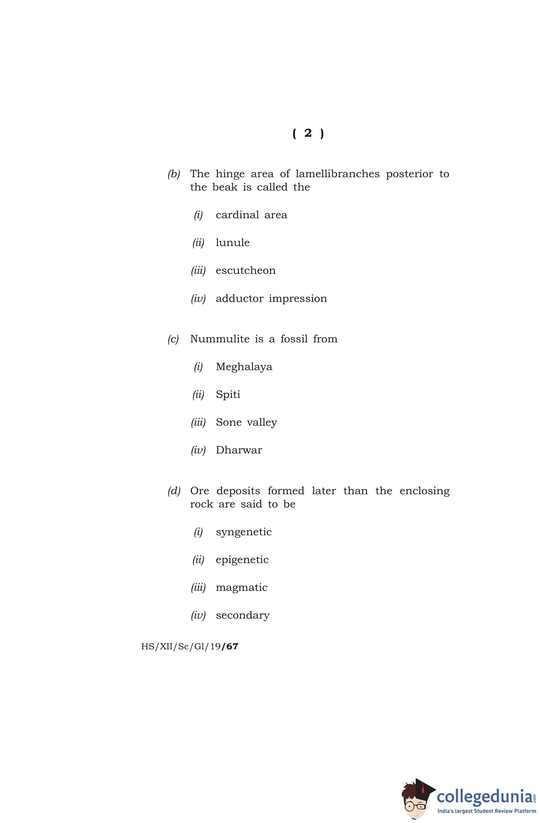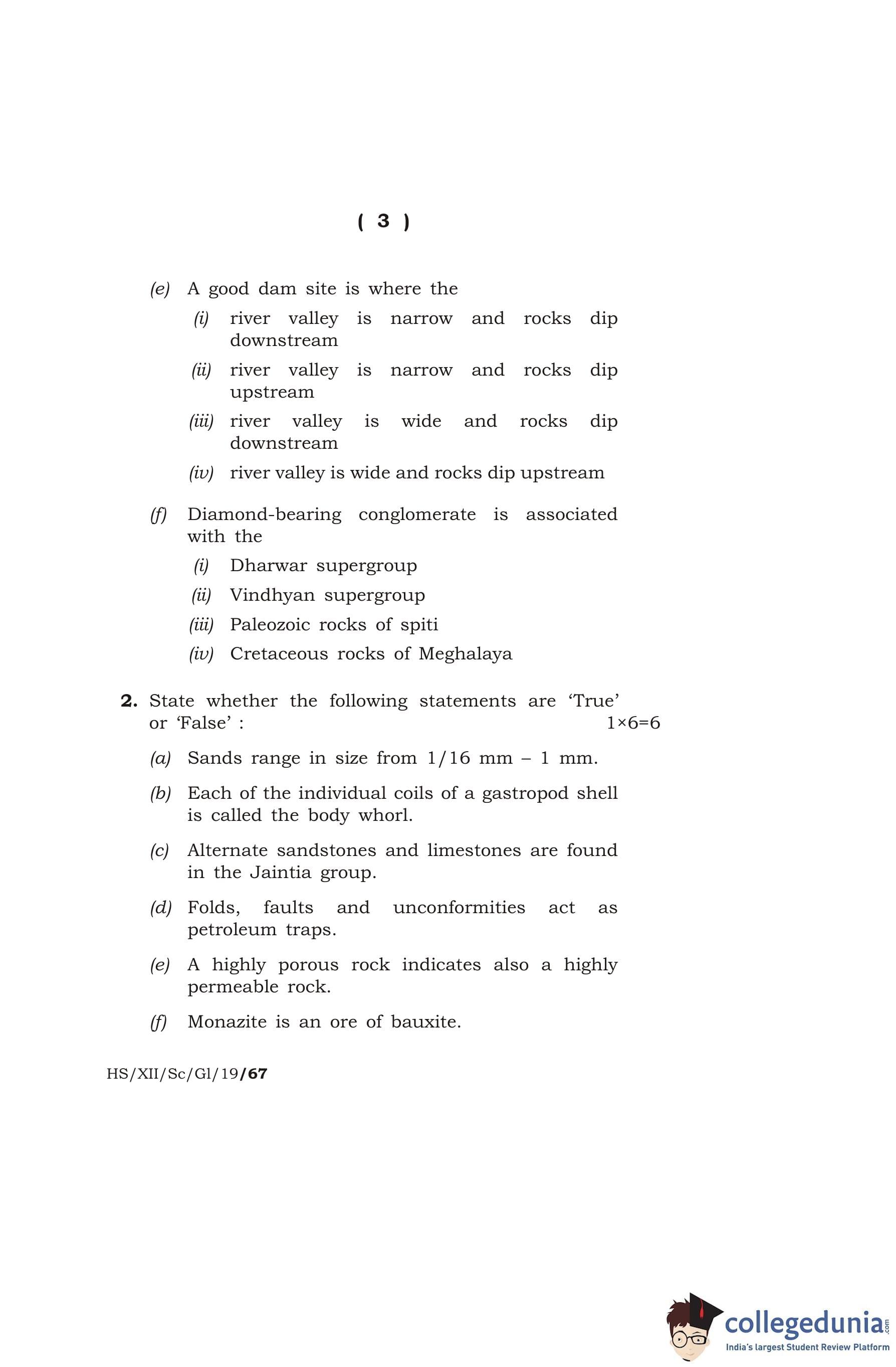 MBOSE Class 12 Geology Question Paper 2019 with Answer Key pdf is available for download here. The exam was conducted by Meghalaya Board of School Education on March 12, 2019 in the Morning Session 10 AM to 1 PM. The question paper comprised a total of 16 questions divided among 2 sections.