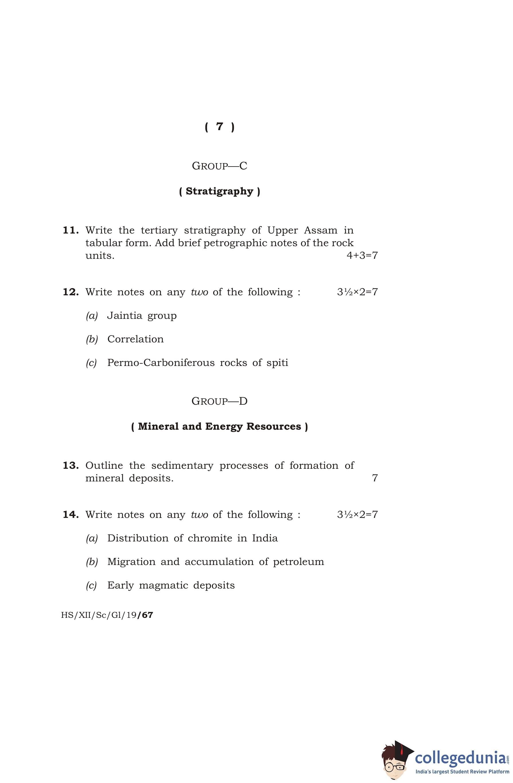 MBOSE Class 12 Geology Question Paper 2019
