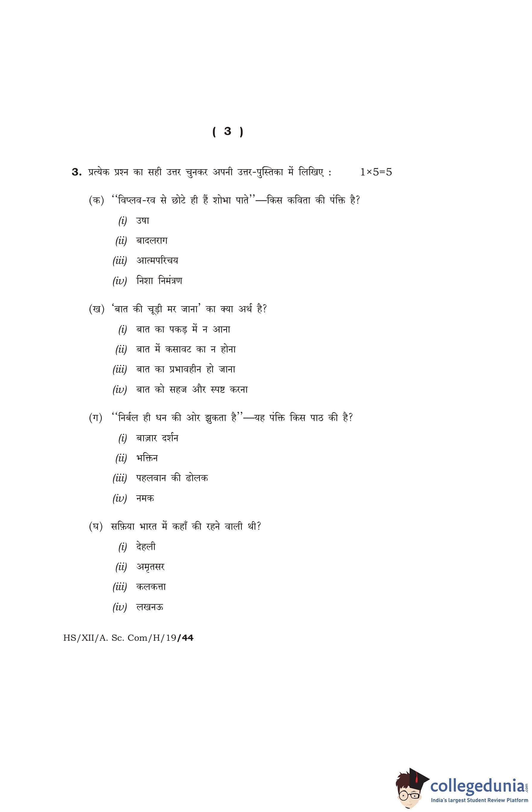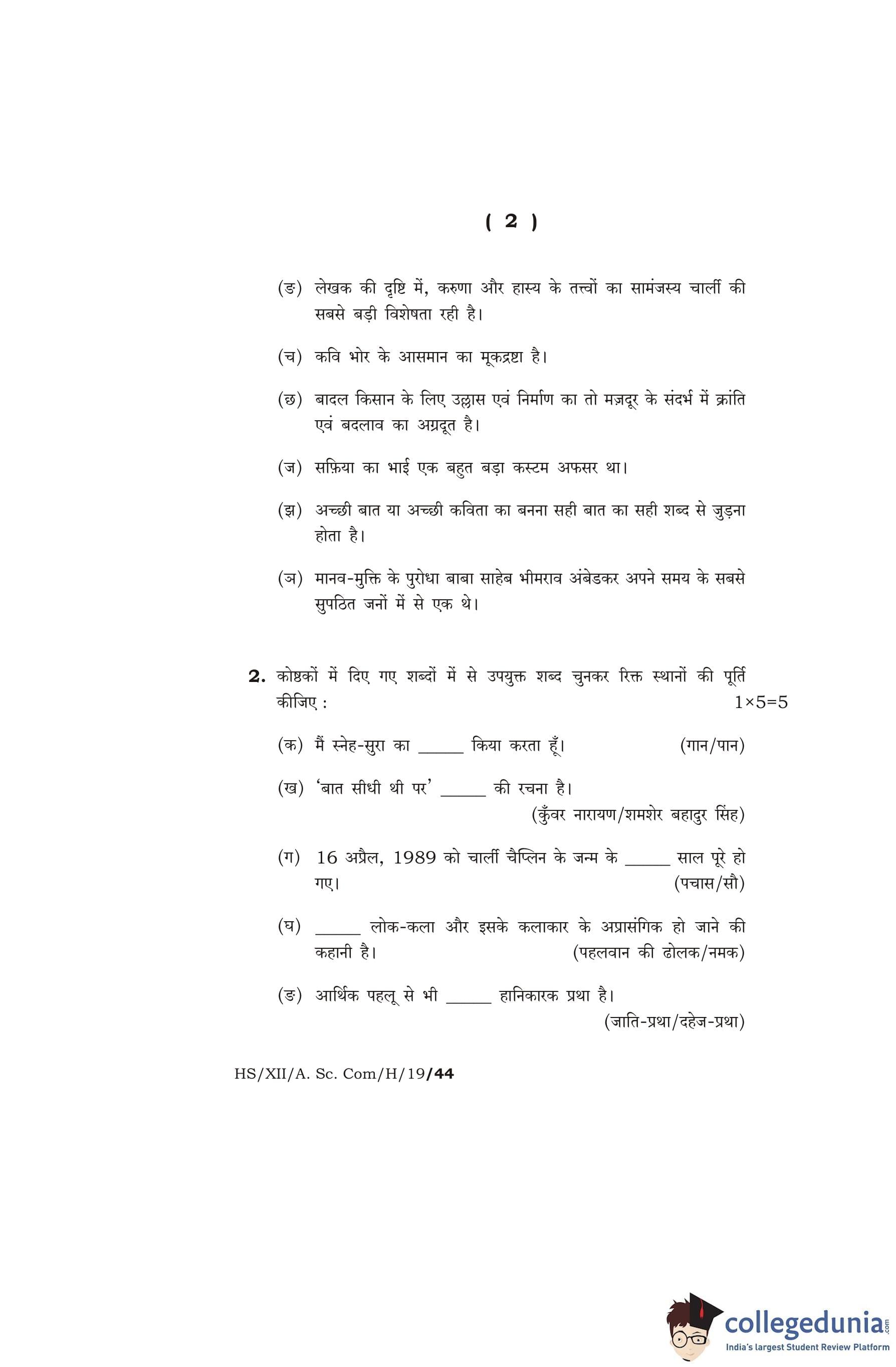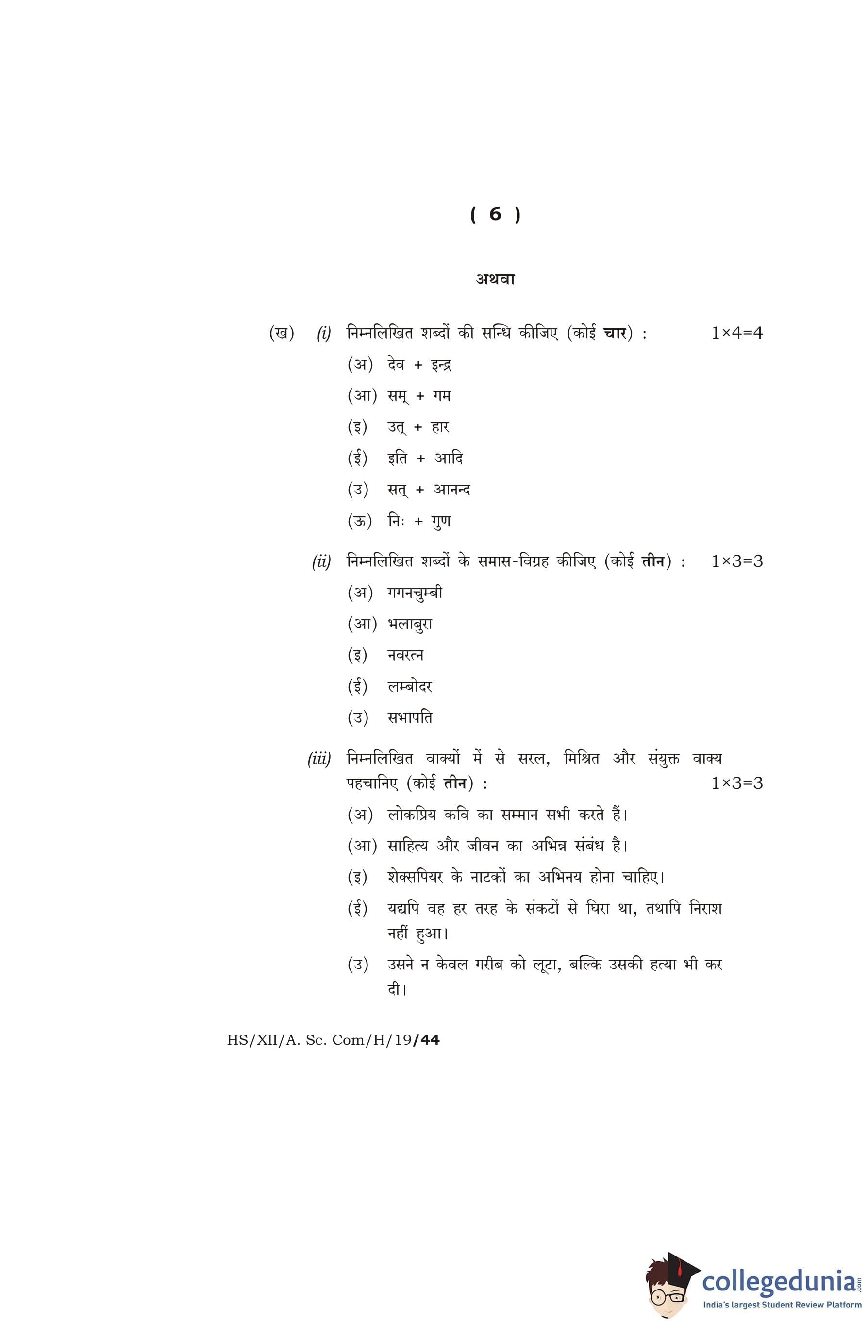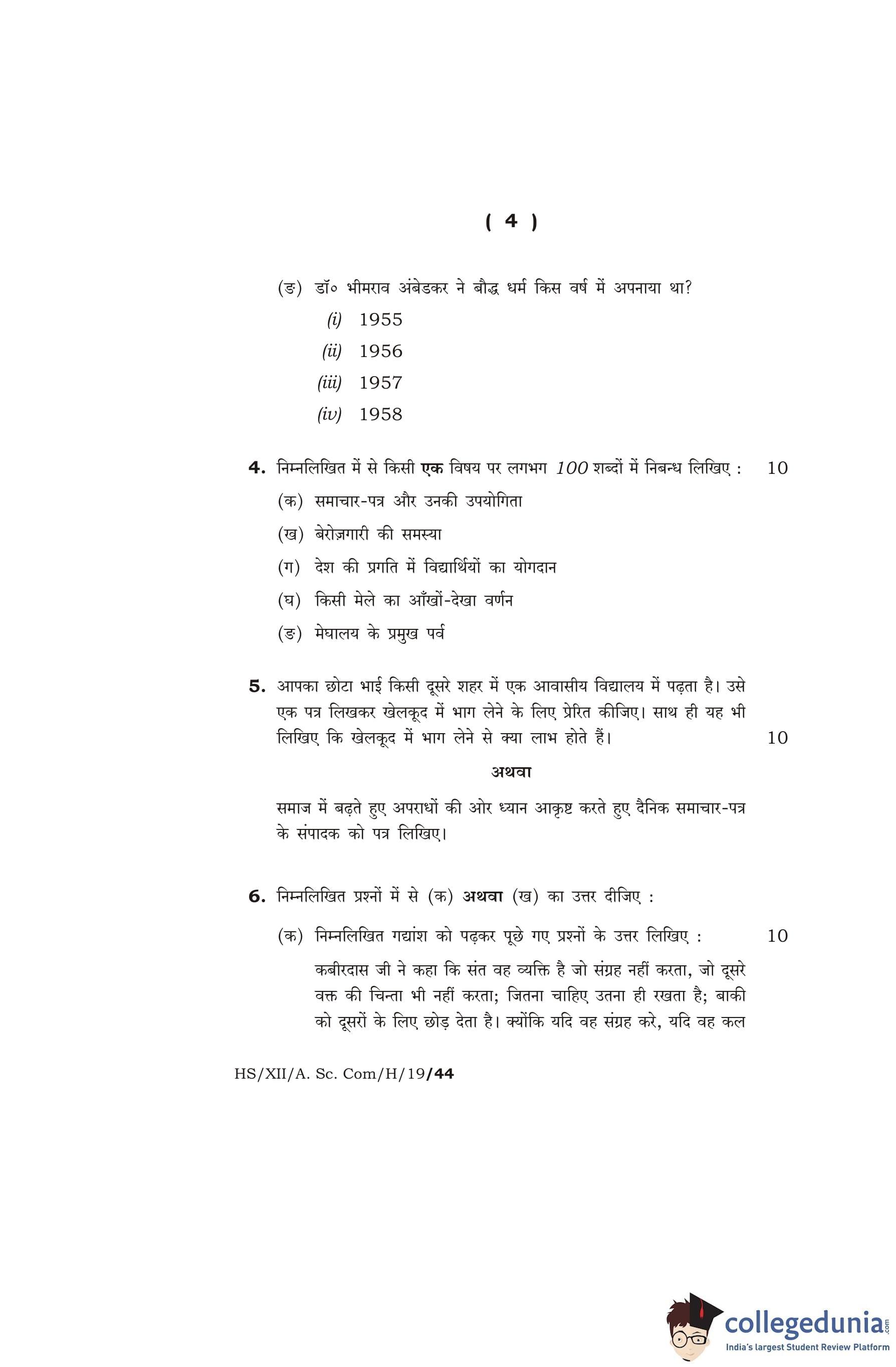 MBOSE Class 12 Hindi Question Paper 2019 with Answer Key pdf is available for download here. The exam was conducted by Meghalaya Board of School Education on March 6, 2019 in the Morning Session 10 AM to 1 PM. The question paper comprised a total of 10 questions divided among 2 sections.