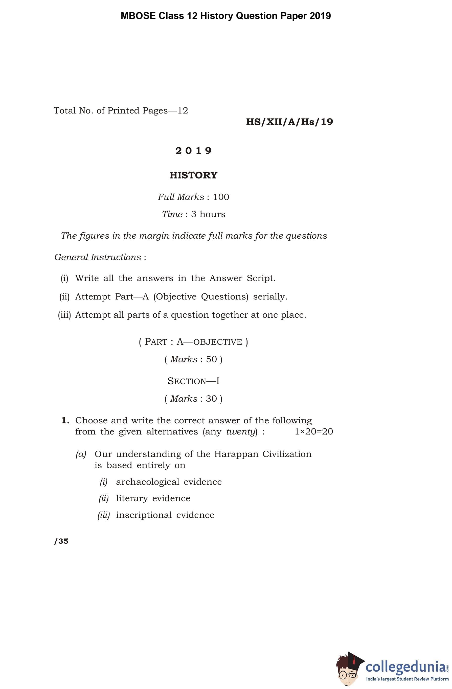 | MBOSE Class 12 History Question Paper 2019 PDF | MBOSE Class 12 History Answer Key 2019 PDF |