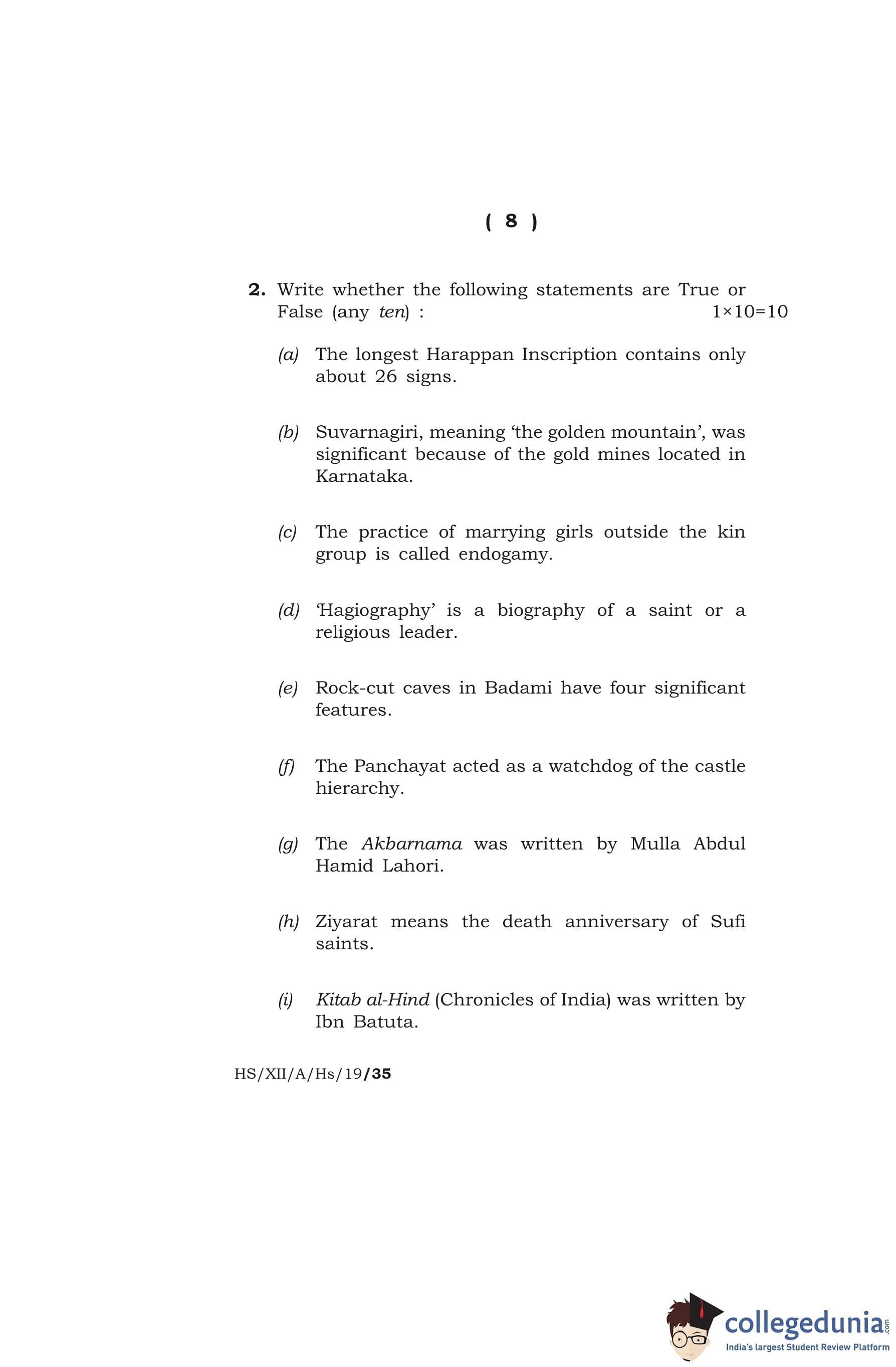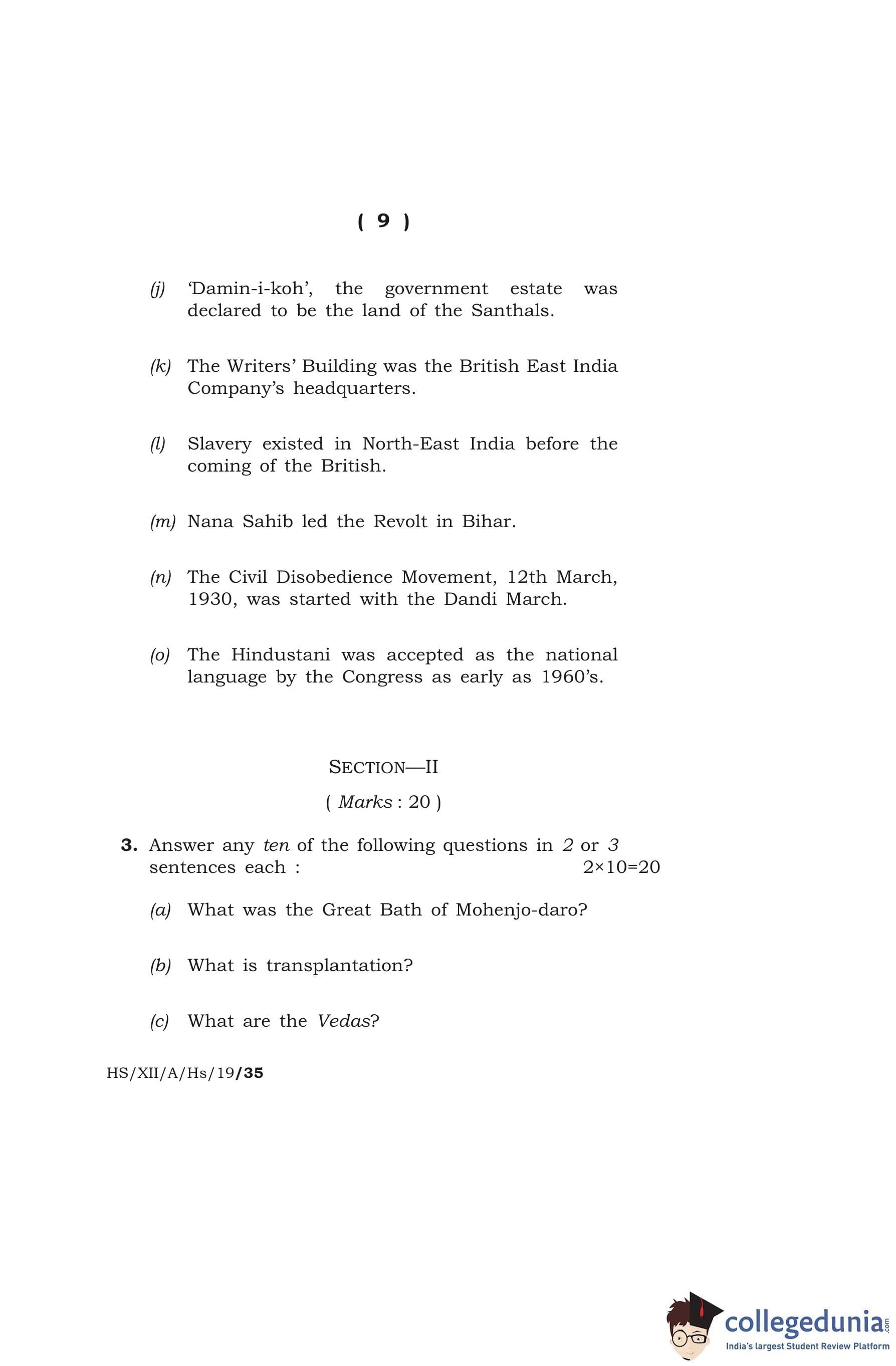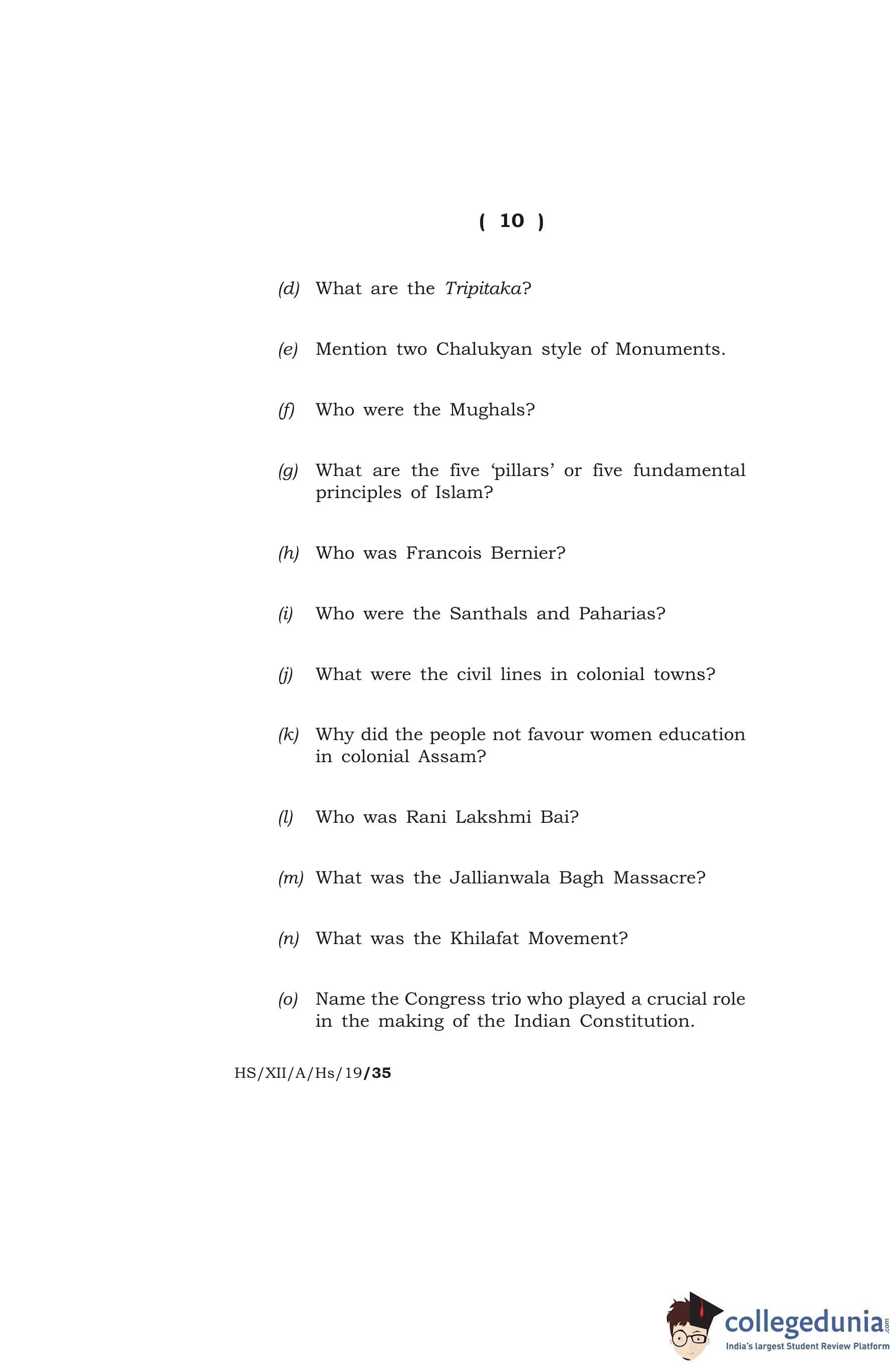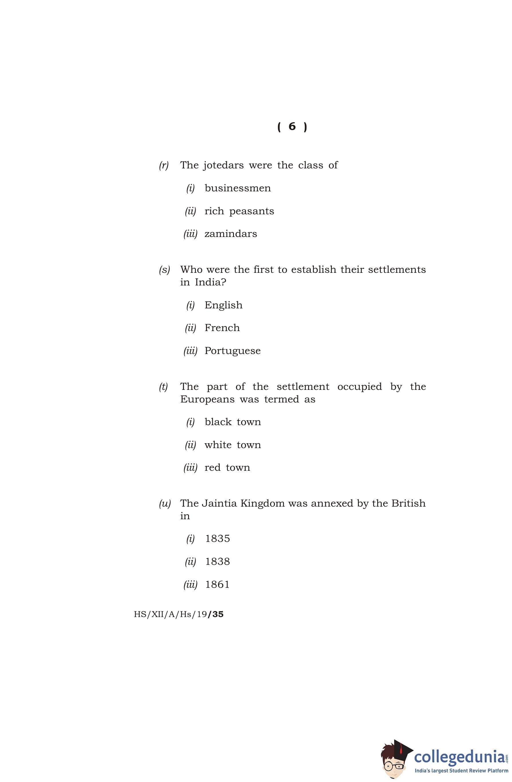 MBOSE Class 12 History Question Paper 2019 with Answer Key pdf is available for download here. The exam was conducted by Meghalaya Board of School Education on March 13, 2019 in the Morning Session 10 AM to 1 PM. The question paper comprised a total of 4 questions divided among 2 sections.