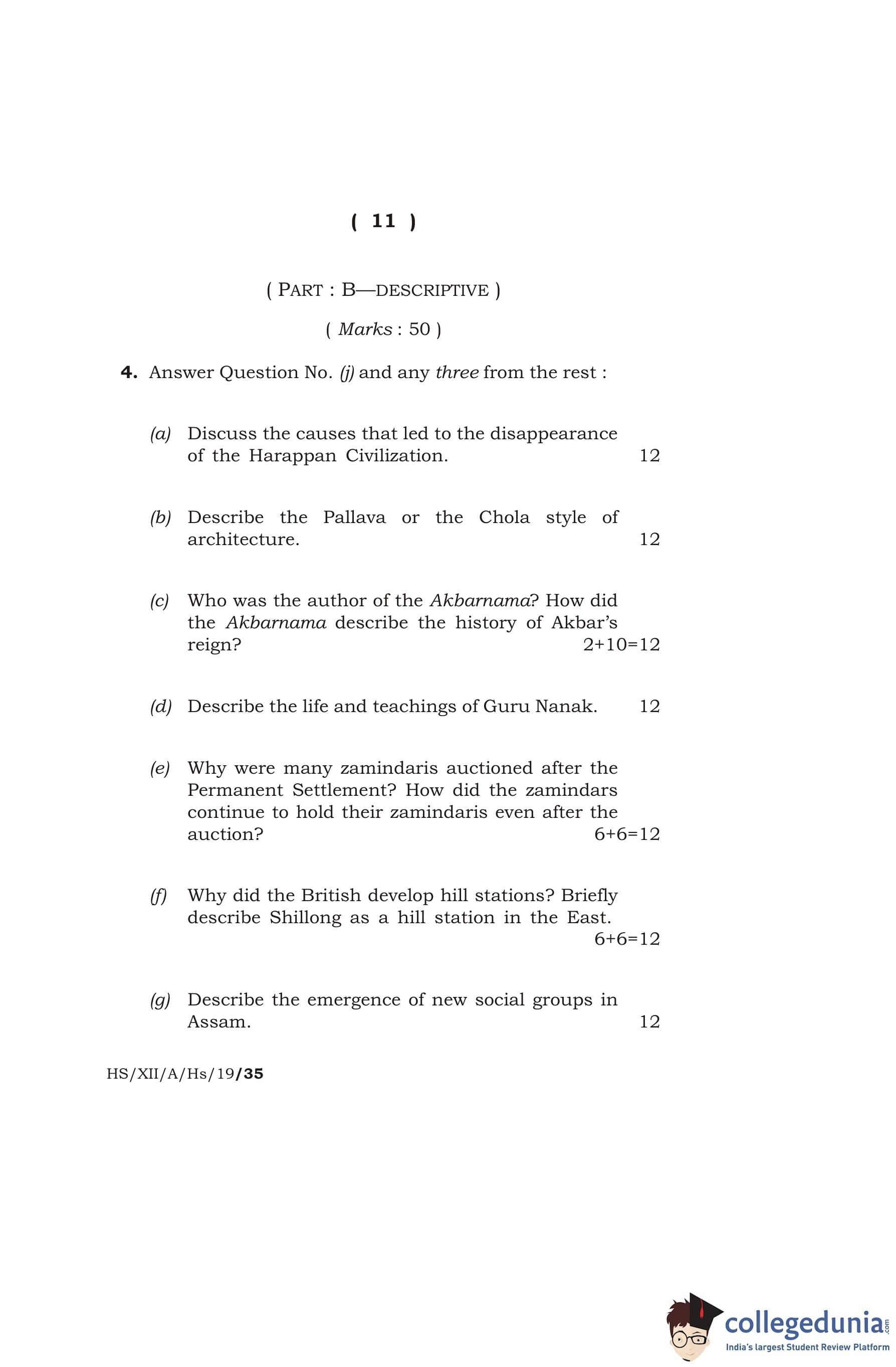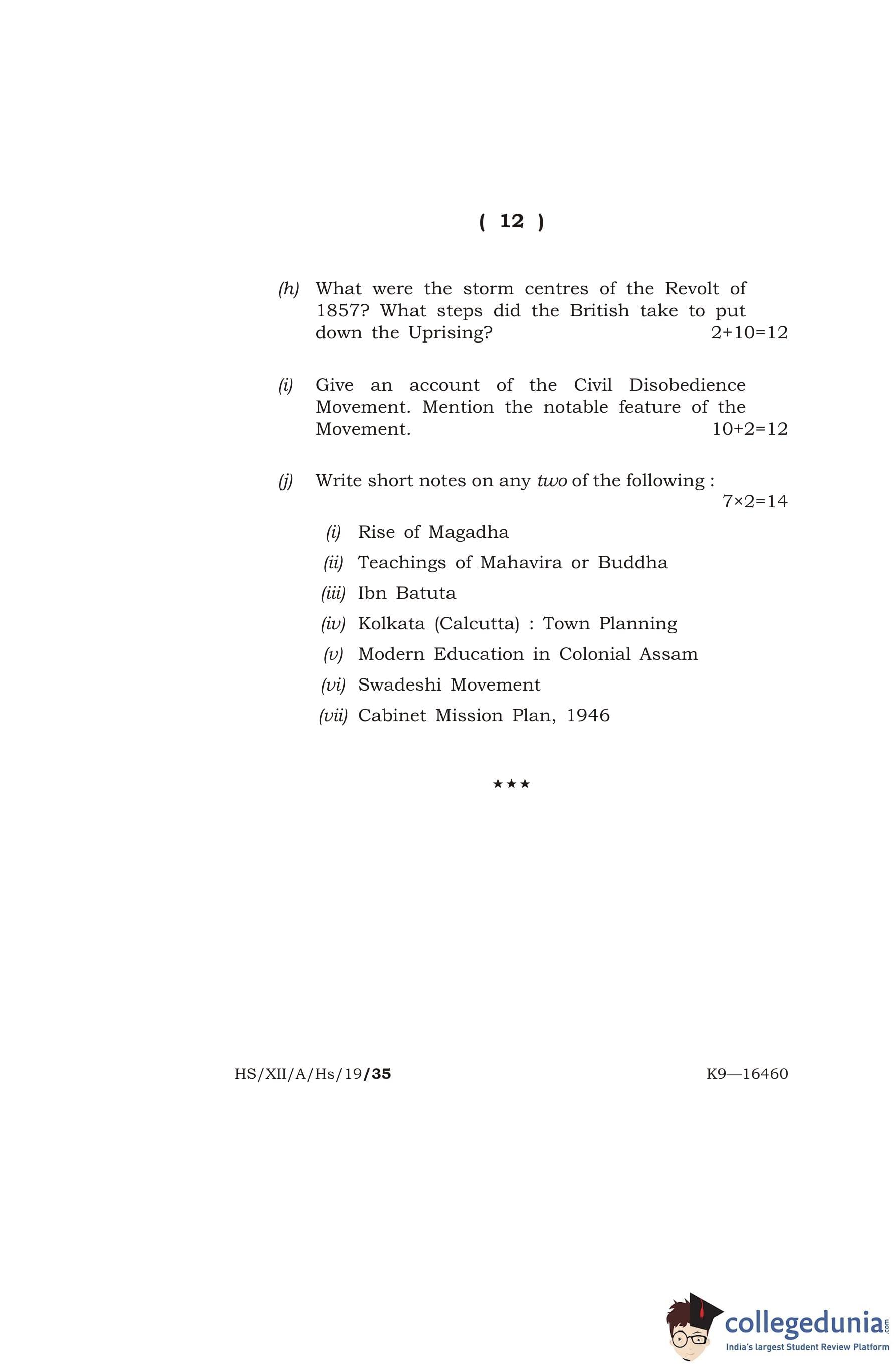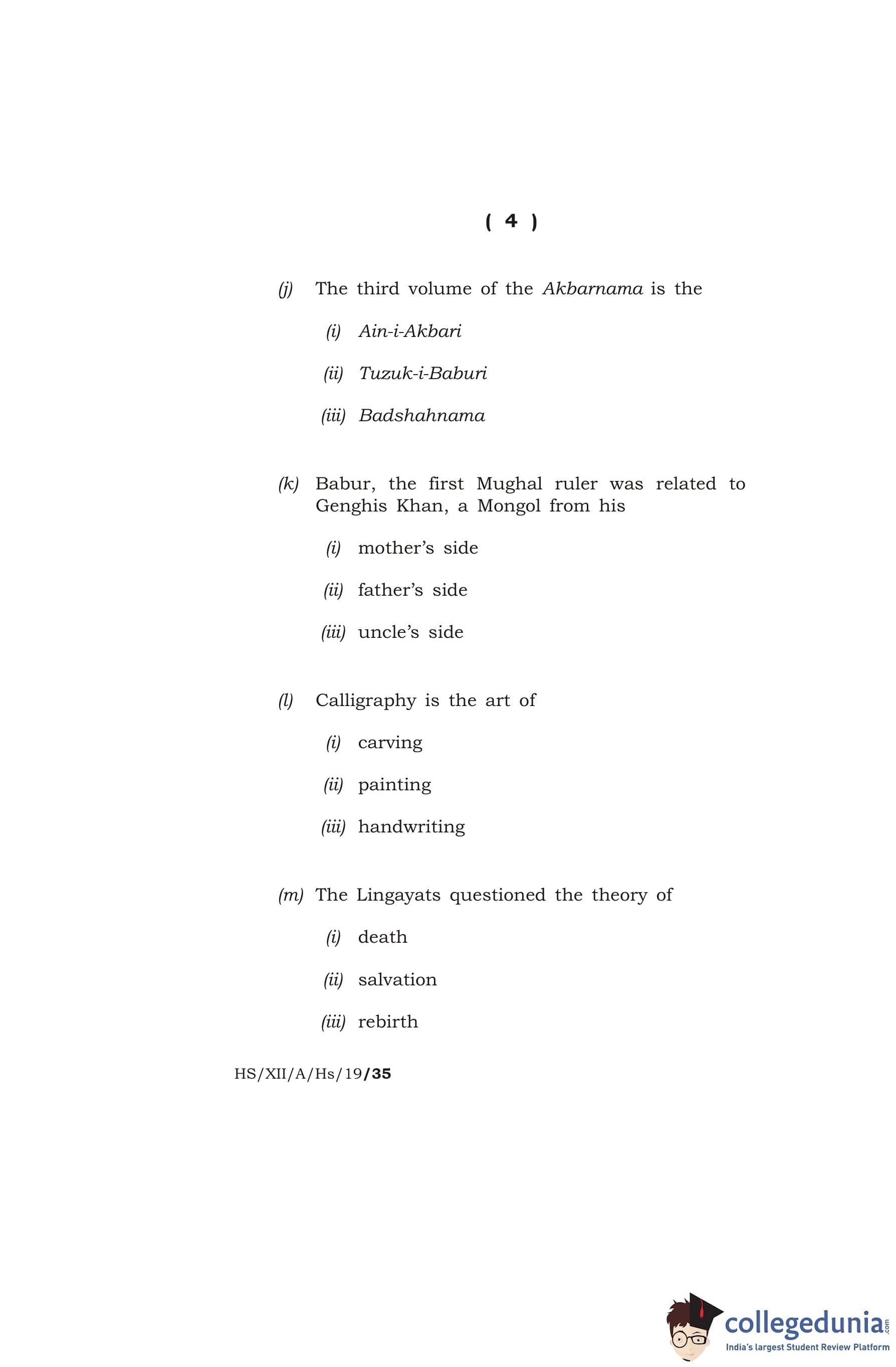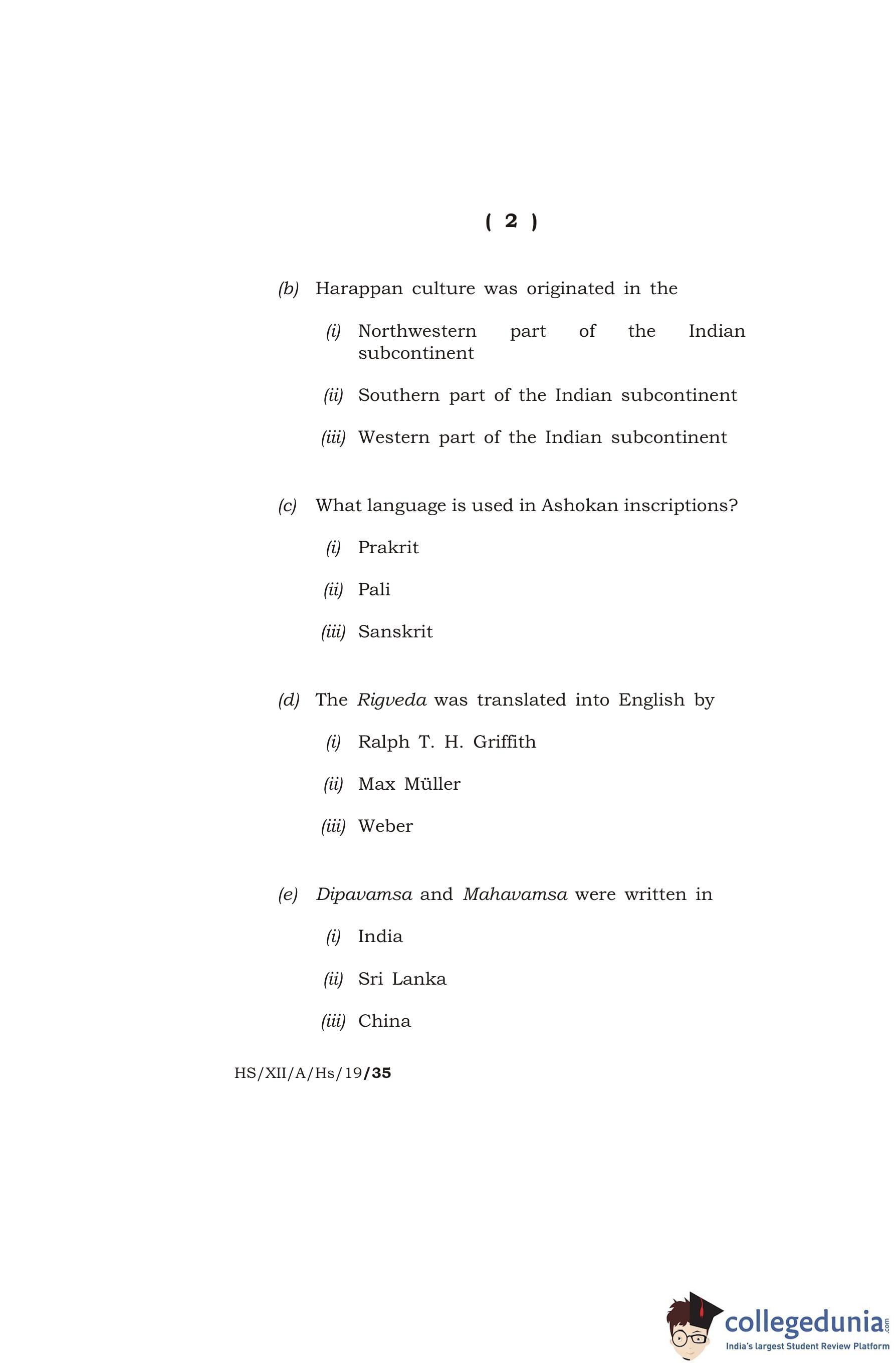 MBOSE Class 12 History Question Paper 2019 with Answer Key pdf is available for download here. The exam was conducted by Meghalaya Board of School Education on March 13, 2019 in the Morning Session 10 AM to 1 PM. The question paper comprised a total of 4 questions divided among 2 sections.