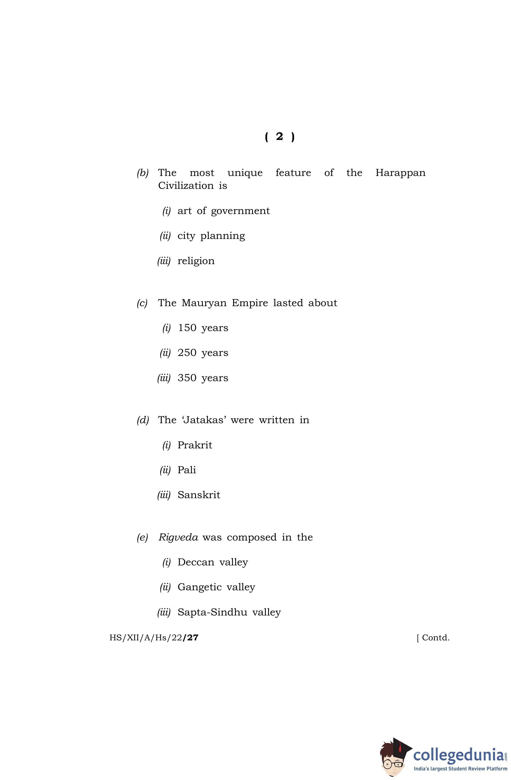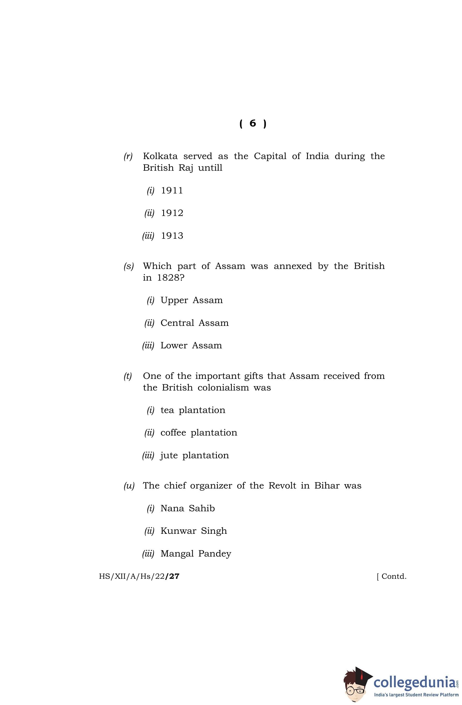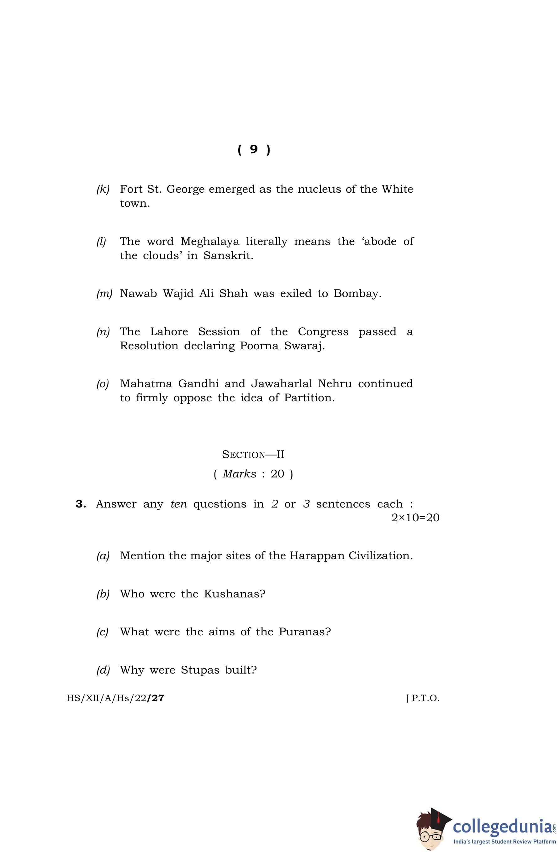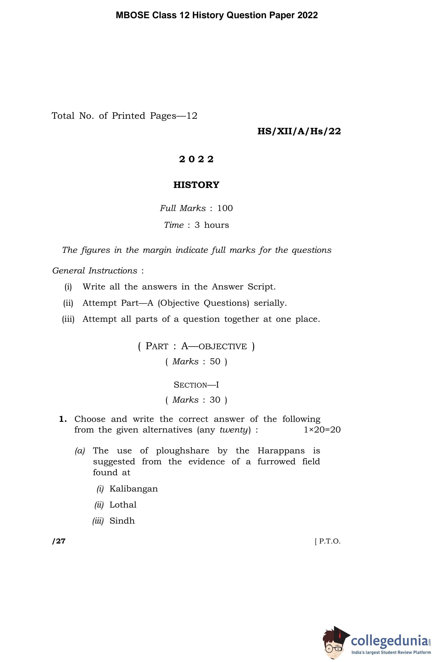 MBOSE Class 12 History Question Paper 2022 with Answer Key pdf is available for download here. The exam was conducted by Meghalaya Board of School Education on April 13, 2022 in the Morning Session 10 AM to 1 PM. The question paper comprised a total of 4 questions divided among 2 sections.