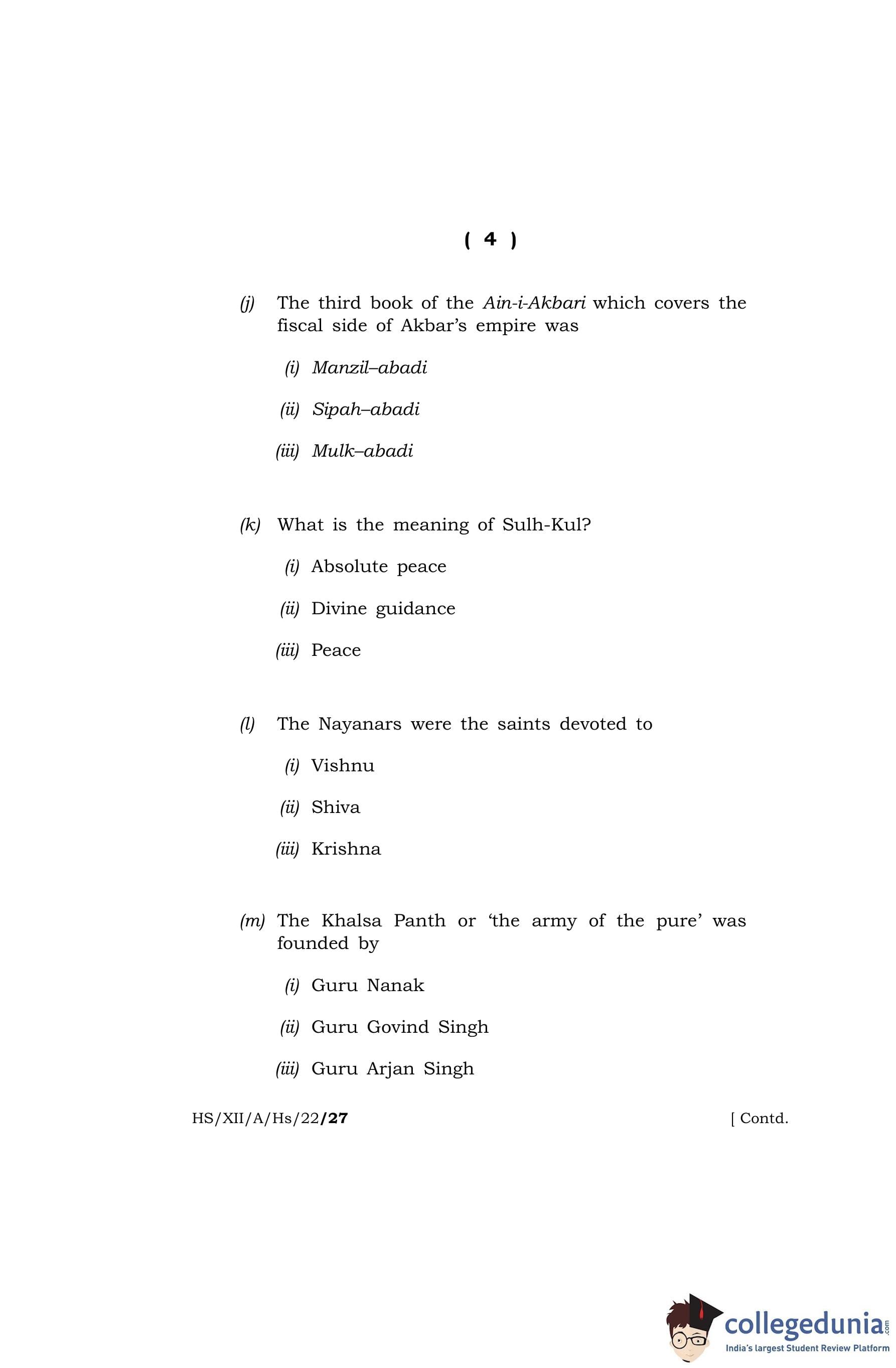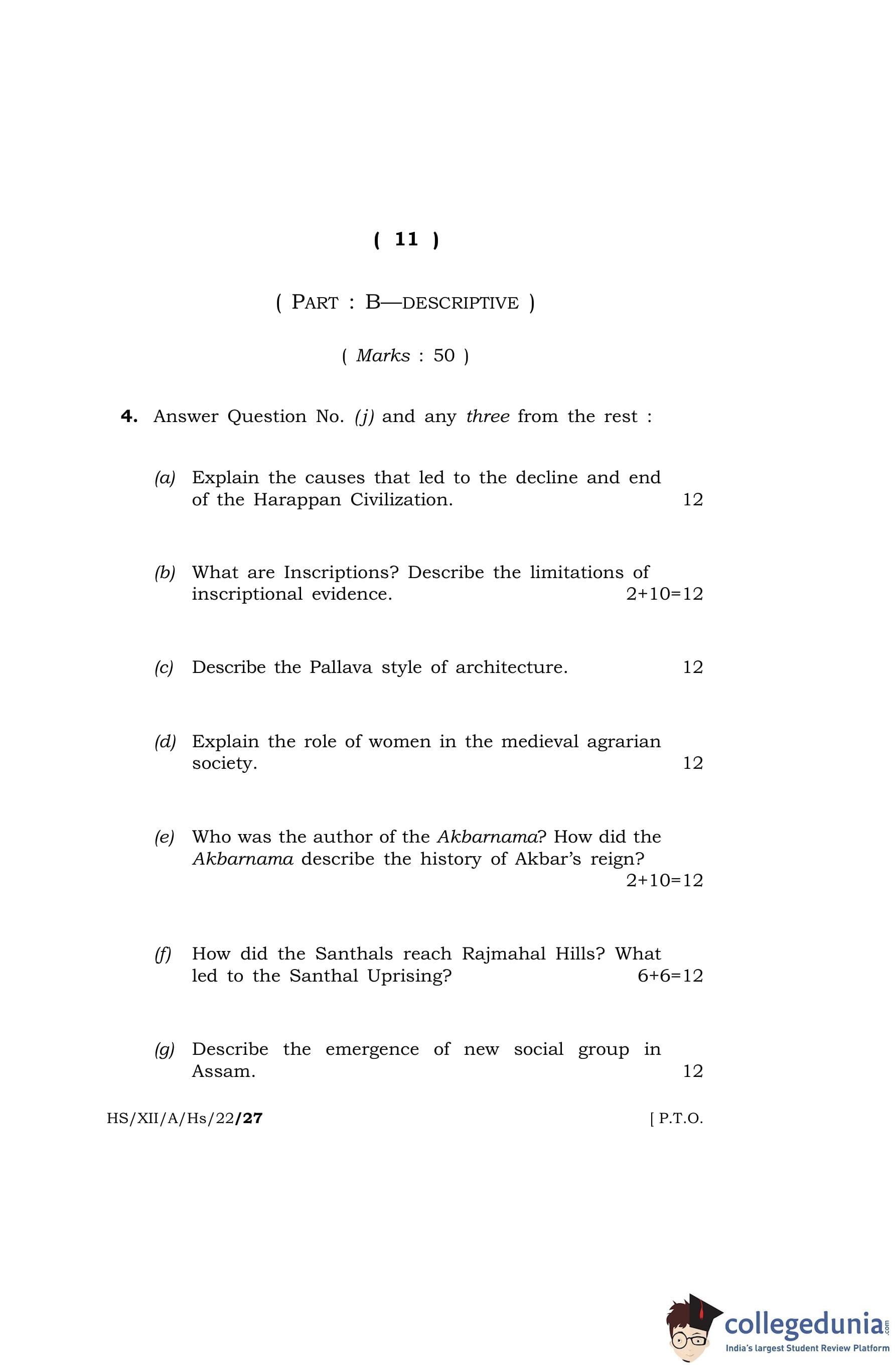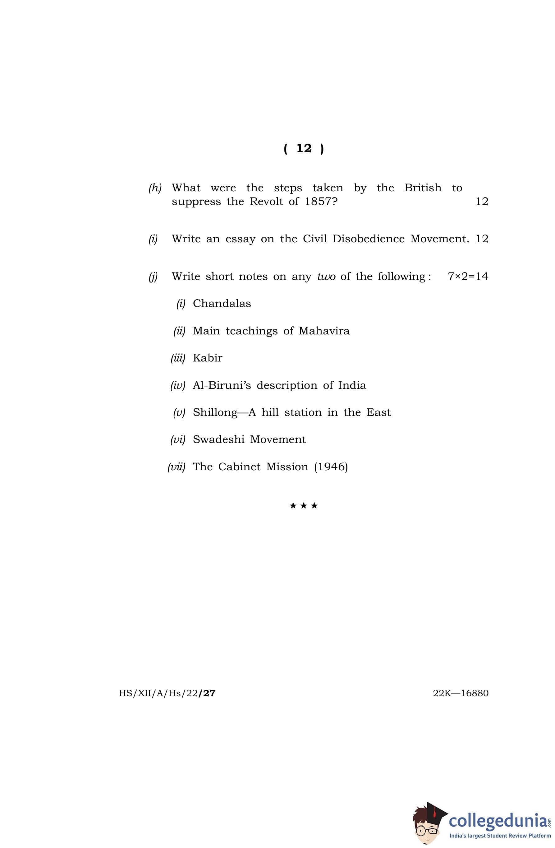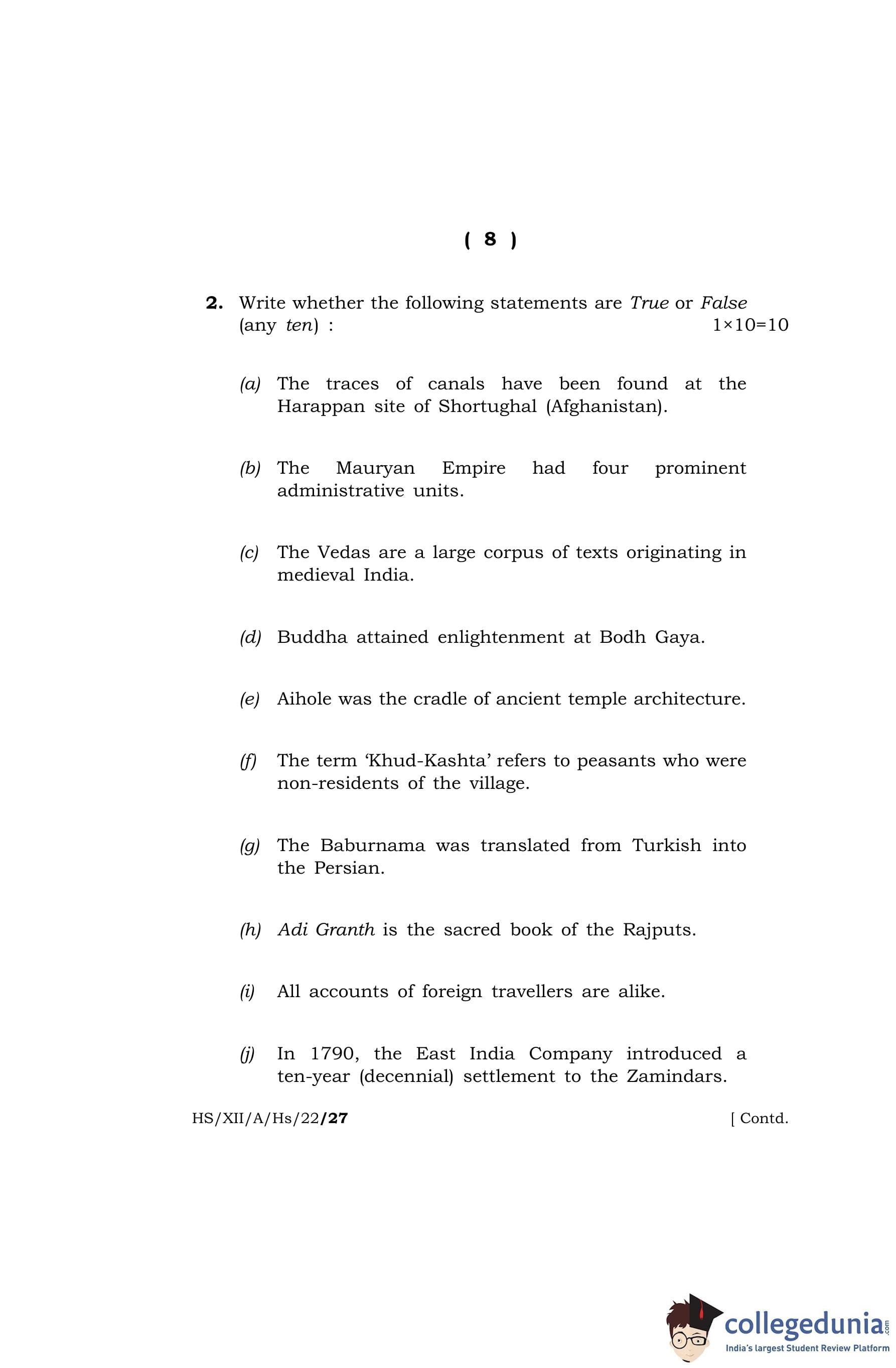 MBOSE Class 12 History Question Paper 2022 with Answer Key pdf is available for download here. The exam was conducted by Meghalaya Board of School Education on April 13, 2022 in the Morning Session 10 AM to 1 PM. The question paper comprised a total of 4 questions divided among 2 sections.