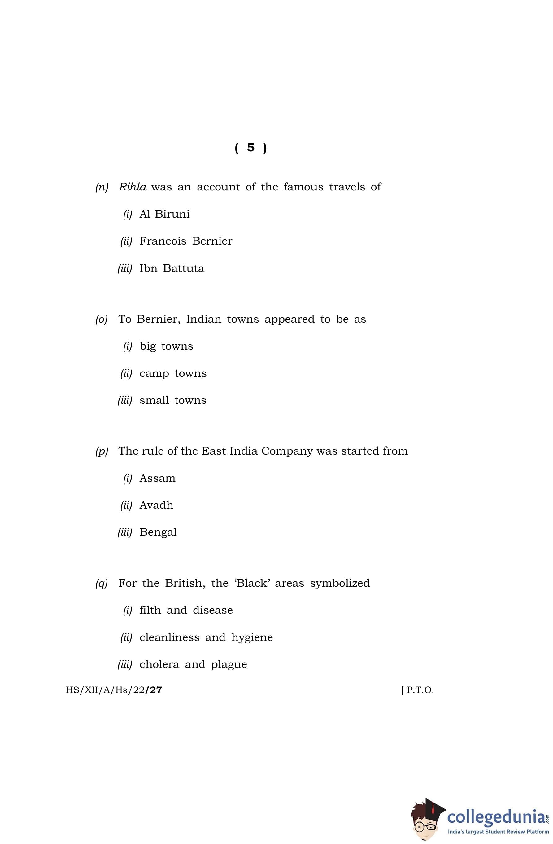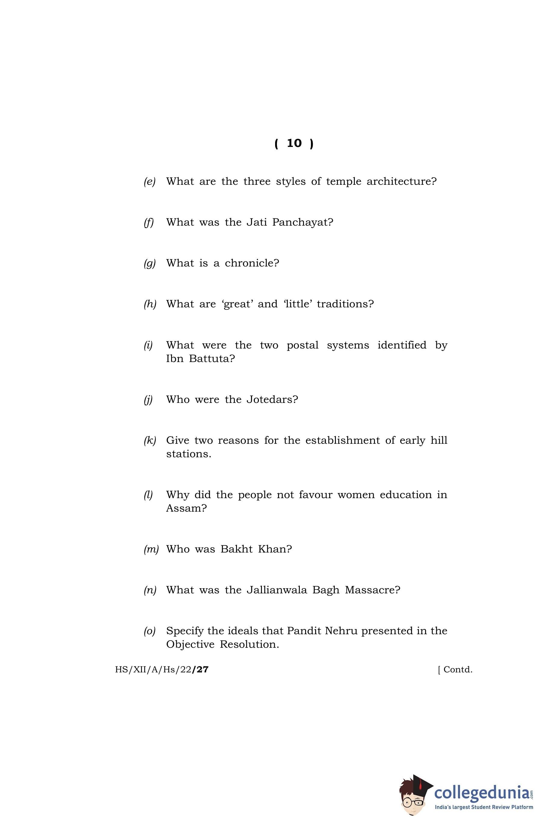 MBOSE Class 12 History Question Paper 2022