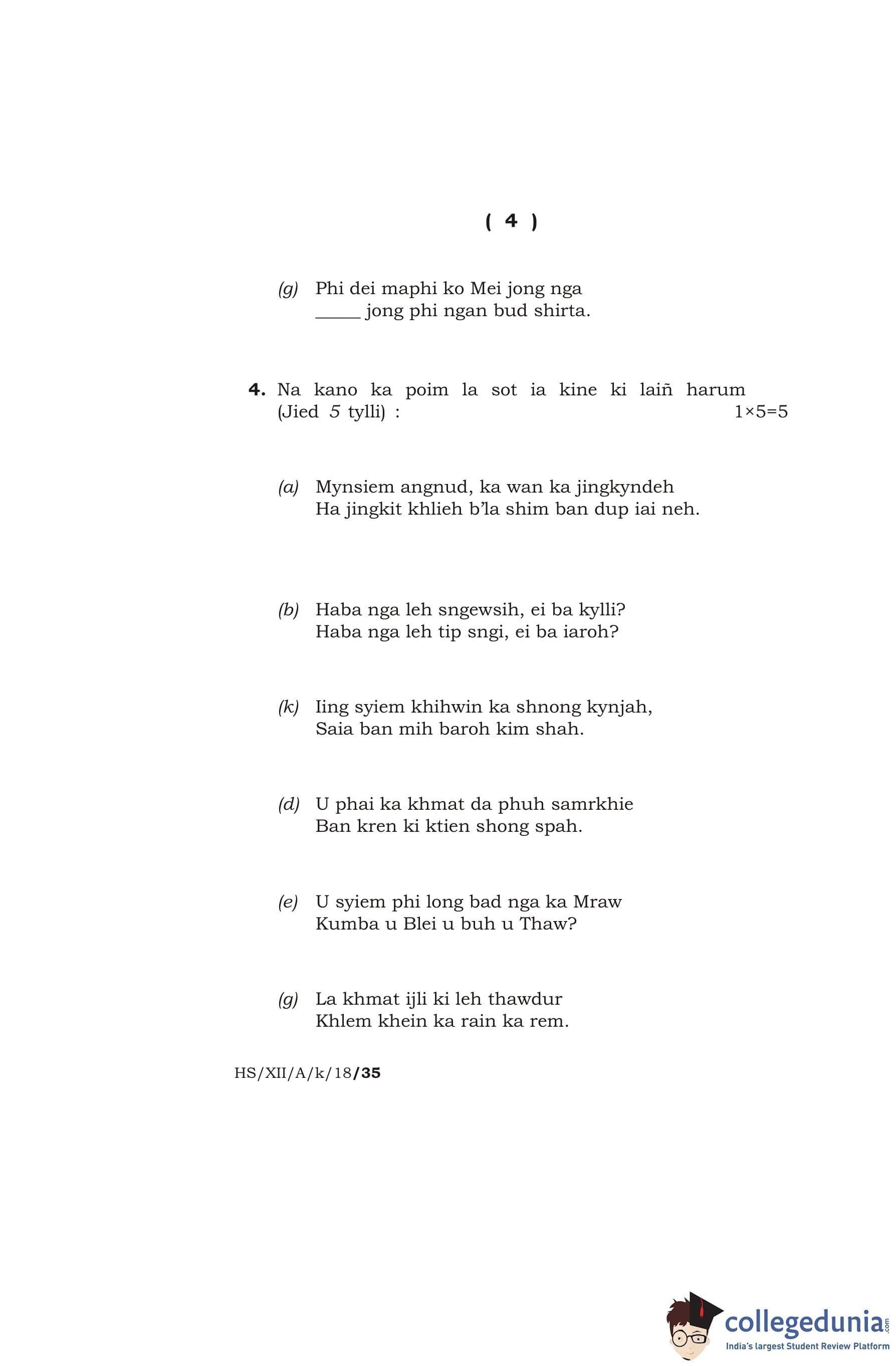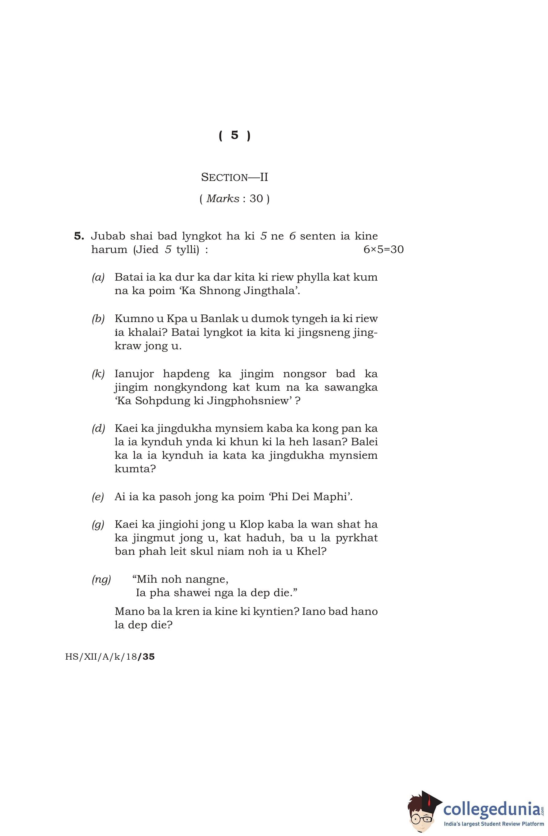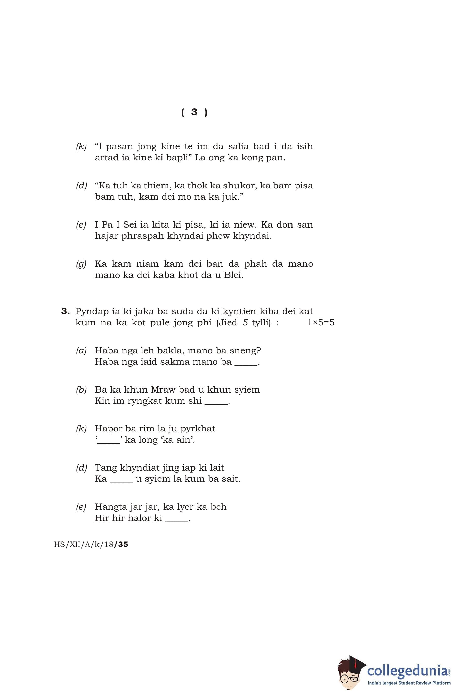 MBOSE Class 12 Khasi (Elective) Question Paper 2018
