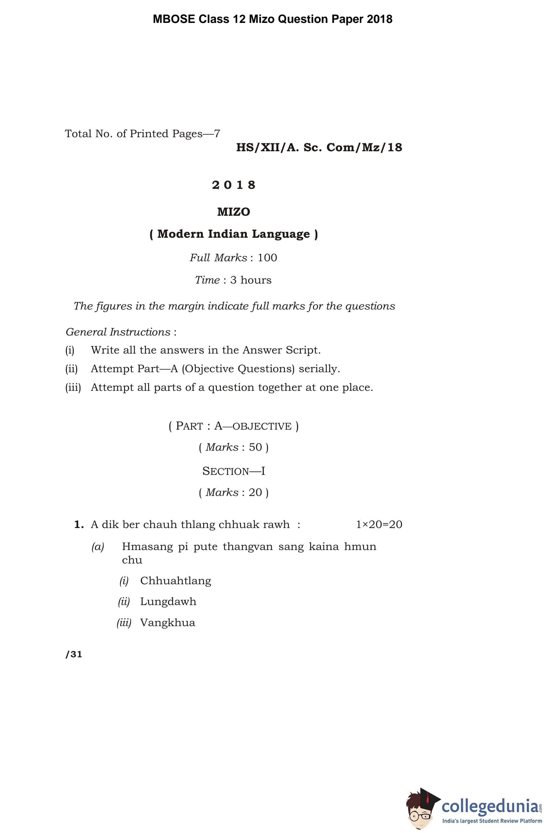 | MBOSE Class 12 Mizo Question Paper 2018 PDF | MBOSE Class 12 Mizo Answer Key 2018 PDF |