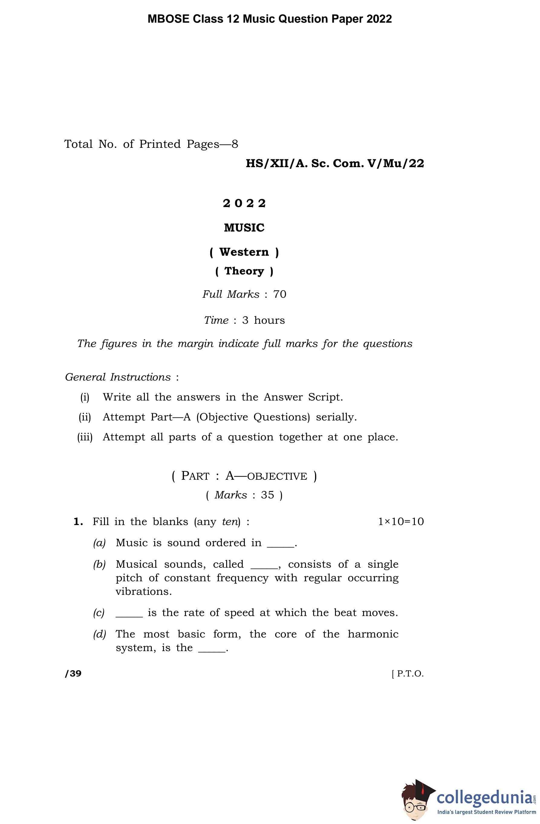 | MBOSE Class 12 Music Question Paper 2022 PDF | MBOSE Class 12 Music Answer Key 2022 PDF |