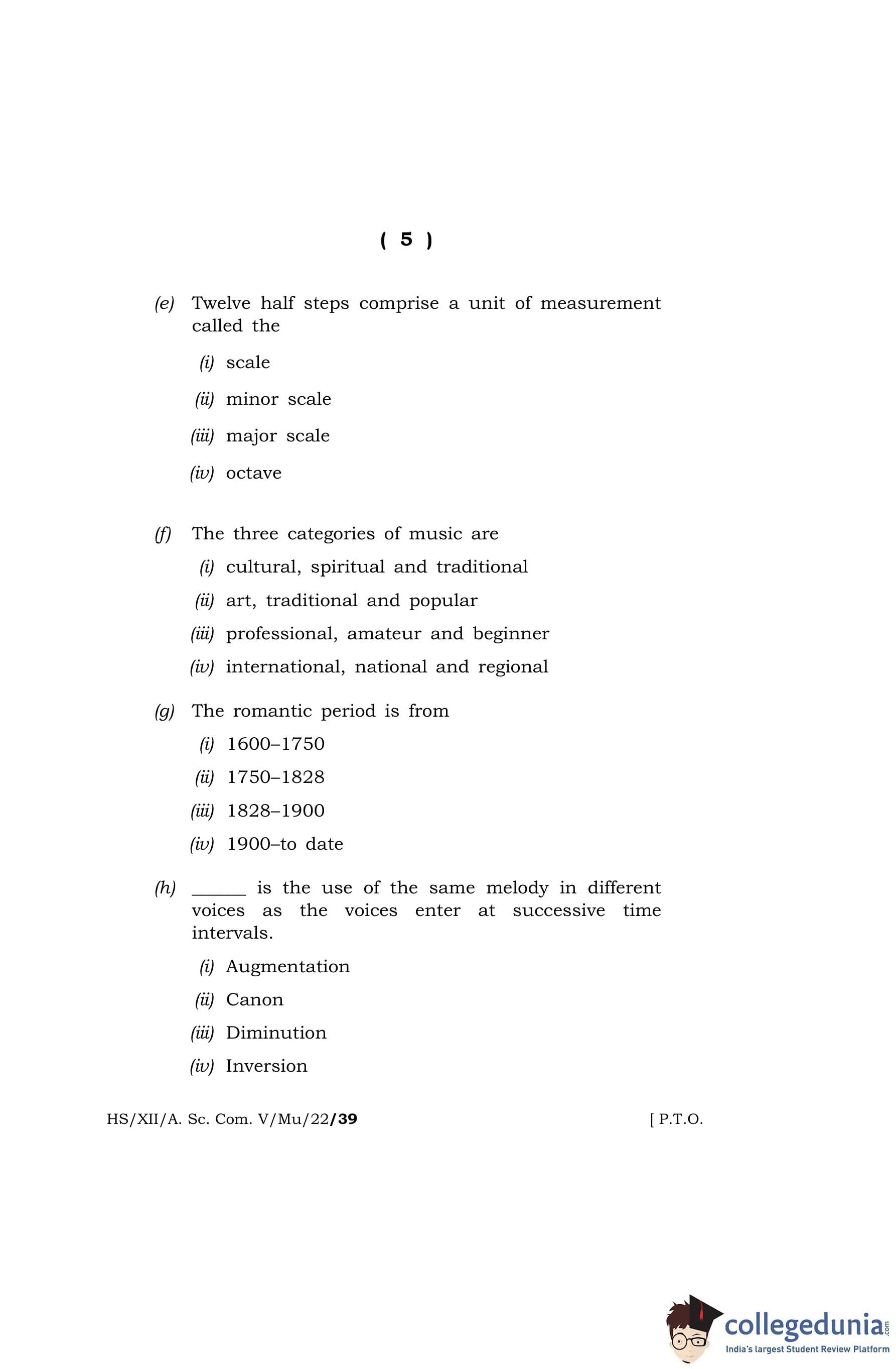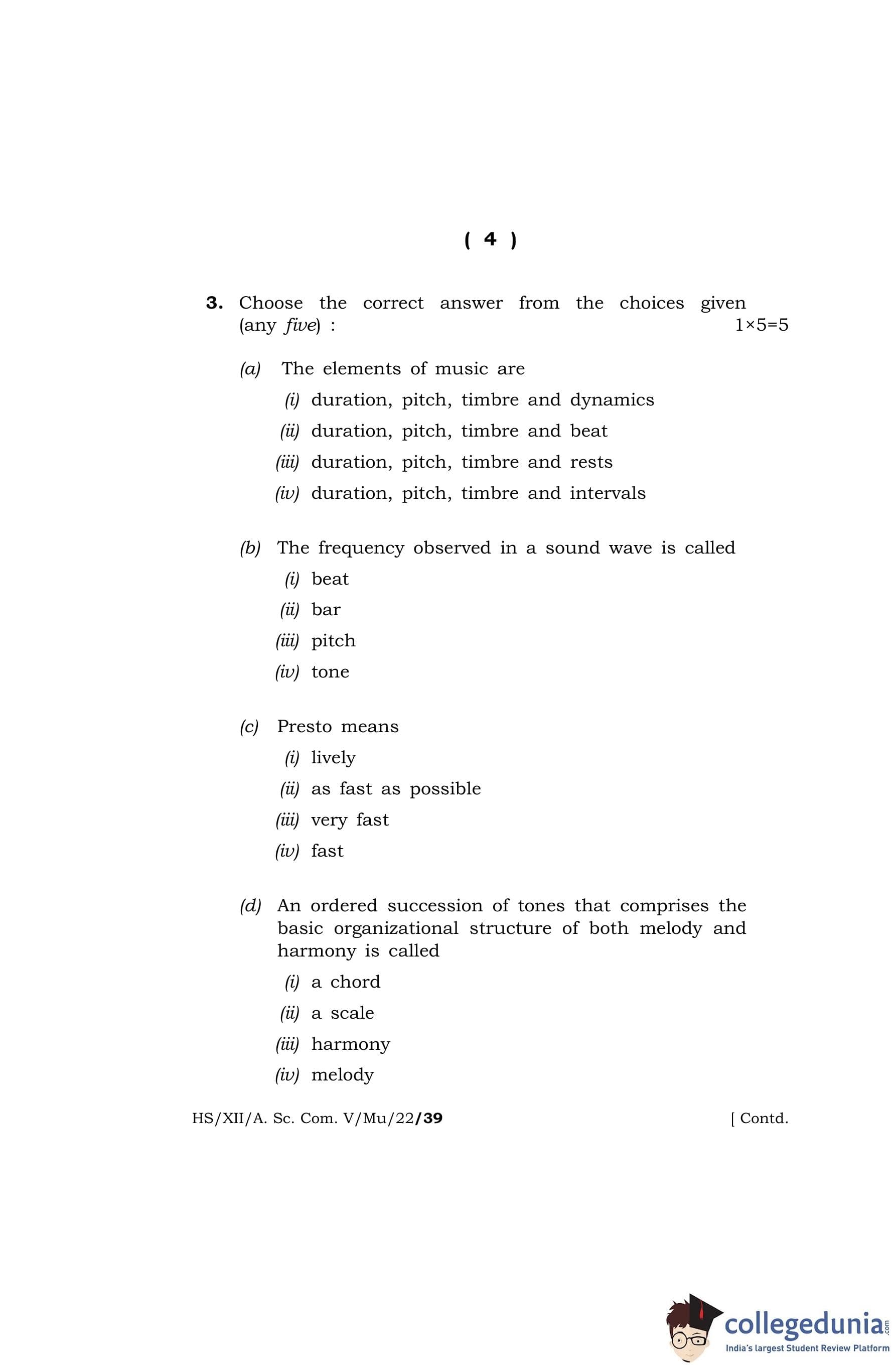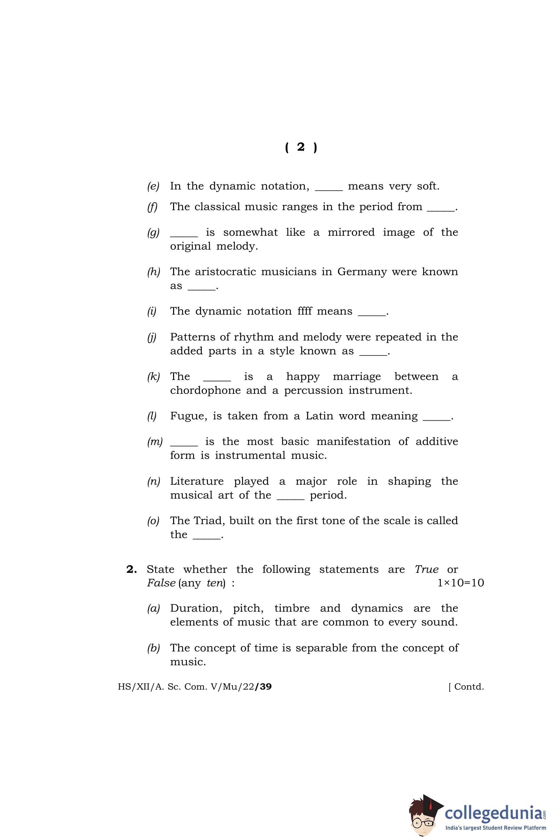 MBOSE Class 12 Music Question Paper 2022 with Answer Key pdf is available for download here. The exam was conducted by Meghalaya Board of School Education on April 20, 2022 in the Morning Session 10 AM to 1 PM. The question paper comprised a total of 10 questions divided among 2 sections.