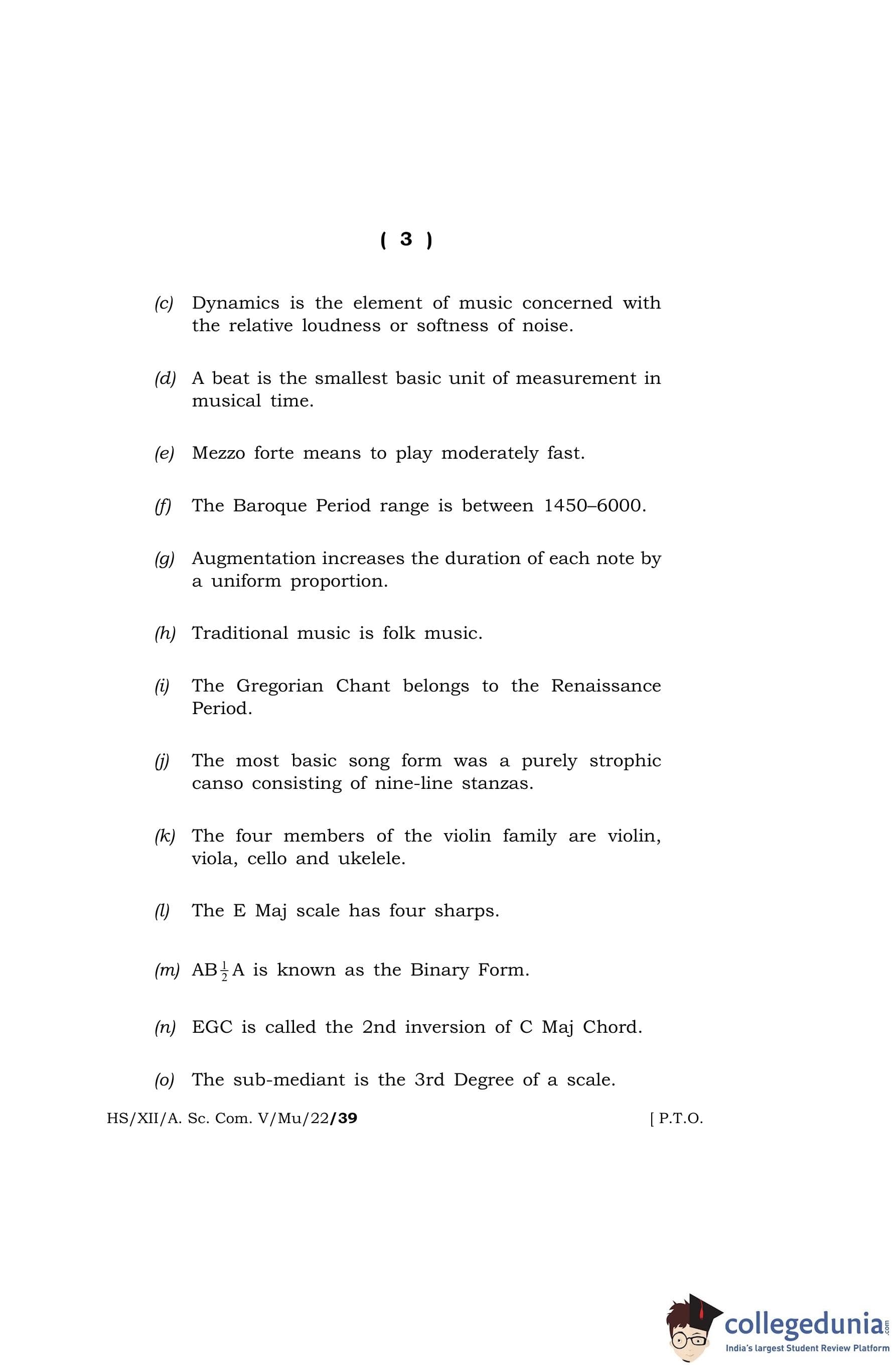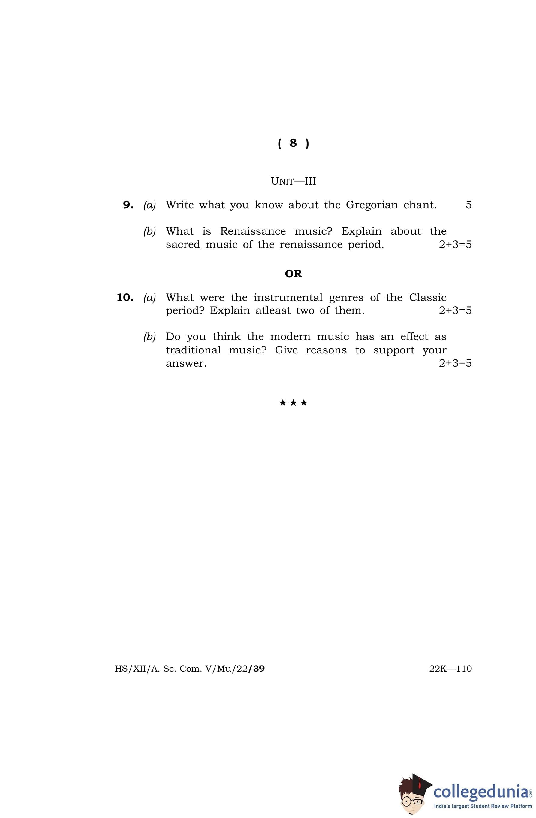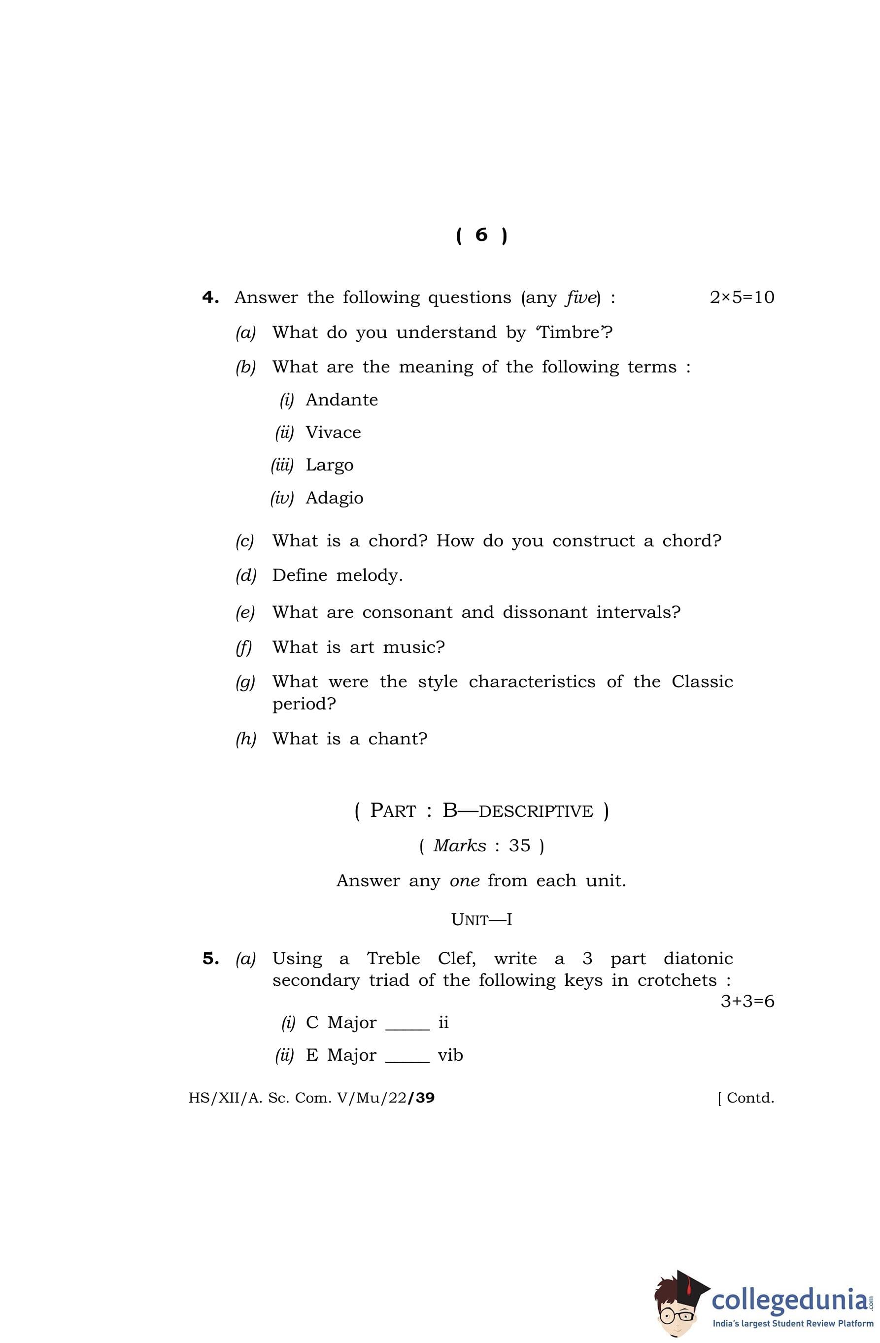 MBOSE Class 12 Music Question Paper 2022 with Answer Key pdf is available for download here. The exam was conducted by Meghalaya Board of School Education on April 20, 2022 in the Morning Session 10 AM to 1 PM. The question paper comprised a total of 10 questions divided among 2 sections.