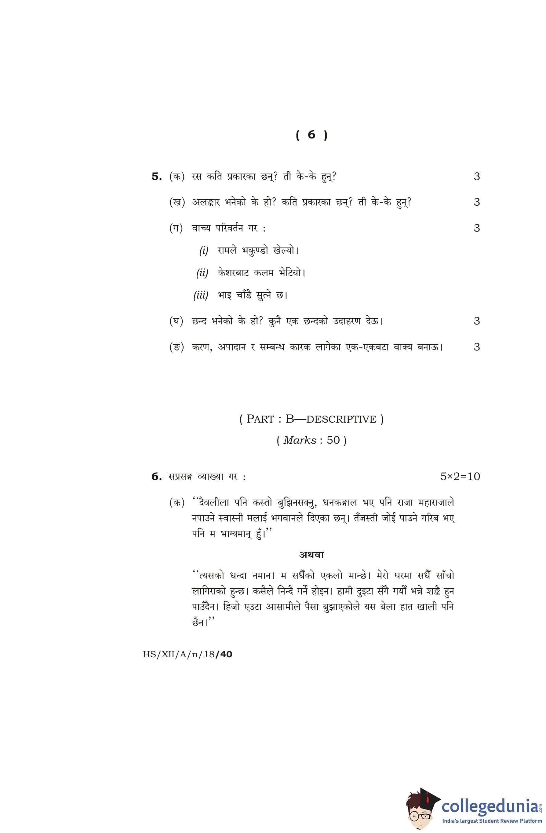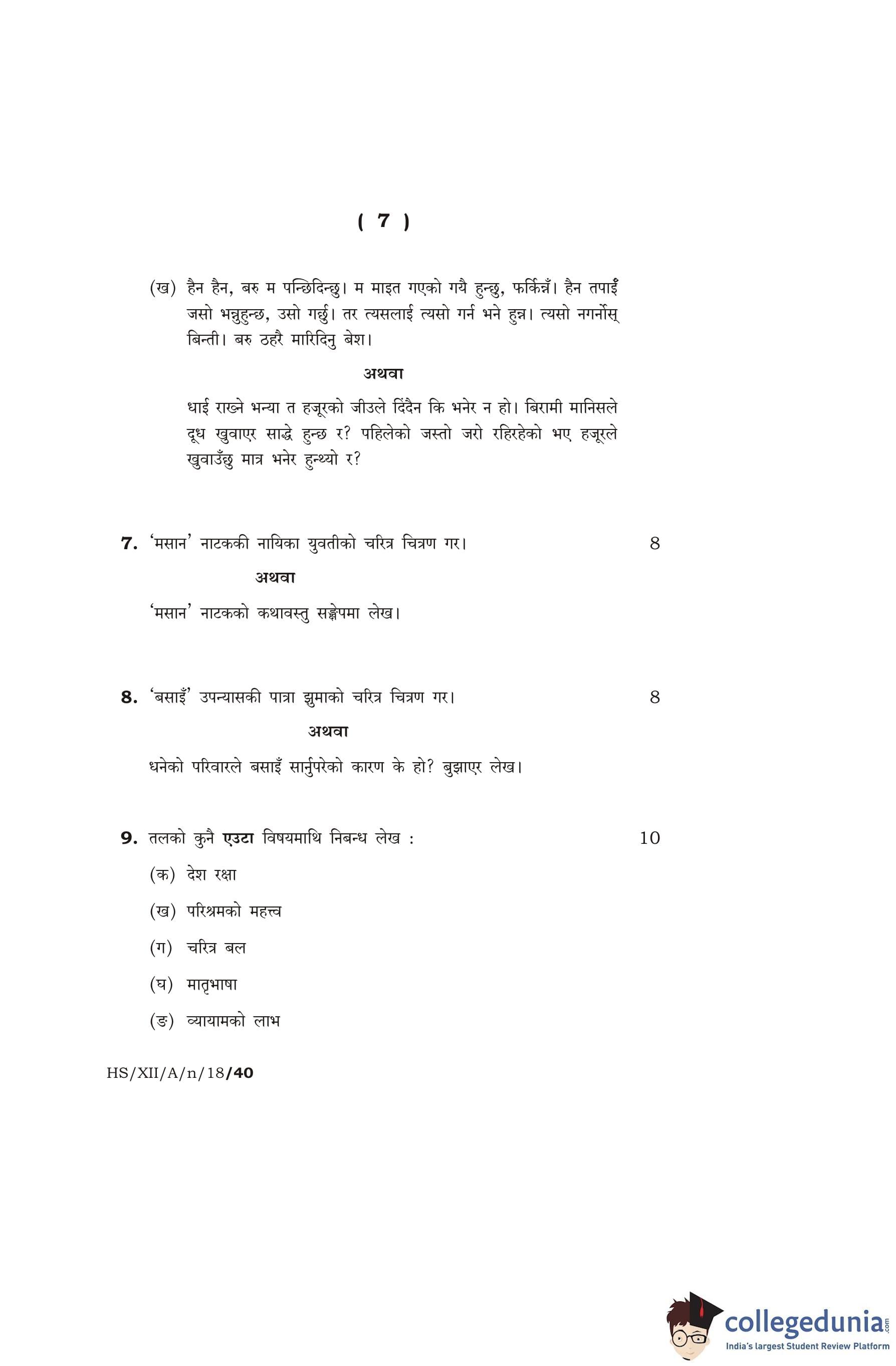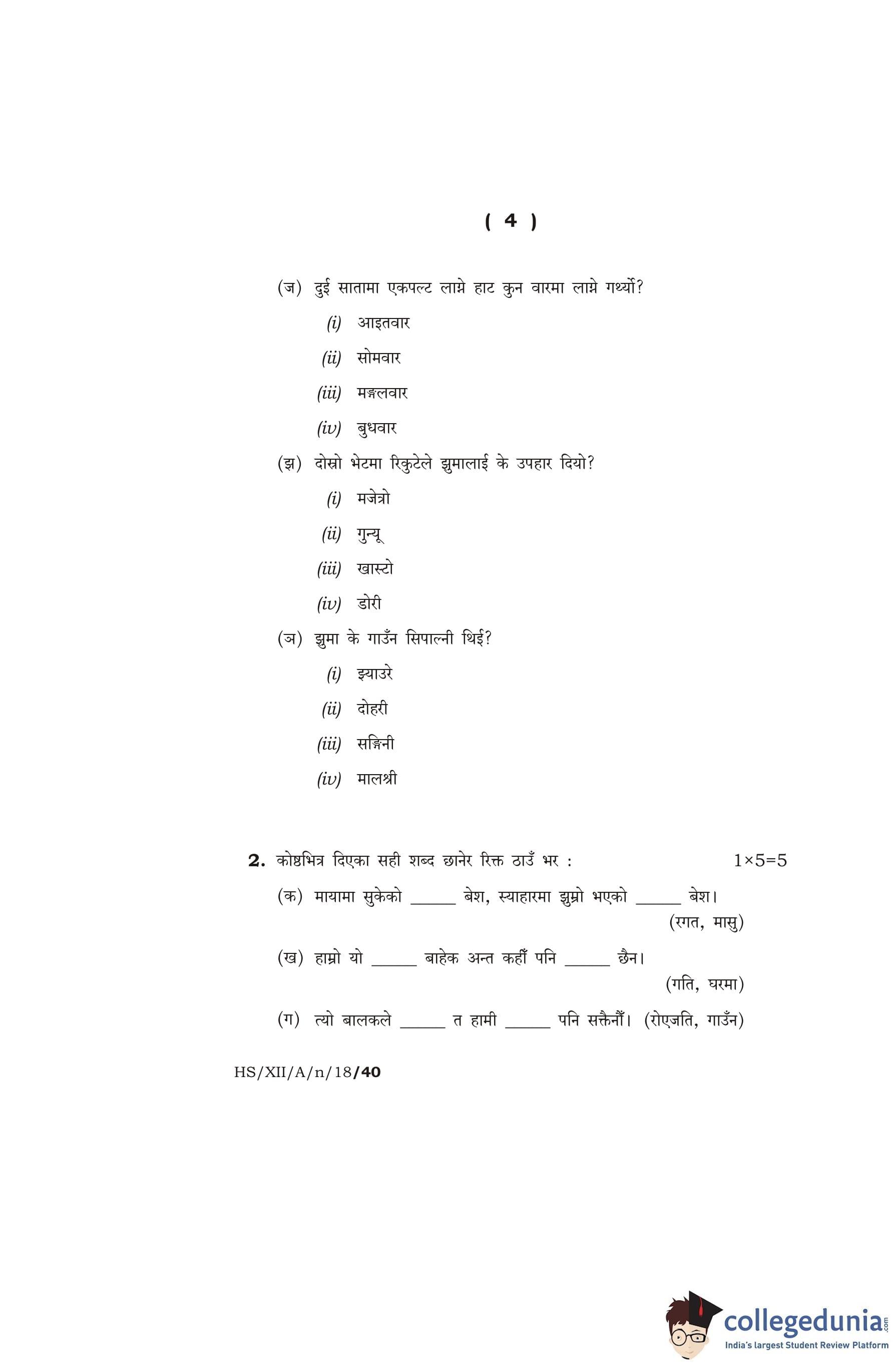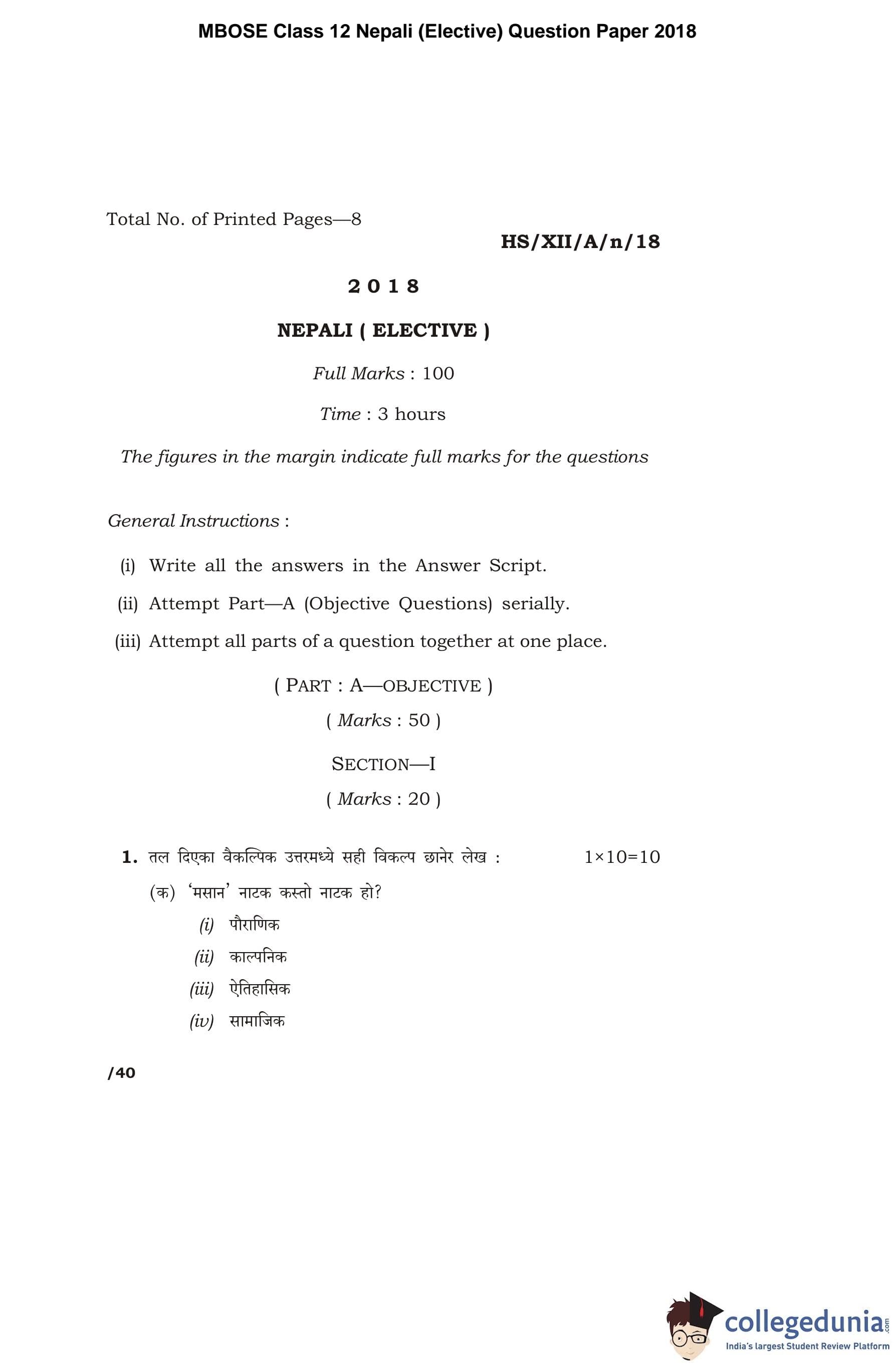 MBOSE Class 12 Nepali (Elective) Question Paper 2018