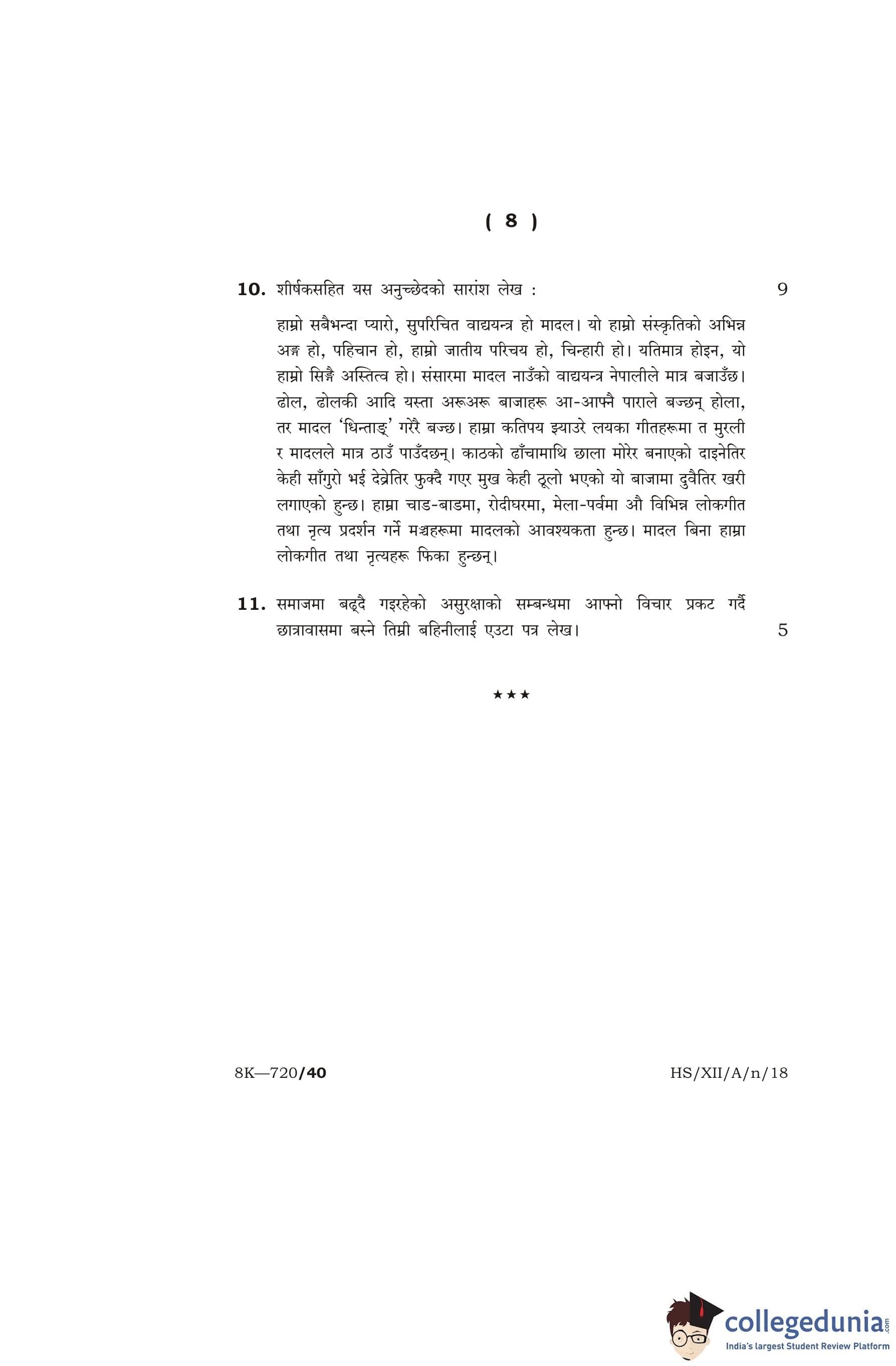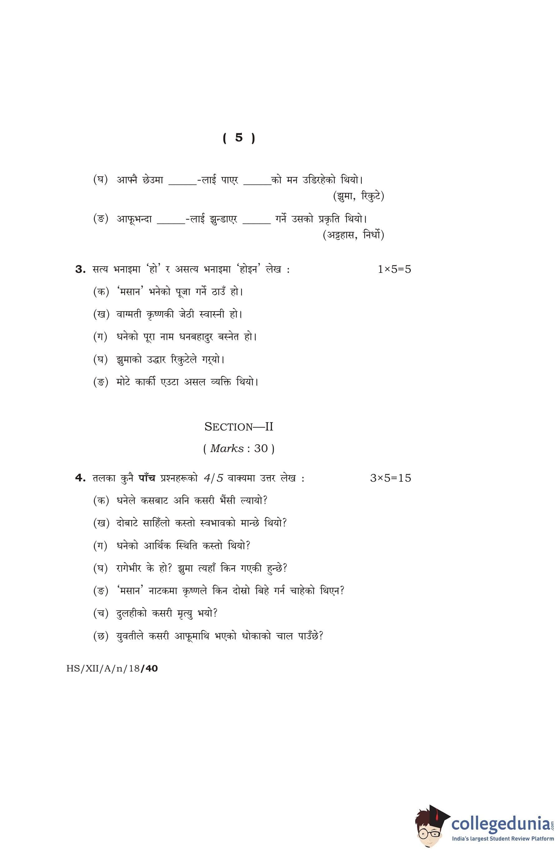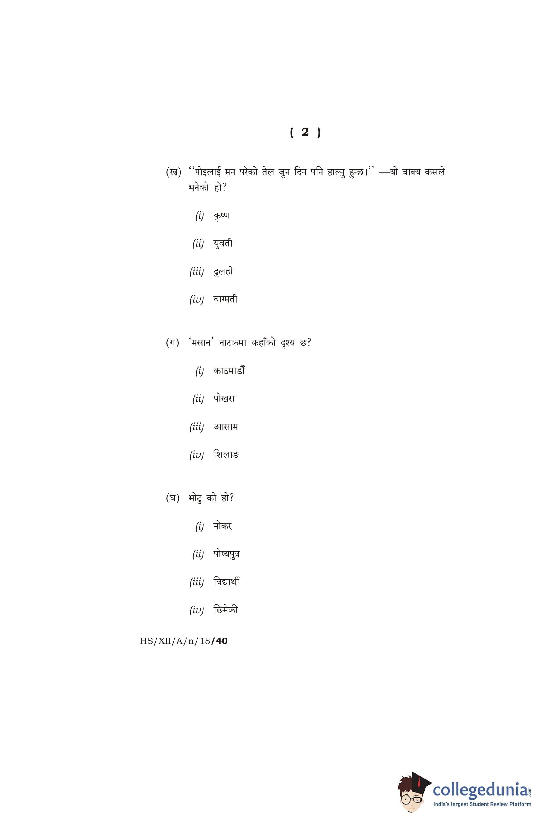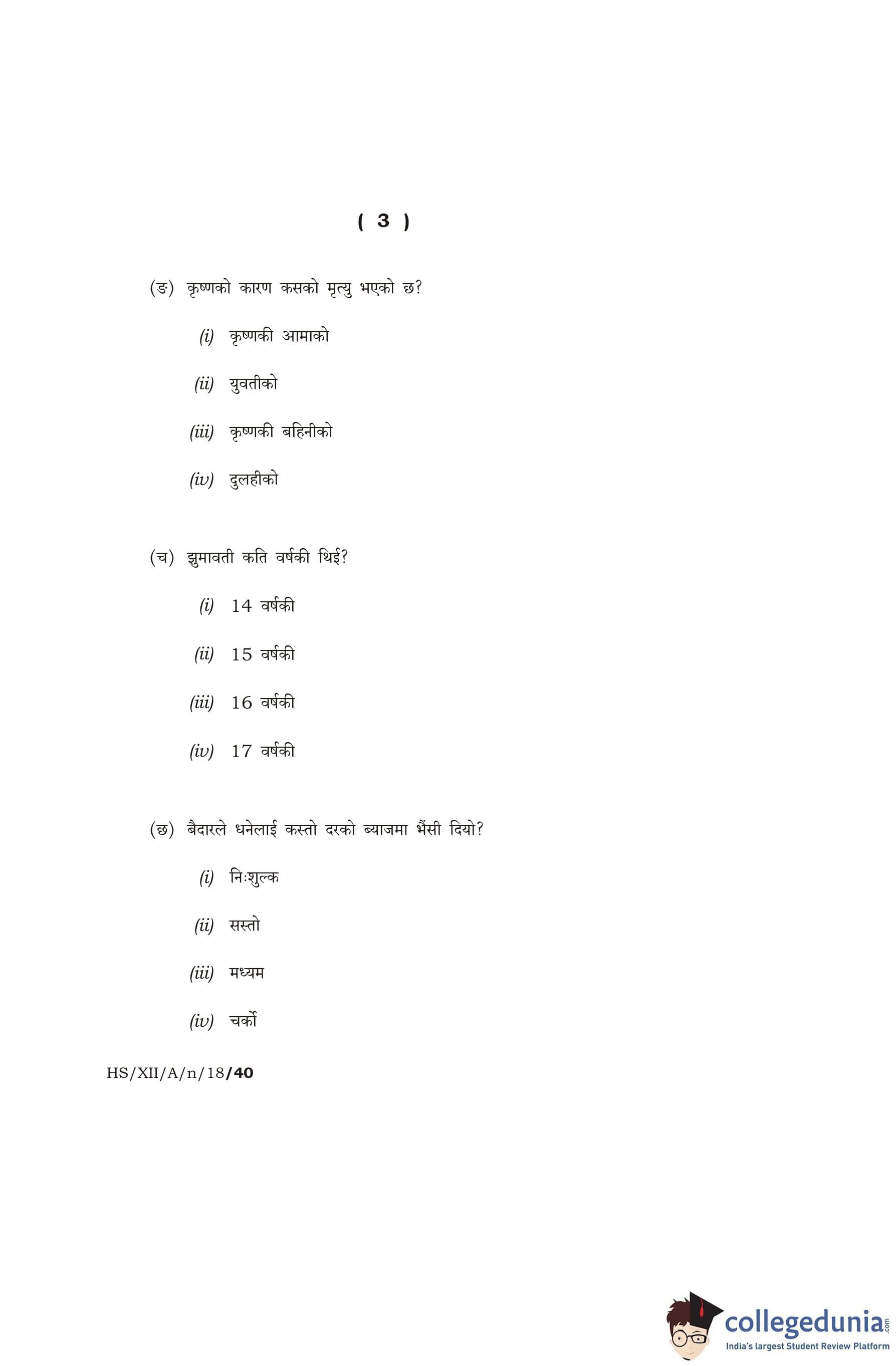 MBOSE Class 12 Nepali (Elective) Question Paper 2018