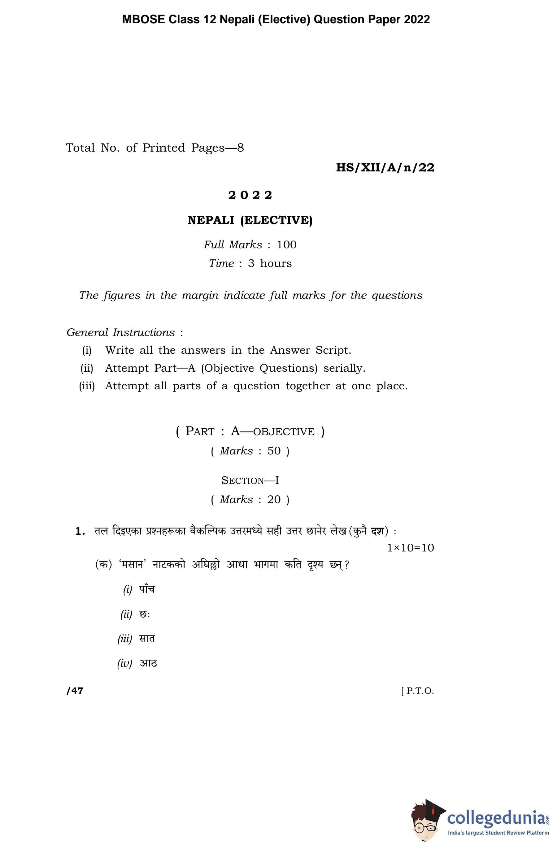 | MBOSE Class 12 Nepali (Elective) Question Paper 2022 PDF | MBOSE Class 12 Nepali (Elective) Answer Key 2022 PDF |