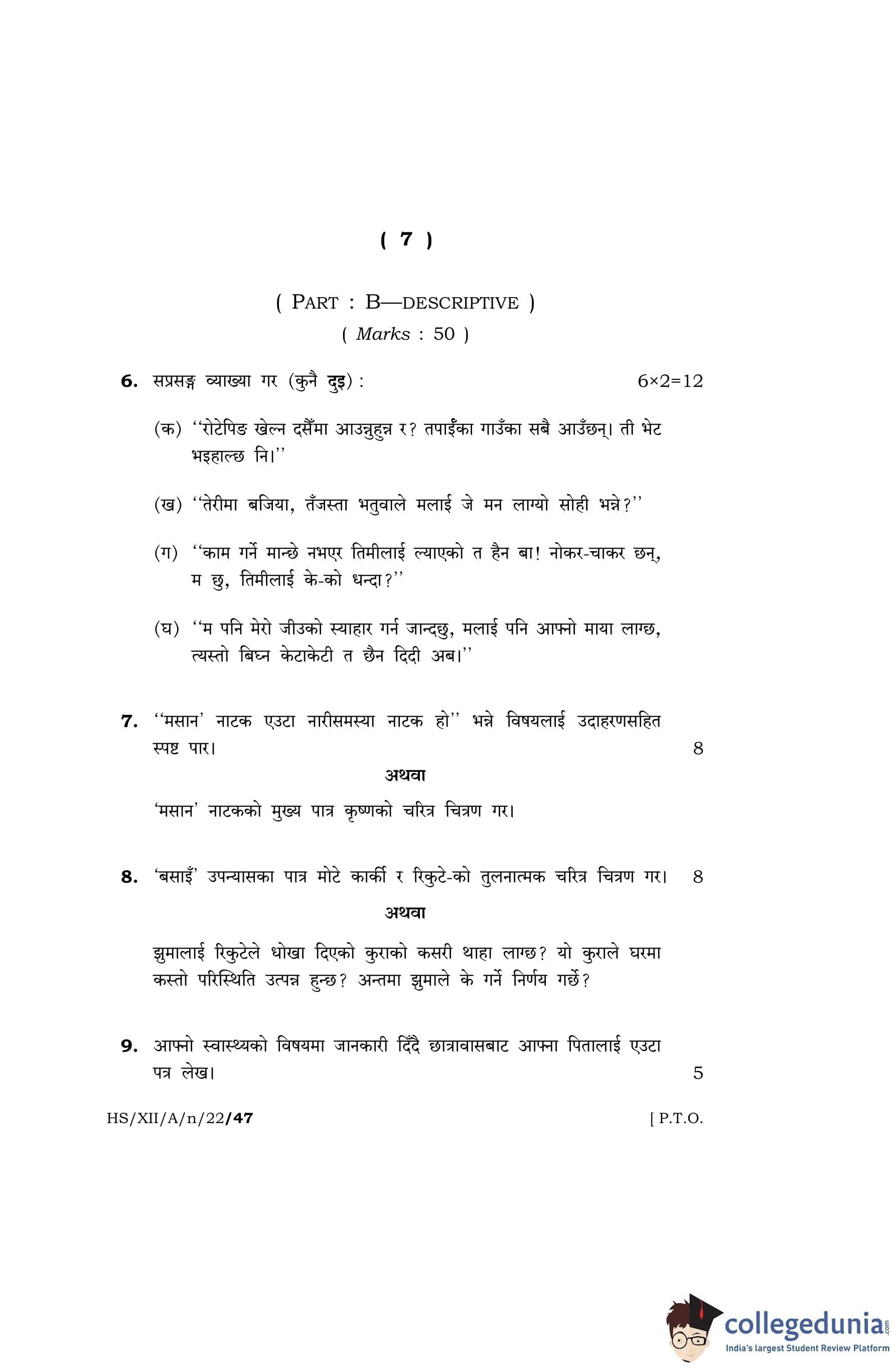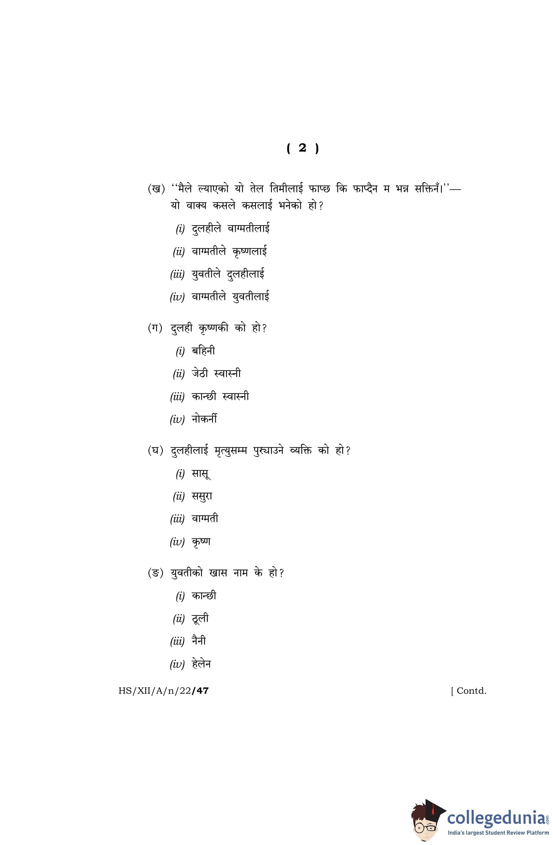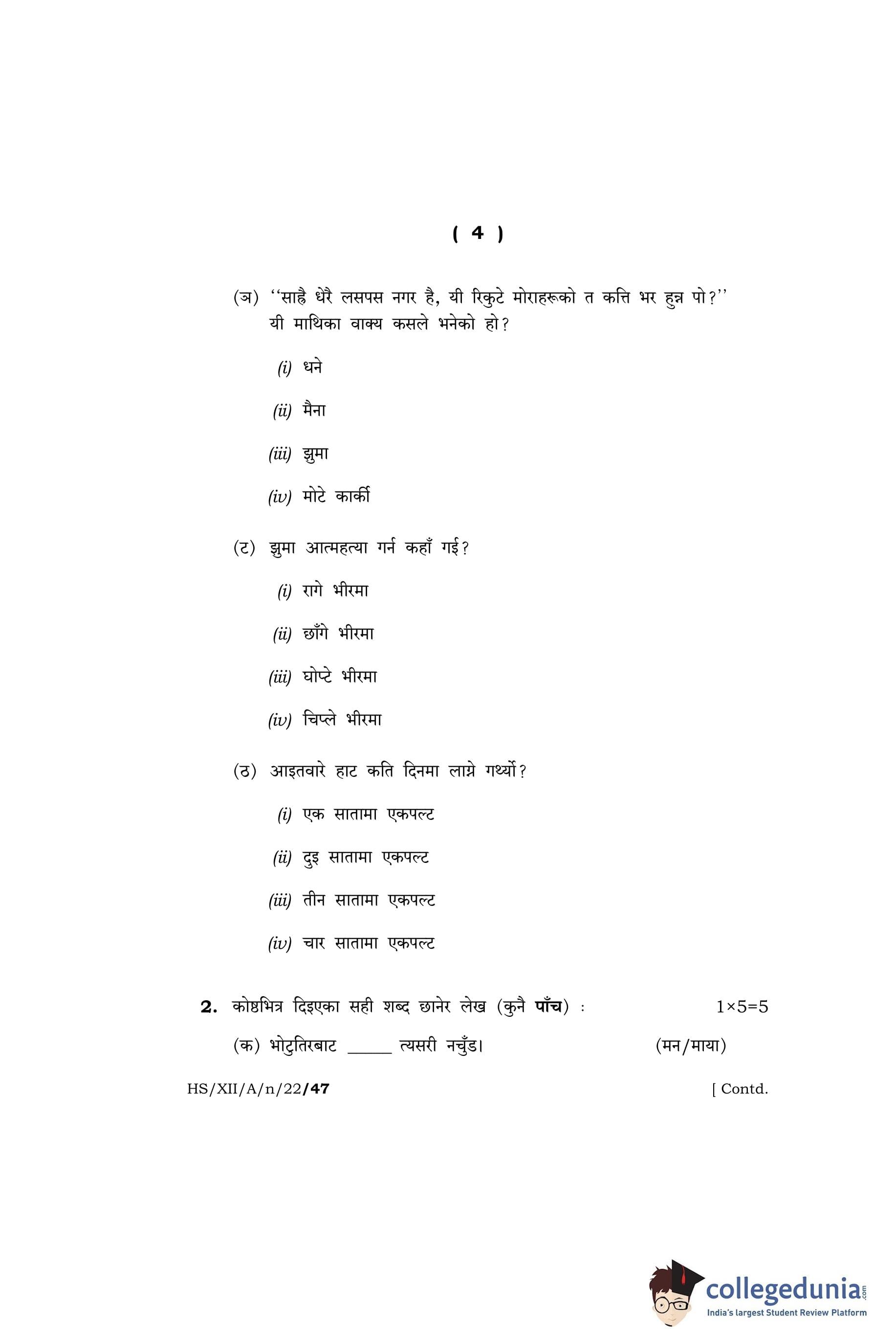 MBOSE Class 12 Nepali (Elective) Question Paper 2022